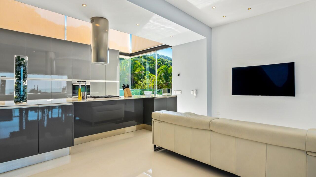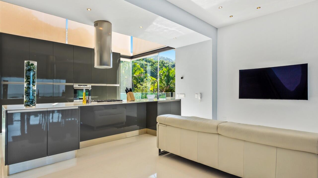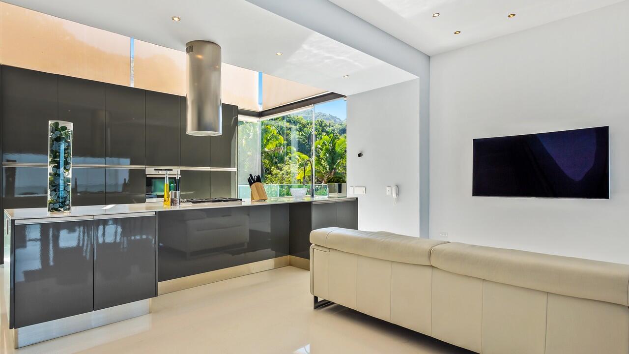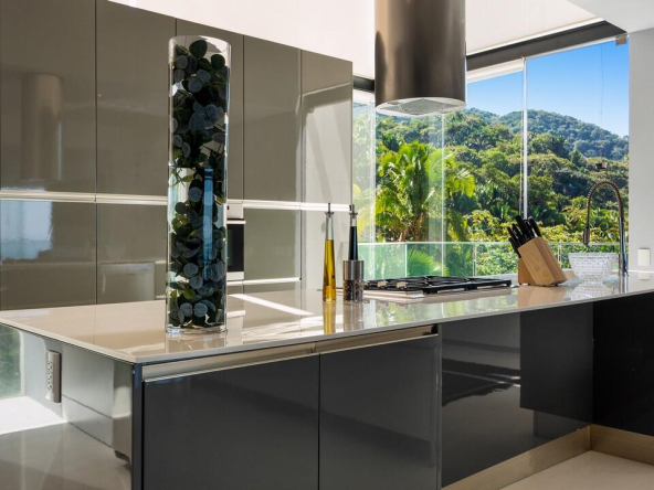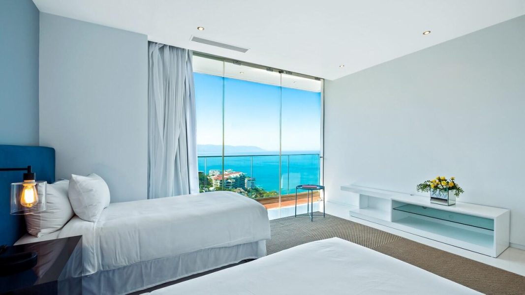 AVALON esta ubicado en las hermosas colinas de Amapas en la costa sur de Puerto Vallarta. AVALON es un enclave de lujo con dos torres con vista a la Bahia de Banderas que ofrece impresionantes vistas al mar, vistas a la montana, la ciudad y puestas de sol durante todo el ano. Cerca, en el area de la Zona Romantica, encontrara abundantes restaurantes e innumerables bares y discotecas.Este condominio contemporaneo de mas de 2 habitaciones impulsa un concepto abierto que exhibe una cocina gris unica y brillante, una seccion adicional de vidrio brinda luz natural y vistas a la montana, los electrodomesticos son de acero inoxidable.Tiene vista a un elegante y moderno comedor y sala de estar combinados con una pared de vidrio acordeon de pared a pared que se abre a