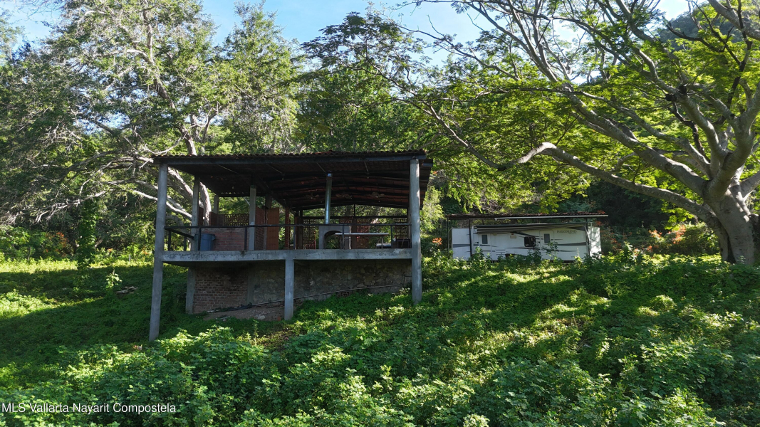 2 Hectares with 2 separate build sites, each offering stunning views of Banderas Bay. Ideally situated between La Cruz and Punta Mita, and located just 1.1 mile from the main highway.A wonderful opportunity to construct your own dream project, directly in the path of progress yet just far enough away to enjoy peaceful surroundings nestled amongst mature forest.Many improvements to this spacious property include a stoutly constructed outdoor covered terrace, complete with fireplace, kitchen, dining area, living area and bathroom. Well, Water Storage, Electric and Septic improvements recently completed.Spacious Modern trailer with bedroom, kitchen, dining and bath includes air conditioning, completes the perfect setup to live onsite while designing and building.