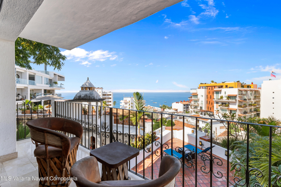 Perched on the hillside above the Romantic Zone, Bugambilias Vallarta offers sweeping views of the ocean, city, and lush surroundings. This beautifully remodeled two-level condo features one bedroom and one and a half bathrooms, with the bedroom and a spacious terrace located on the lower level for extra privacy. Inside, you’ll find thoughtful upgrades throughout, including new inverter A/C units, a new refrigerator, stove, and dishwasher. The condo comes fully furnished and completely turnkey, ready for you to move in, enjoy as a vacation home, or start earning rental income right away. Perfectly positioned to enjoy the best of Puerto Vallarta, it’s close enough to the energy of the Romantic Zone yet tucked away from the busy streets below. The charming complex retains the authentic…