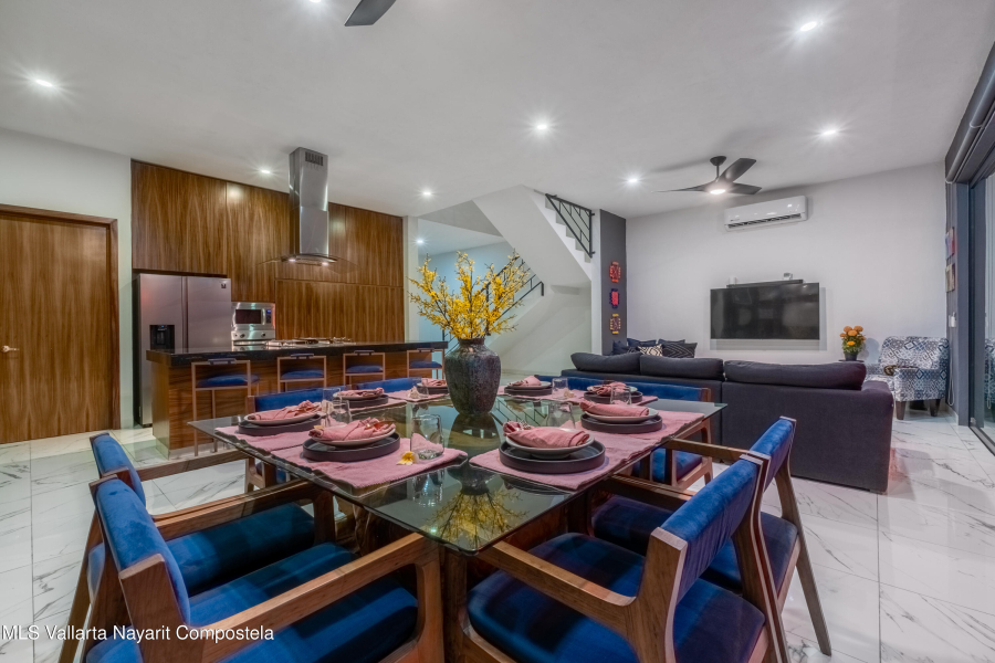 Casa Agradecer – Fluvial Vallarta**ENGLISH BELOW**Ubicada en uno de los vecindarios residenciales mas deseados de Puerto Vallarta, Casa Agradecer goza de una ubicacion privilegiada con orientacion al este, frente al hermoso Parque Fluvial. Esta elegante y cuidadosamente disenada residencia combina el confort moderno con una atmosfera serena y sofisticada.La amplia planta baja cuenta con un diseno de concepto abierto, una cocina gourmet, area de lavado, y espacio de almacenamiento adicional. Las puertas corredizas de vidrio de piso a techo se abren hacia un tranquilo patio con una alberca de gran tamano y hermosas pantallas de privacidad, creando un entorno ideal para relajarse o recibir invitados. Un bano completo en la planta baja ofrece comodidad y funcionalidad adicional.