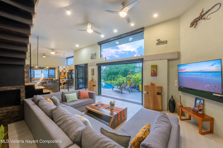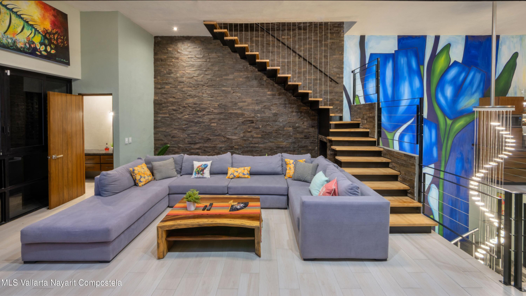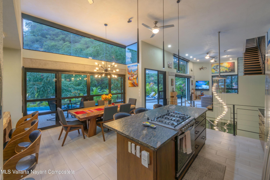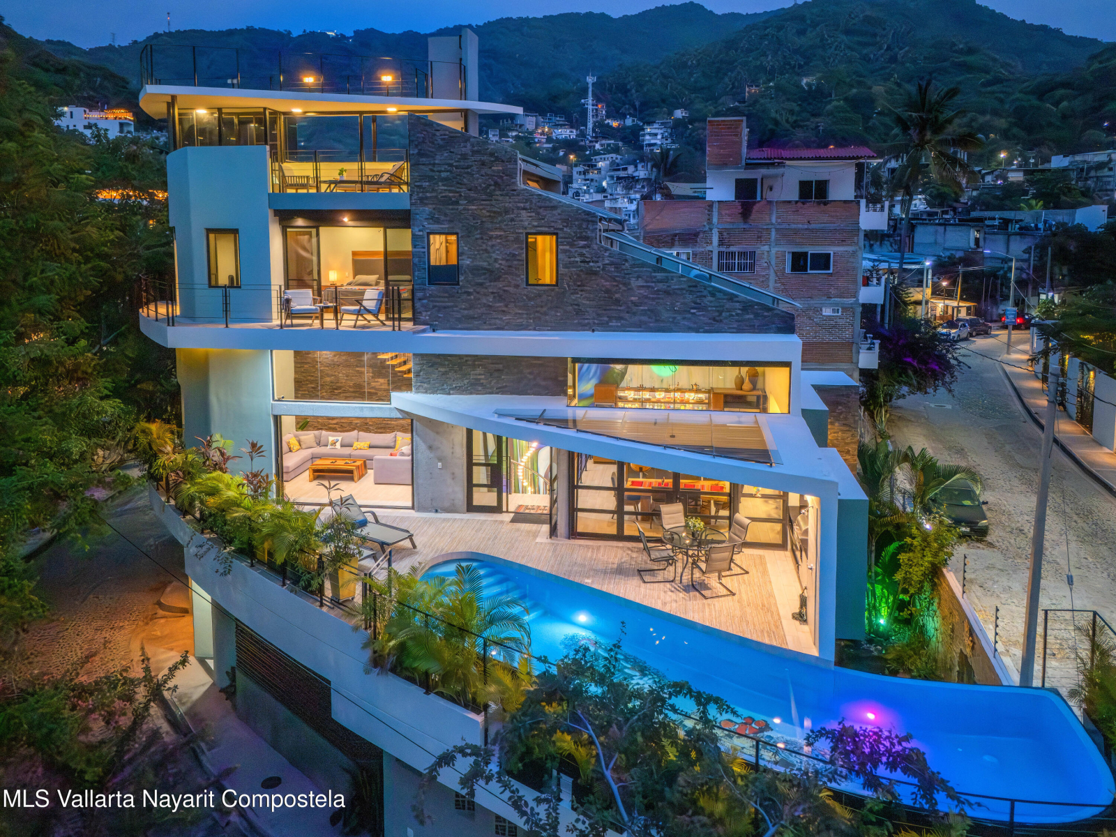 Stunning custom-built home perfectly positioned between the Romantic Zone and Gringo Gulch. This spacious 4-bedroom, 3.5-bath residence is thoughtfully designed to capture abundant natural light while maintaining exceptional privacy, all framed by beautiful mountain views throughout. The entry level includes the garage, three bedrooms, and two full bathrooms, opening onto a generous garden terrace with a tranquil water feature. A separate office or workshop with its own private entrance offers flexibility and convenience for work or creative projects. On the main living level, an open-concept layout unites the living, dining, and kitchen areas, all flowing seamlessly onto a large terrace with an inviting pool�perfect for entertaining and embracing the Vallarta indoor-outdoor lifesty