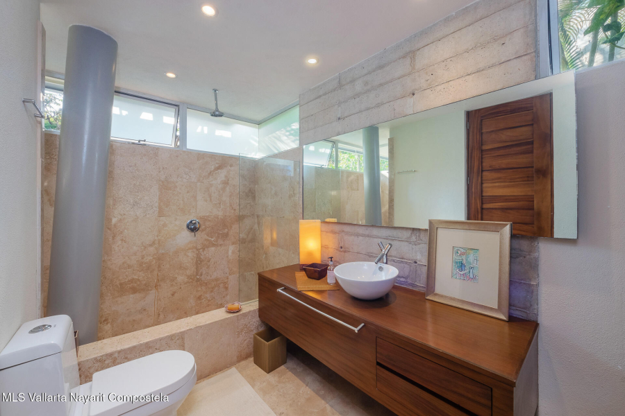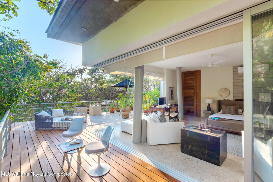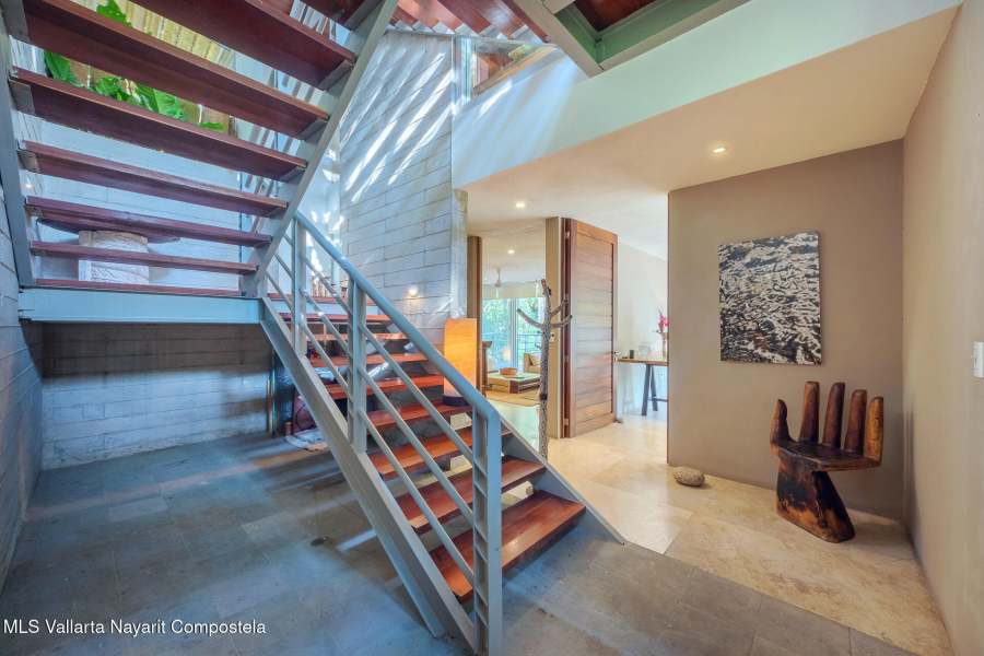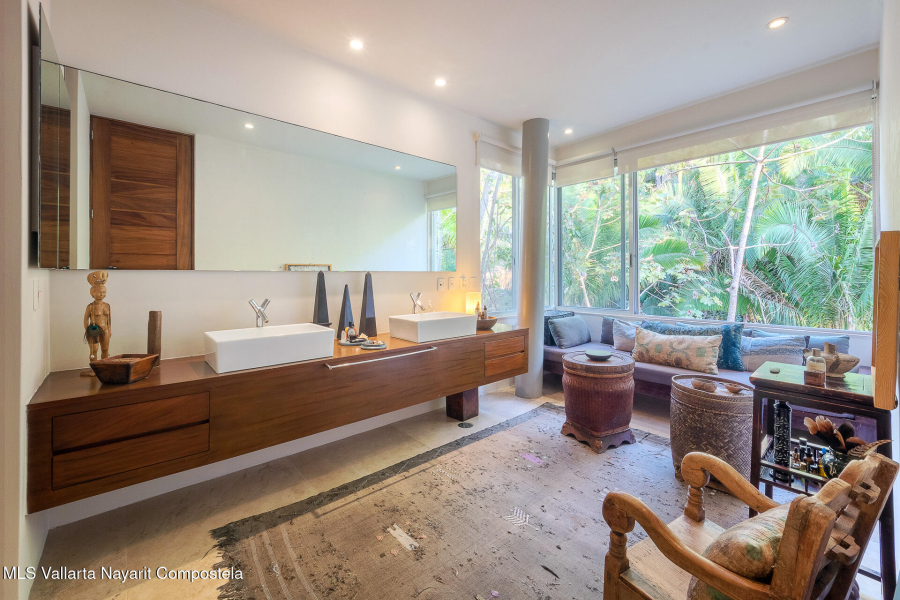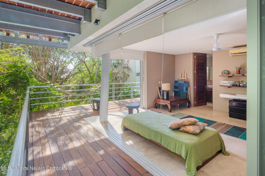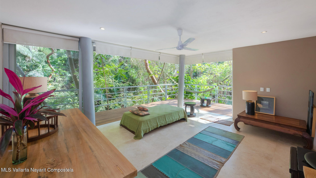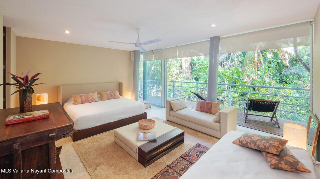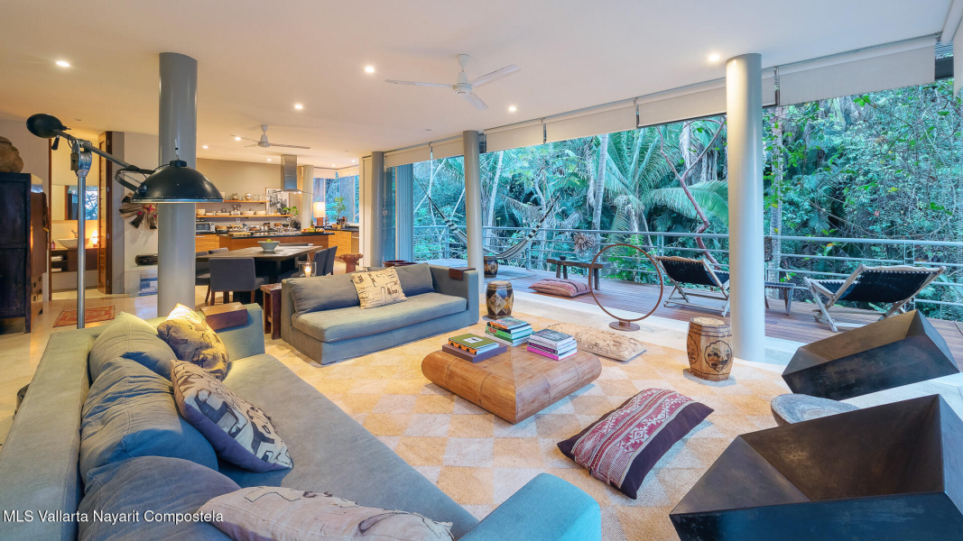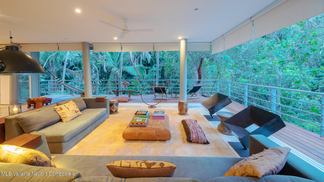 English: Tucked away in the lush hills of Las Amapas, this exclusive residence is part of a gated community of only 18 luxury homes, where privacy and nature come together in perfect harmony.Designed across three spacious levels, the home offers 3 bedrooms, 3.5 bathrooms, fully furnished, blending comfort with contemporary elegance. Expansive terraces open to the surrounding jungle, creating a seamless indoor-outdoor lifestyle.