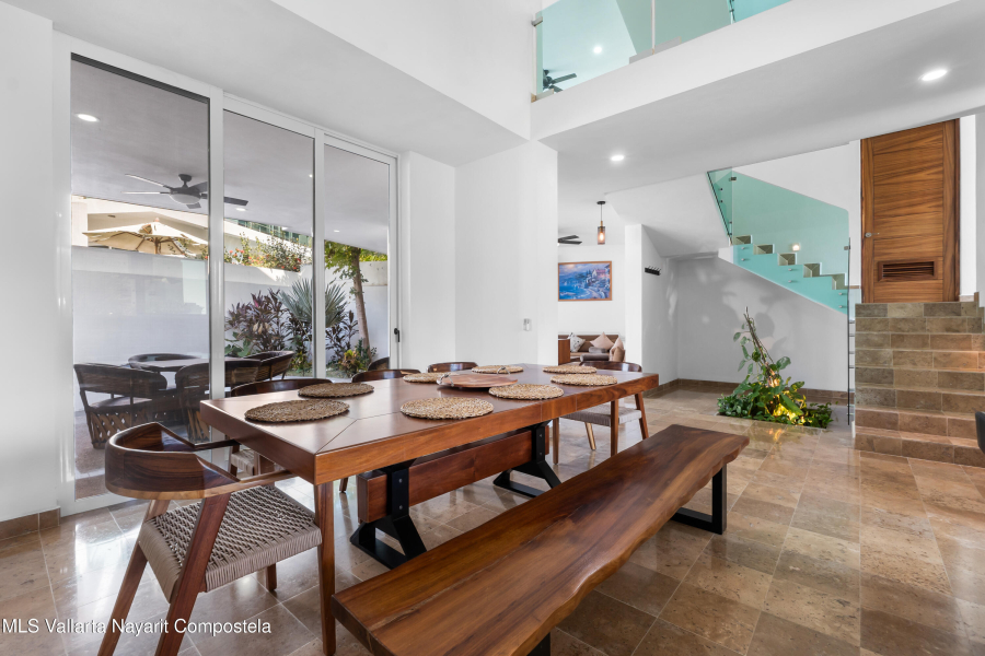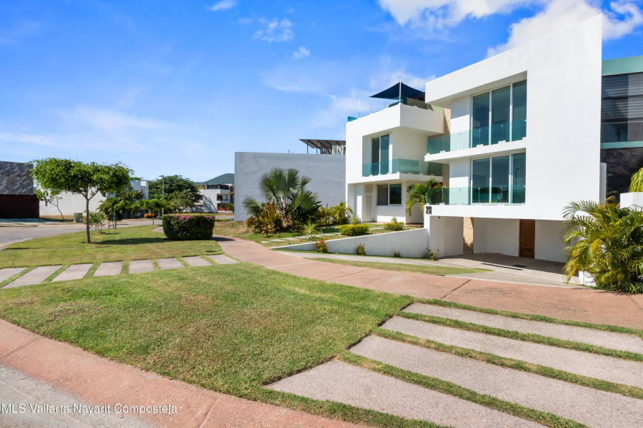 Ubicada en el exclusivo complejo Tamaran, en La Cruz de Huanacaxtle, esta residencia combina lujo, confort y vistas espectaculares al mar y las montanas. Cuenta con 4 recamaras, 3.5 banos, cocina con cubierta de granito, comedor de doble altura y terrazas amplias, incluyendo una con jacuzzi y vista 360. Se vende amueblada. Dentro del complejo hay club de playa, piscinas, restaurante, canchas, gimnasio y seguridad 24/7. Ideal como residencia o inversion vacacional en la Riviera Nayarit.