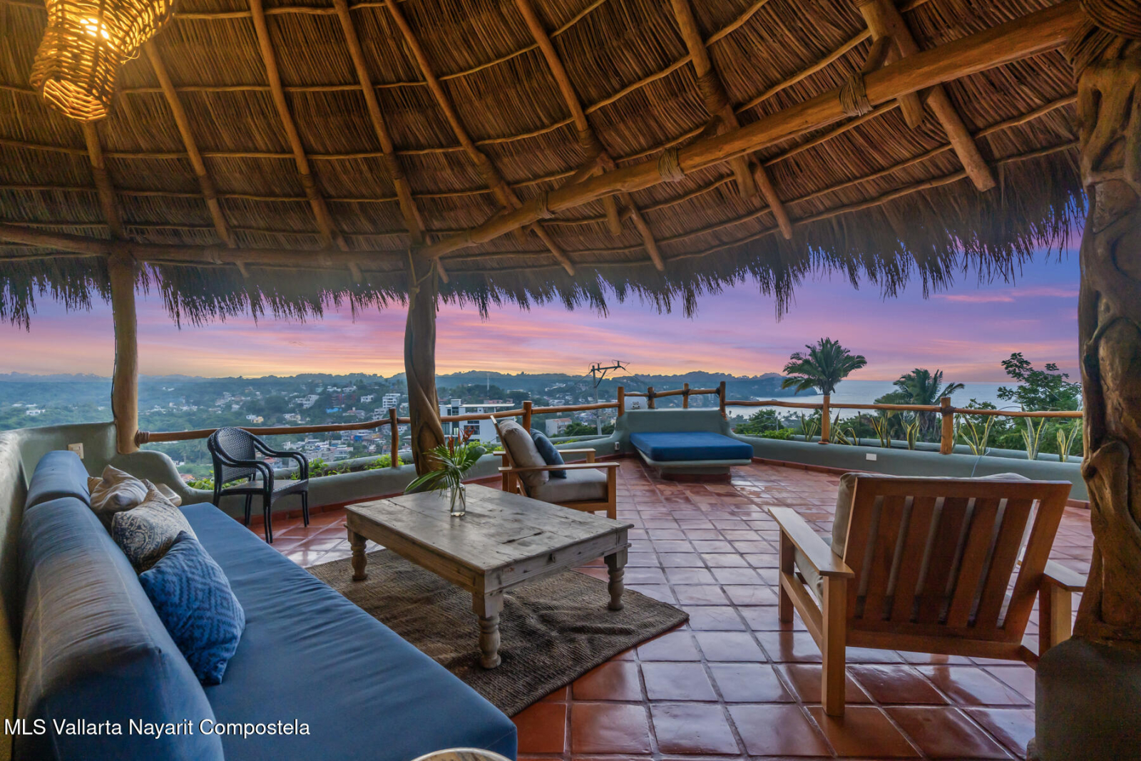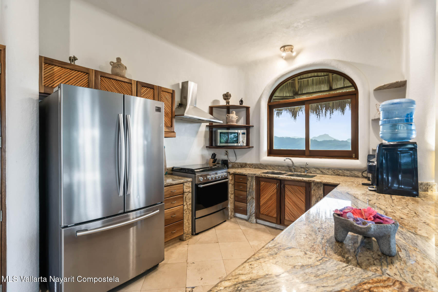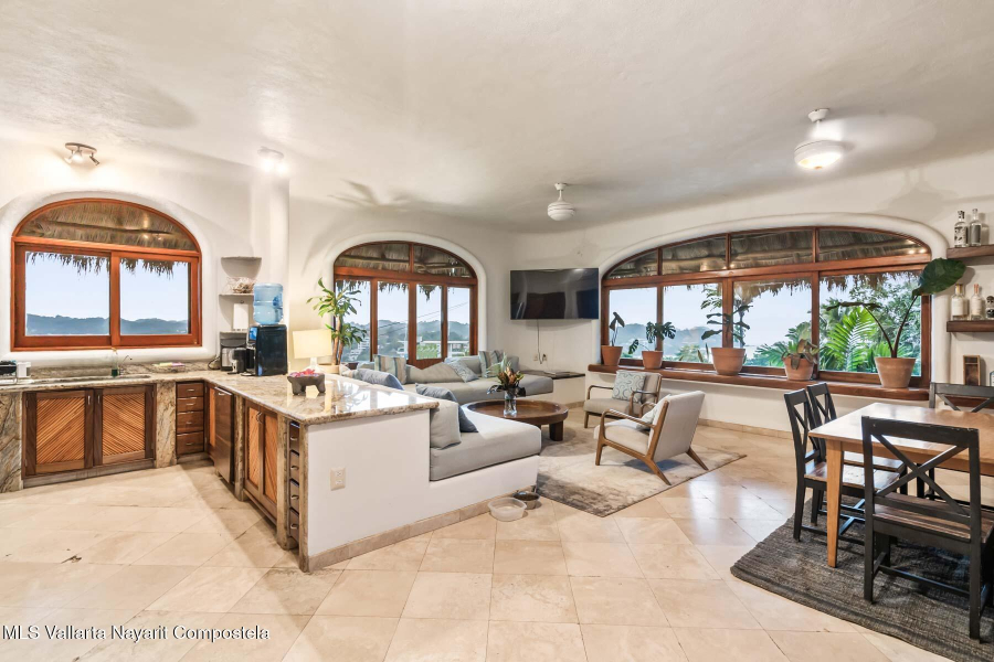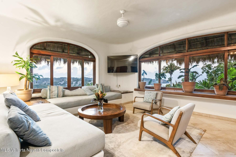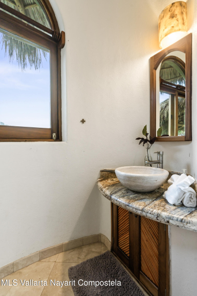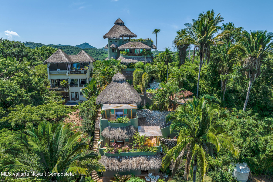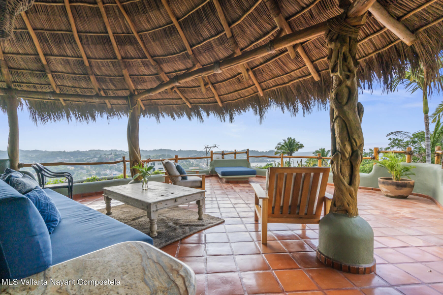 Unique opportunity to own a revenue generating property with 5 private suites. This residence is well suited for a large family who treasures privacy, or an investor looking to run a five-star rental business. This turnkey vacation rental investment is one of the few places to enjoy sunrise and sunset. Casa Margarita del Cielo is a meticulously maintained five bedroom custom built home, a true trophy property. Local talavera marble and parota hardwood can be seen throughout. Surrounded by lush landscaping that terraces down the land, it is a place to restore, relax and enjoy an exquisite living experience. Perched on the hill in the coveted North side community, you are minutes from all the charm of Sayulita.