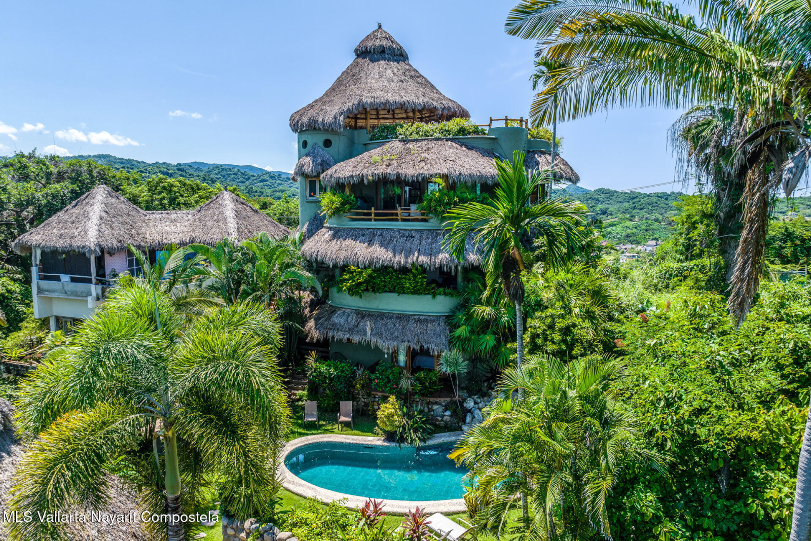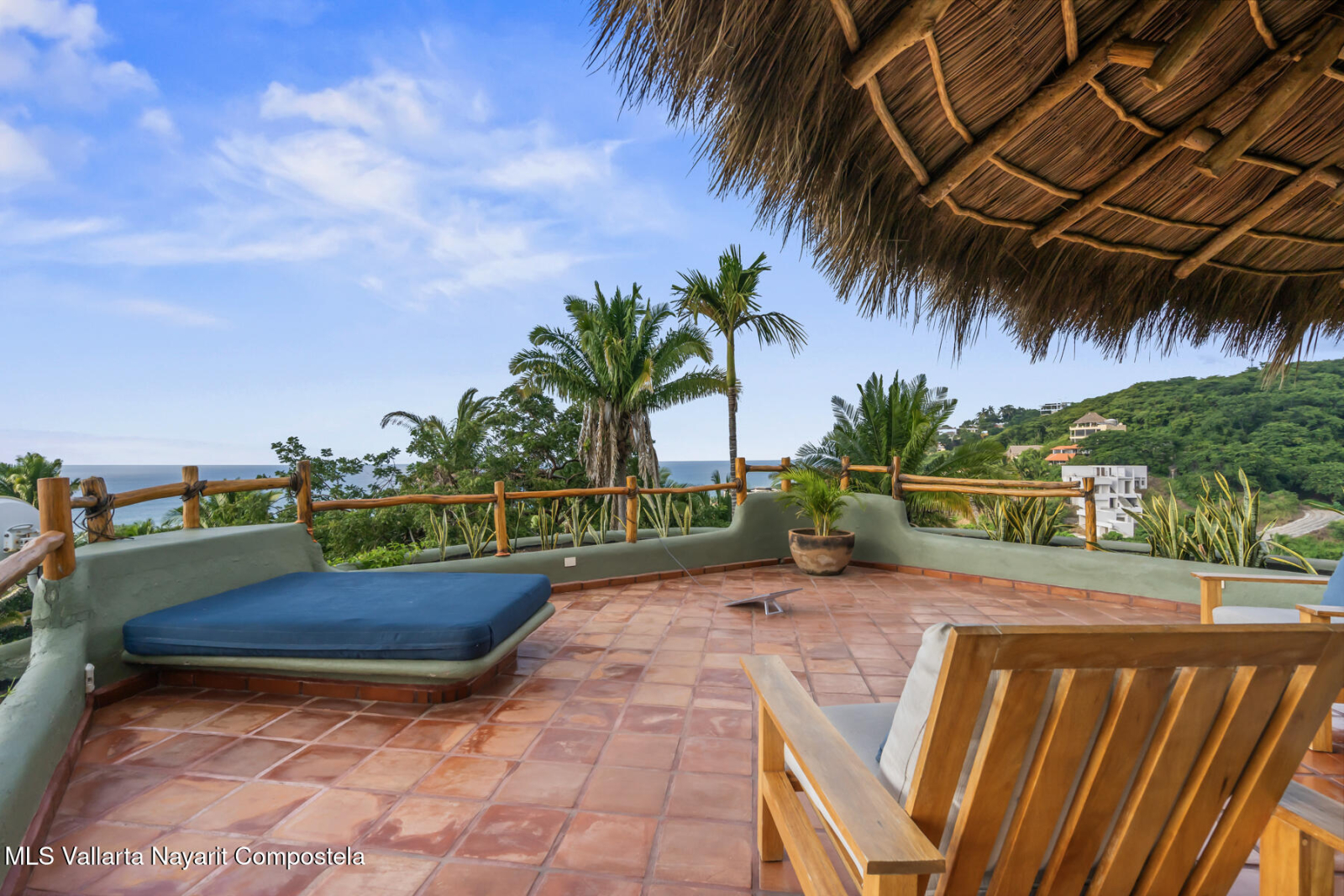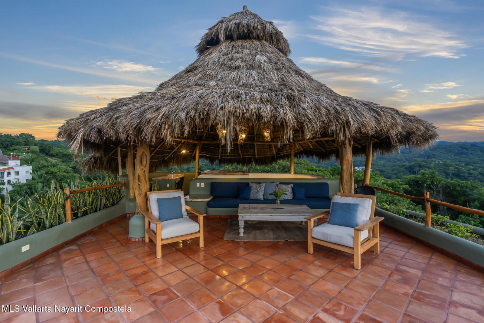 Unique opportunity to own a revenue generating property with 5 private suites. This residence is well suited for a large family who treasures privacy, or an investor looking to run a five-star rental business. This turnkey vacation rental investment is one of the few places to enjoy sunrise and sunset. Casa Margarita del Cielo is a meticulously maintained five bedroom custom built home, a true trophy property. Local talavera marble and parota hardwood can be seen throughout. Surrounded by lush landscaping that terraces down the land, it is a place to restore, relax and enjoy an exquisite living experience. Perched on the hill in the coveted North side community, you are minutes from all the charm of Sayulita.
