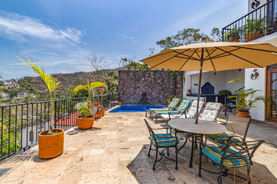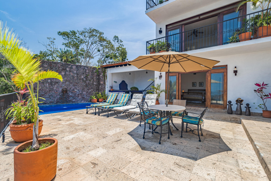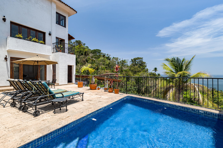 Magnifica hacienda mexicana ubicada en las colinas de Mismaloya, Puerto Vallarta. Esta joya de 542m ofrece impresionantes vistas al oceano y la jungla y emana el encanto cultural mexicano. Cuenta con 4 habitaciones, 4.5 banos y una suite para el servicio. La suite principal ocupa todo el tercer piso, con impresionantes vistas y un vestidor espacioso, mientras que los otros tres dormitorios en la terraza de la piscina tambien ofrecen vistas cautivadoras de la bahia. — Magnificent Mexican Hacienda located on the hills of Mismaloya, Puerto Vallarta. This 542m gem offers breathtaking ocean and jungle views and exudes cultured Mexican charm. It features 4 bedrooms, 4.5 bathrooms, and a maid’s suite.