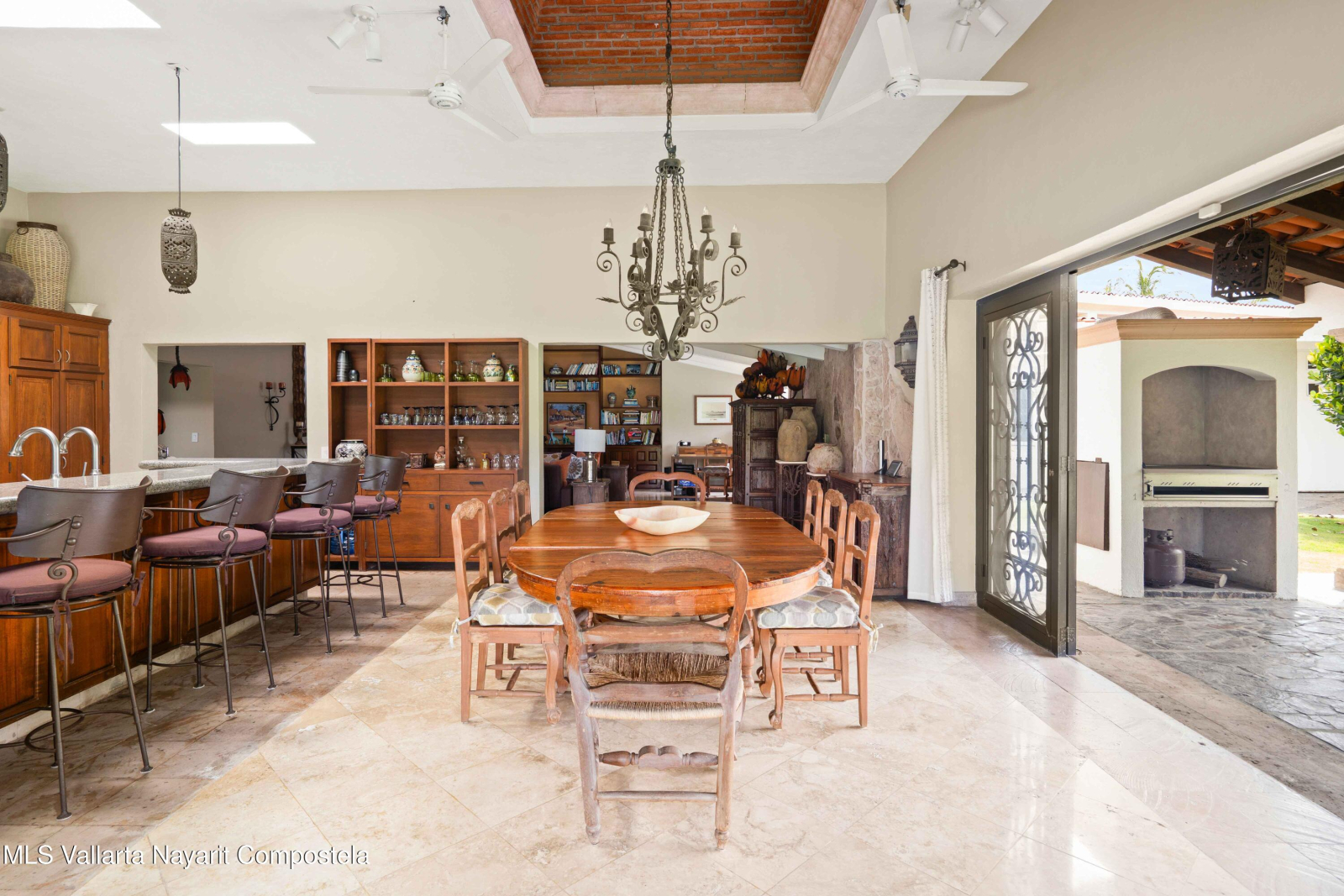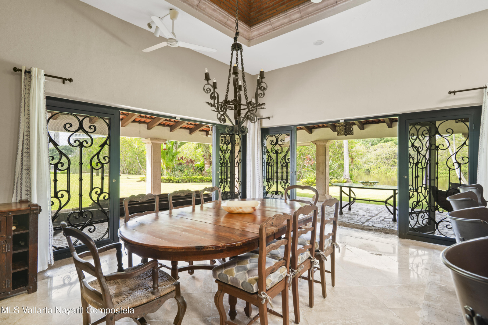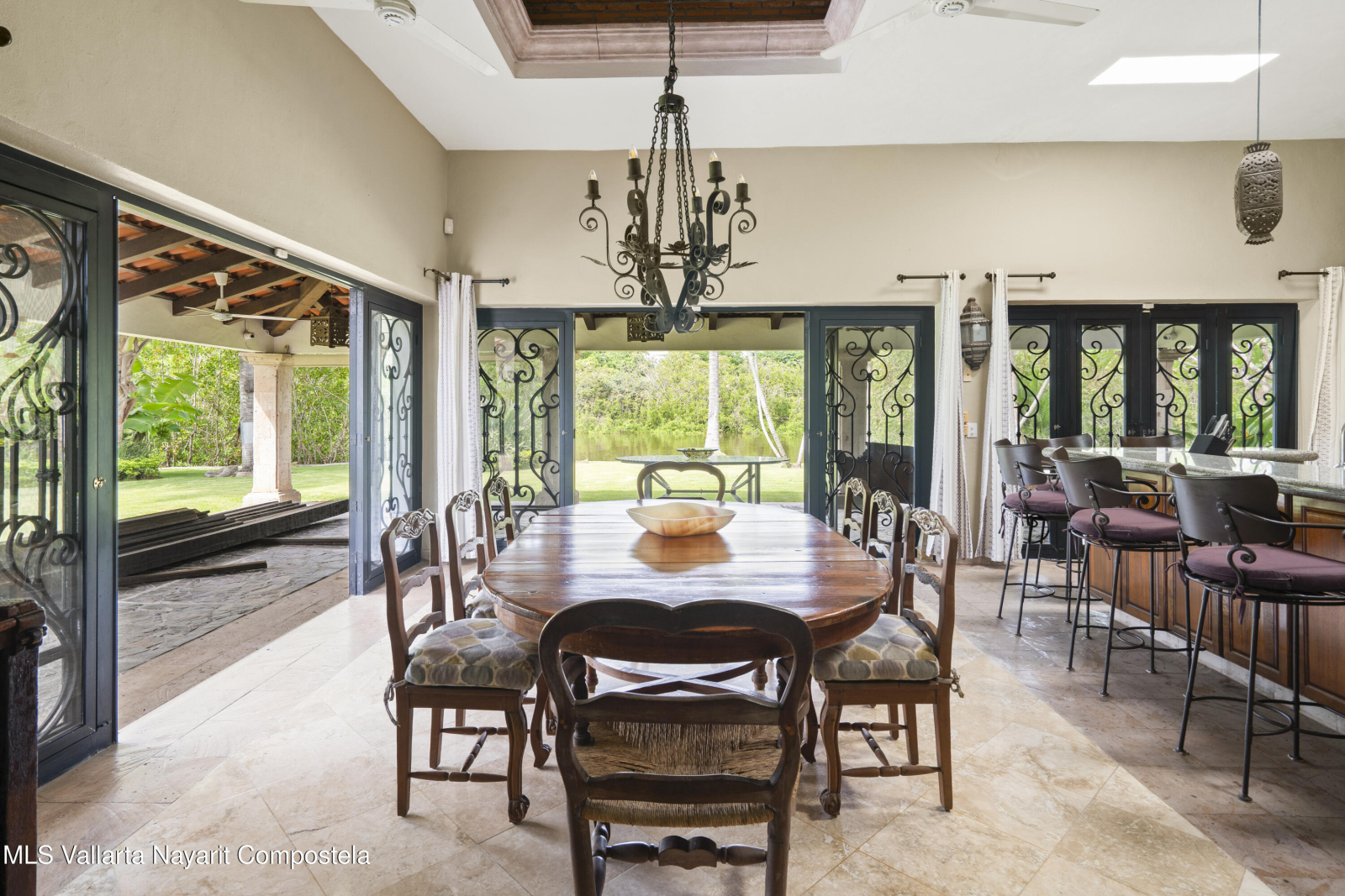 Beautiful house in Nuevo Vallarta with a view to a huge garden area full of trees, palm trees and also the natural canal! This is a single level house, it has carport for 2 cars, huge garage/storage, with a boat included! Beach? The closest is just 9 min away by car. Garden area has a charcoal BBQ grill and a small dock where you can park your boat. This house also offers a separated maids living quarter, there is a security guard at the entrance of the residential and very impotant to mention that this property used to be 2 lots! That is why it has such a outside space.Nuevo Vallarta area is well known for its large sidewalks where you can walk with your pets, jog or be on your bicylce. Also, its one of the neighborhoods that has a lot of restaurants, bars and coffeshops