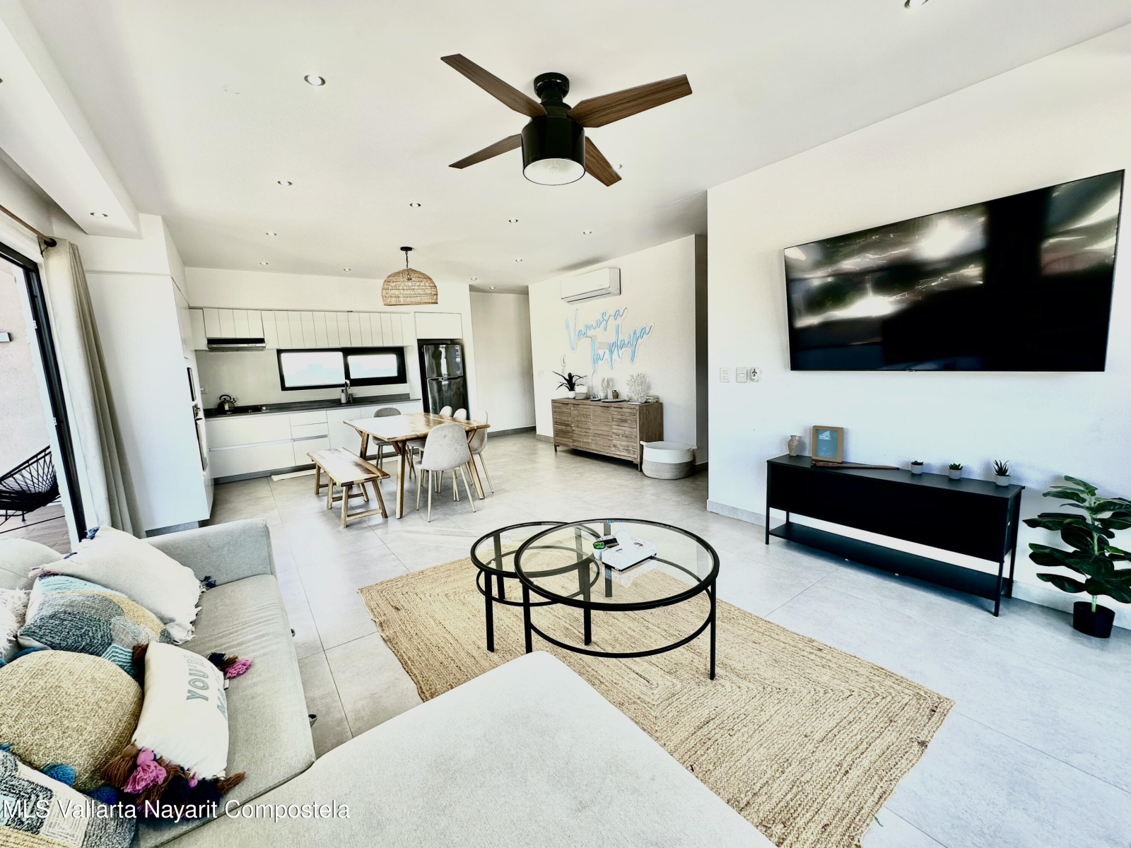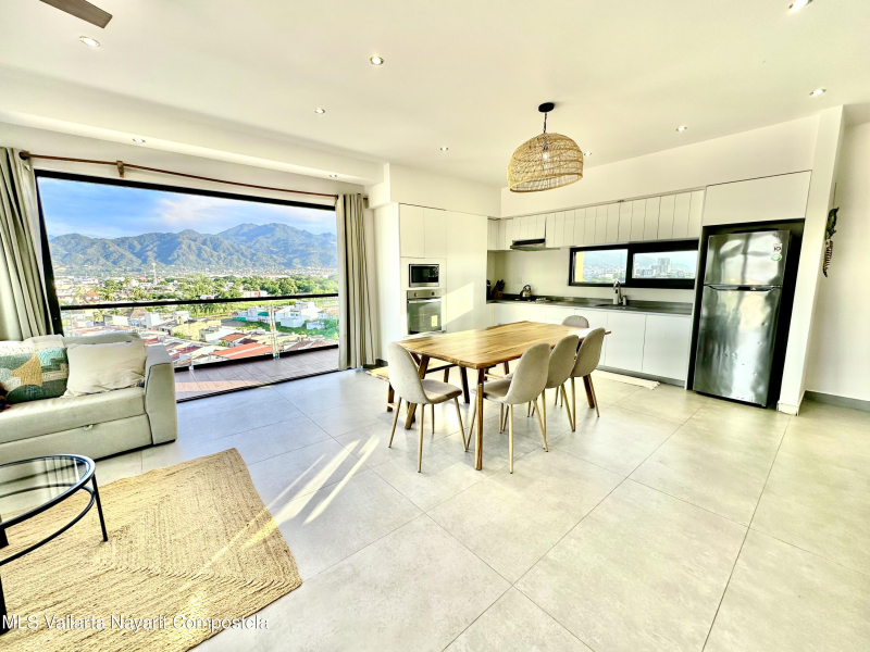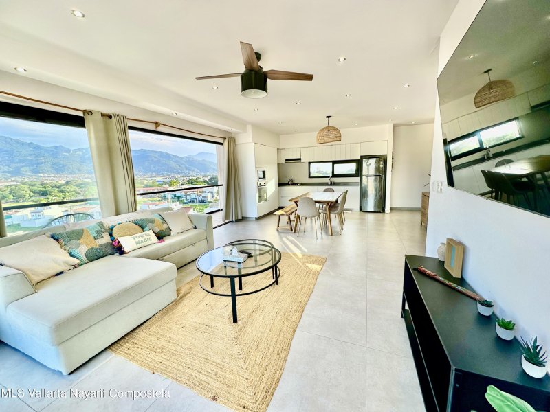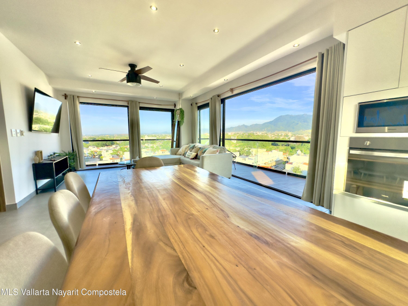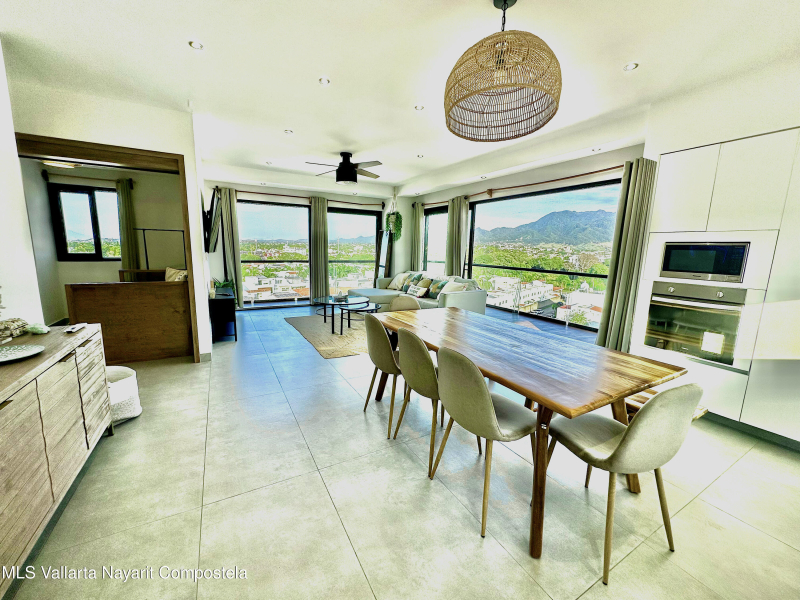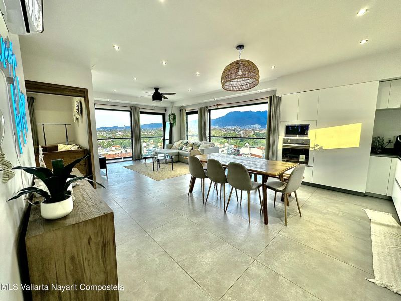 English Below………Moderno condominio de 3 recamaras y 3 banos en el corazon de Fluvial Vallarta. Disfruta vistas panoramicas de 180 a las montanas desde la terraza envolvente y una vista parcial al mar desde la cocina. Edificio de baja densidad con estacionamiento por unidad, alberca climatizada, terraza con asador y seguridad 24 h. A minutos de la playa, centros medicos, Plaza Caracol, Costco, La Comer y ciclovias. Ideal para vivir tiempo completo o invertir en una de las zonas mas rentables de Vallarta.