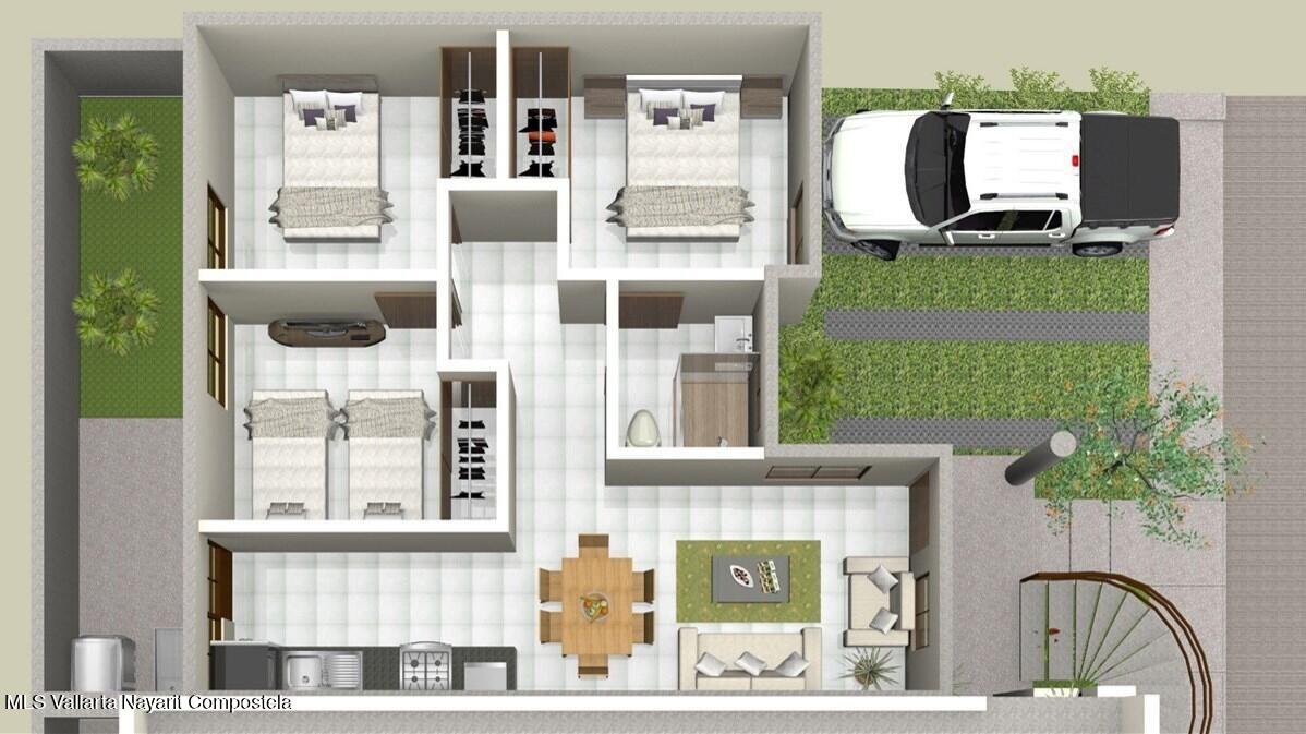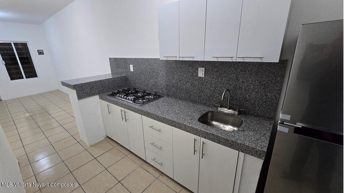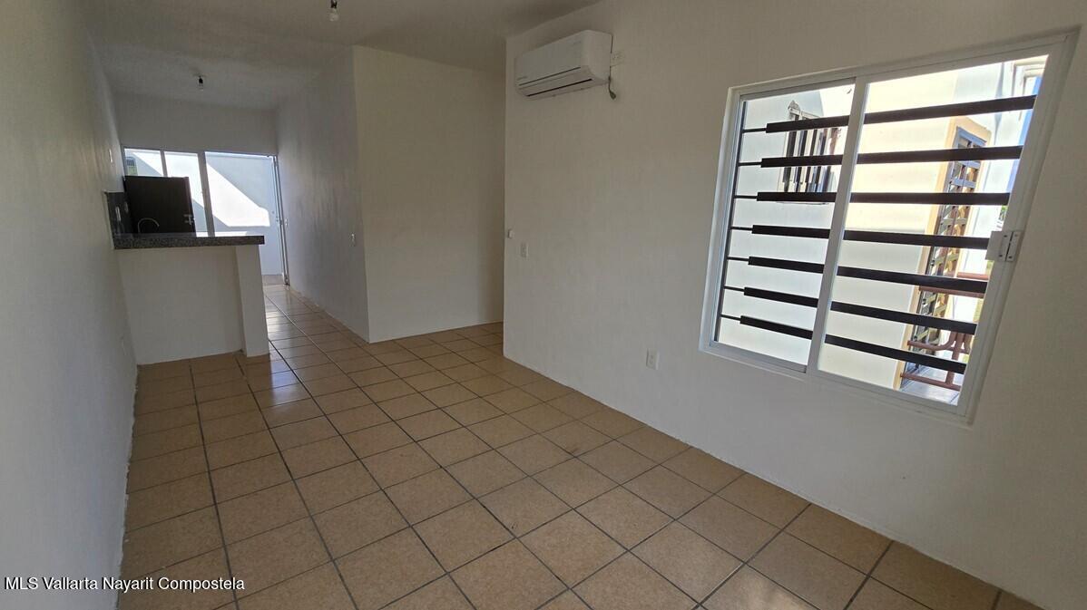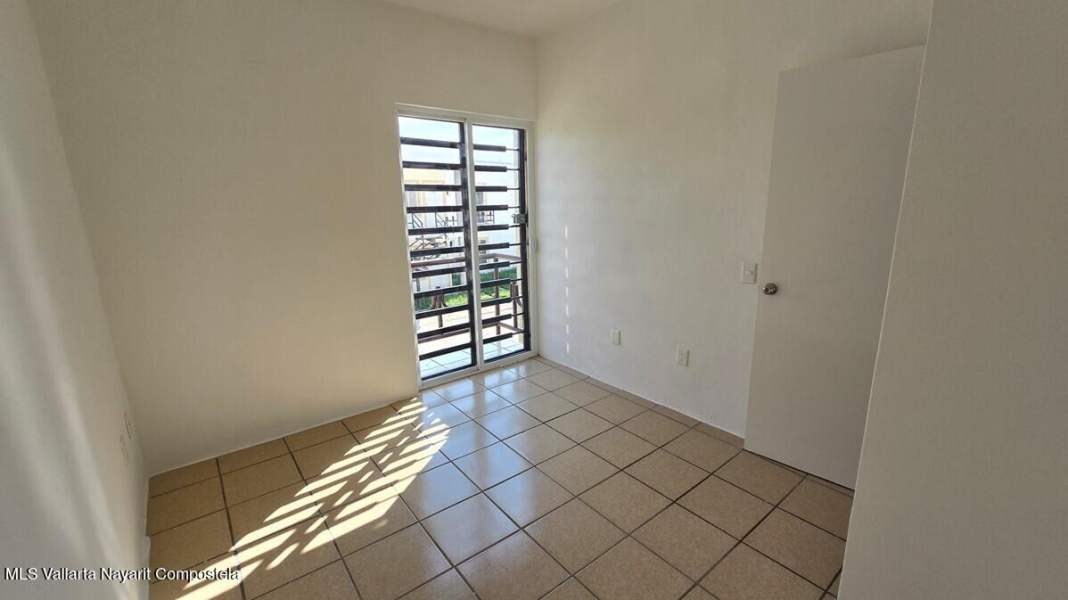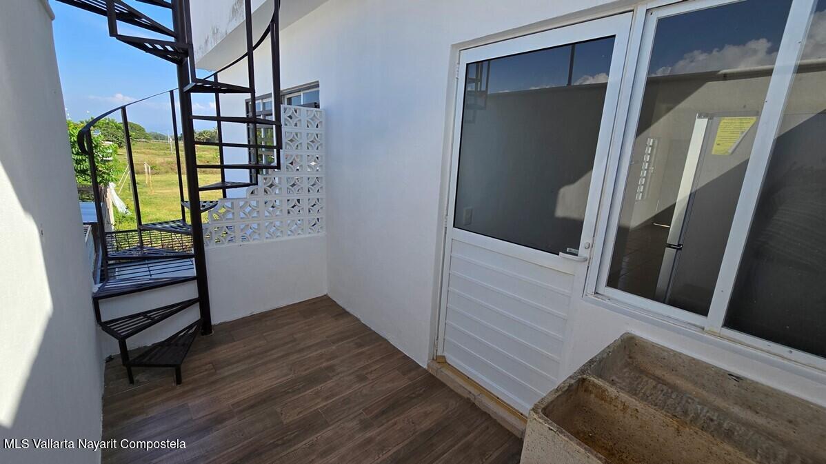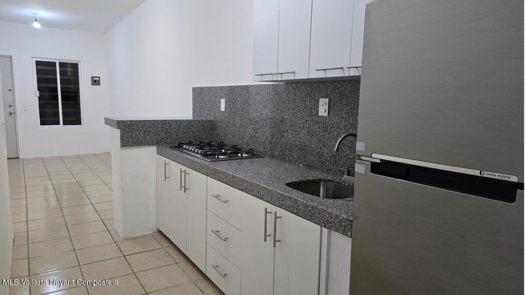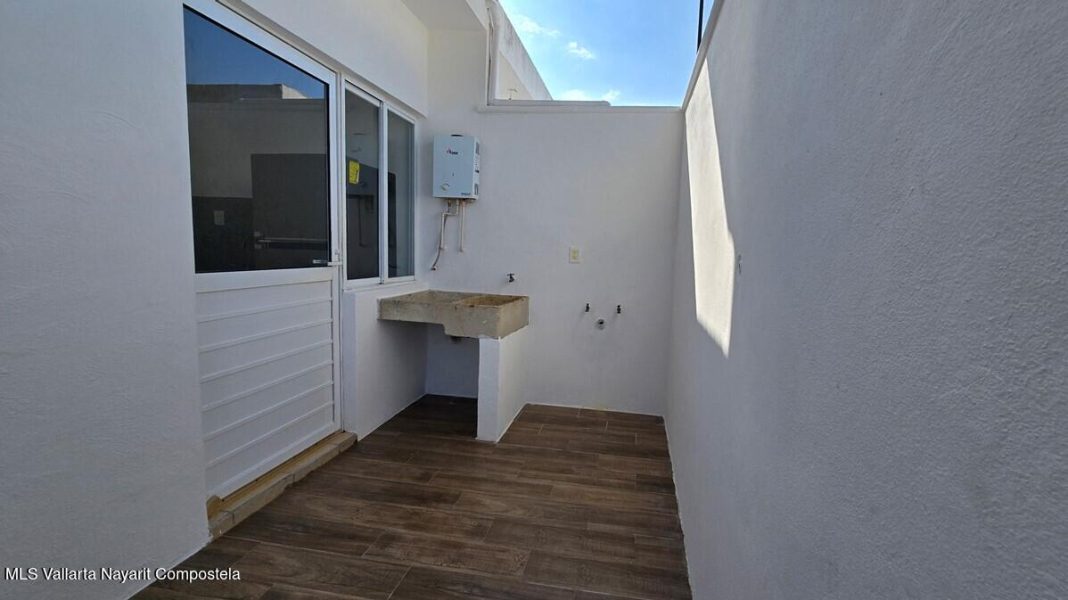 Casa duplex o departamento en planta alta con 3 recamaras, estancia con minisplit, un bano completo, cocineta integral con barra de granito y refrigerador nuevo, patio de servicio; Terraza en azotea (en propiedad) de 47 m2 con sala de concreto con cojines, medio bano, area de cocina con barra y parrilla para BBQ y tarja; todo con cubierta de teja, iluminacion y acabados.