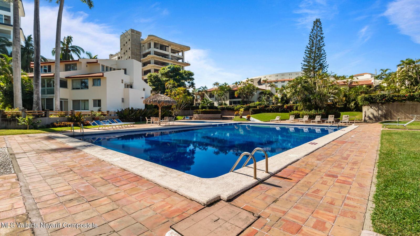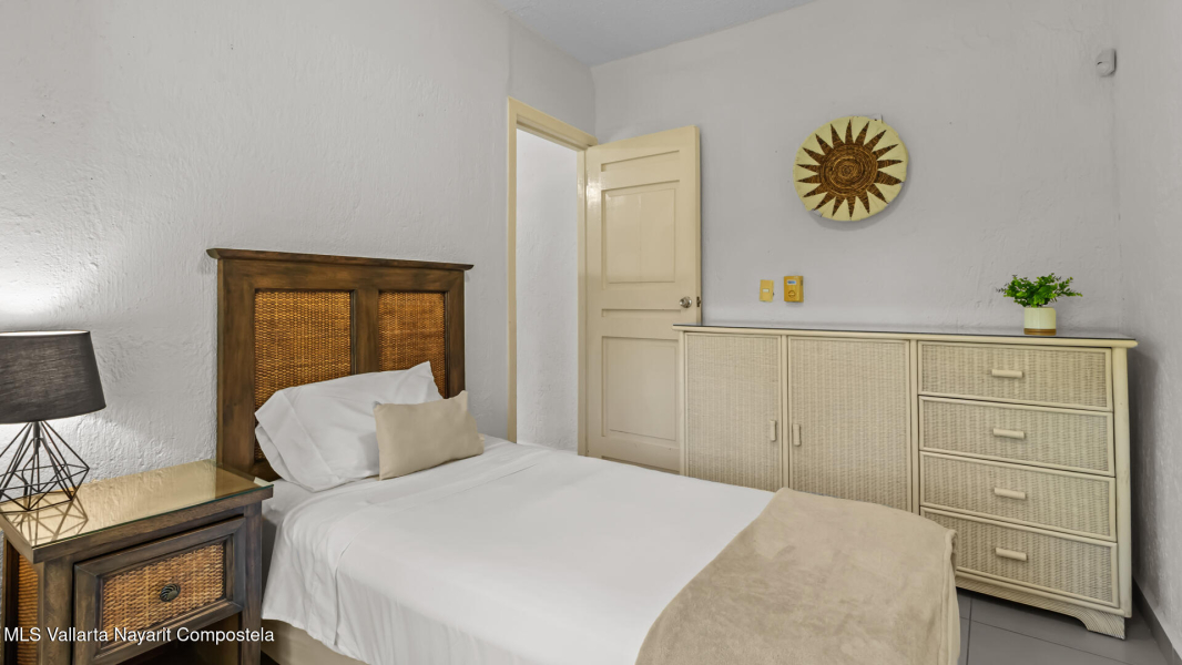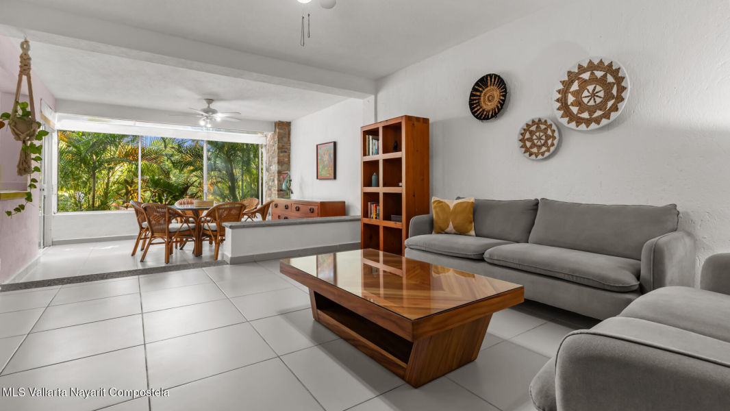 Finally, your tropical home in paradise just steps from the public beach access of Nuevo Vallarta. This inviting ground-floor condo is surrounded by nature and lush greenery, creating a serene natural ambiance right outside your door. The layout features two bedrooms plus a flexible bonus space, along with three full bathrooms, offering comfort and versatility for your ideal lifestyle. The quiet primary suite includes an oversized bathroom, and the open living area invites you to personalize your home in the sun–perfect as a full-time residence or a spacious vacation retreat.