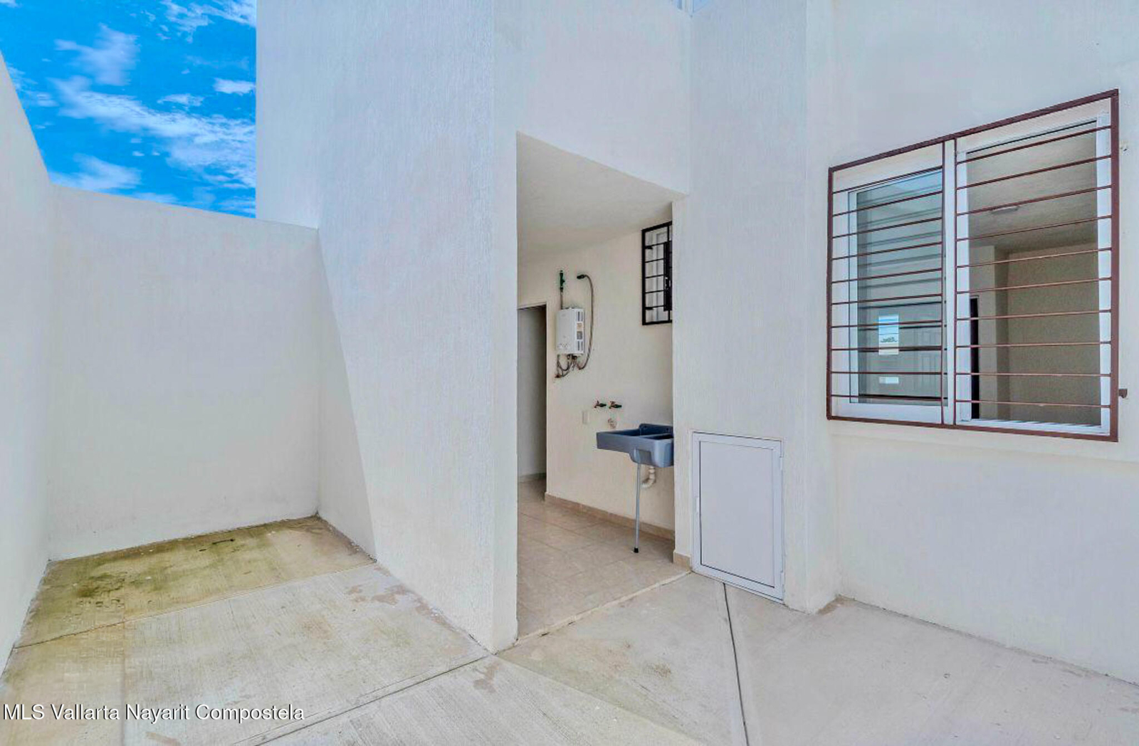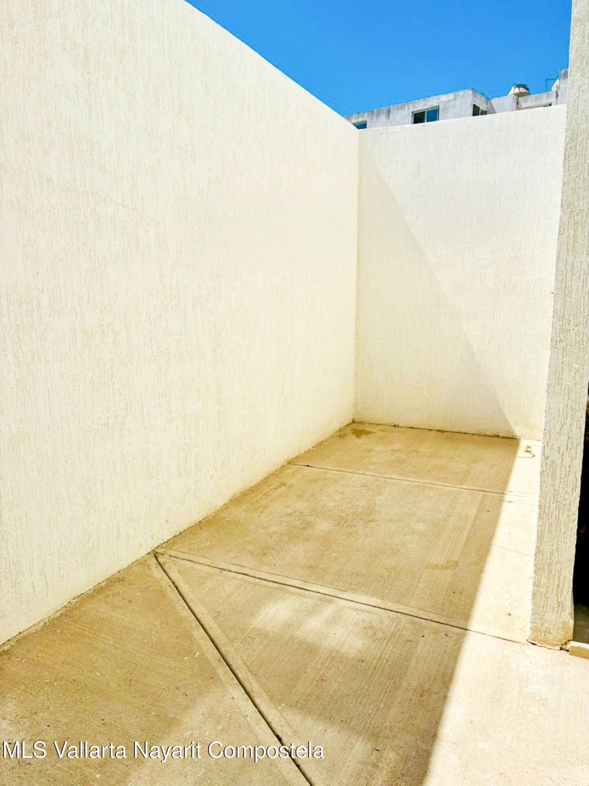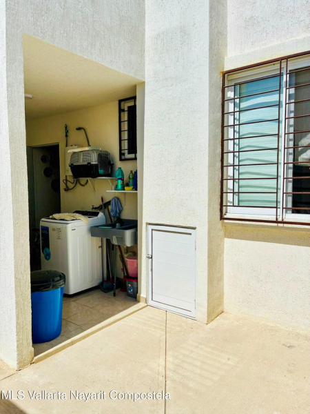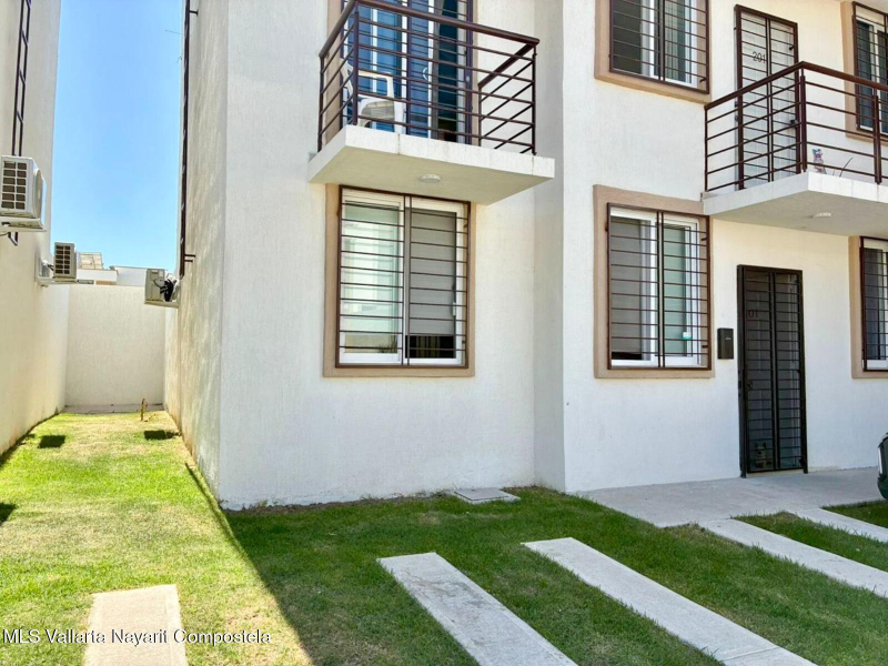 Esta unidad habitacional se ubica en la planta baja del edificio, lo que facilita el acceso directo sin necesidad de utilizar escaleras. El inmueble presenta una fachada con acabados en tonos claros y areas de jardin frontal que contribuyen a un entorno ordenado. Ofrece la flexibilidad de adaptar los espacios interiores segun los requerimientos del comprador. Cuenta con un patio posterior delimitado por muros altos, proporcionando un area abierta privada ideal para ventilacion natural o usos diversos de servicio.