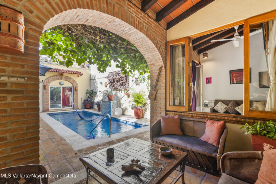 This fully furnished 1-bedroom, 1-bathroom residence at *Hacienda Escondida* blends traditional Mexican character with comfort and functionality. Featuring classic hacienda-style finishes, brick accents, and quality woodwork, the unit offers a warm and inviting atmosphere. The condominium is known for its expansive central garden, fountain, jacuzzi, and pool–providing a tranquil retreat just steps from the energy of Emiliano Zapata.Ideal for full-time living, vacation use, or rental income, this property benefits from an exceptional location directly across from the local market and within walking distance to restaurants, cafes, nightlife, and beach access
