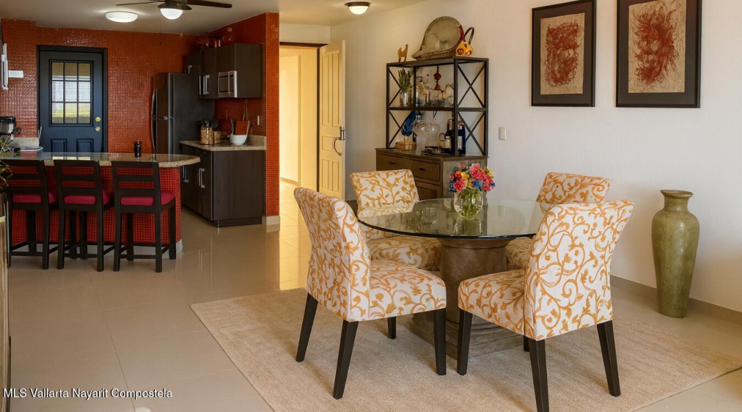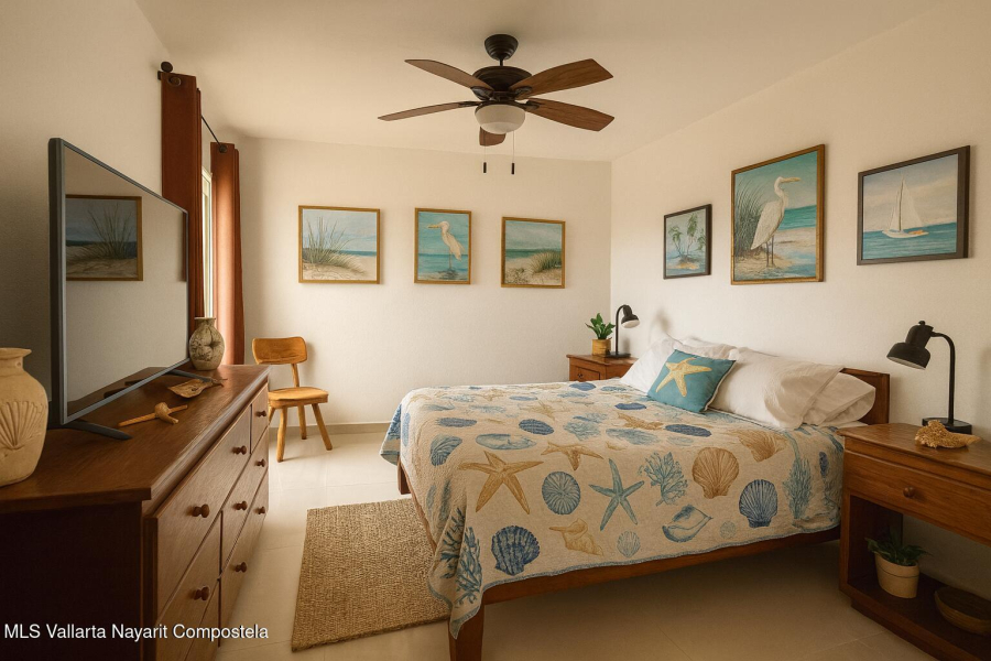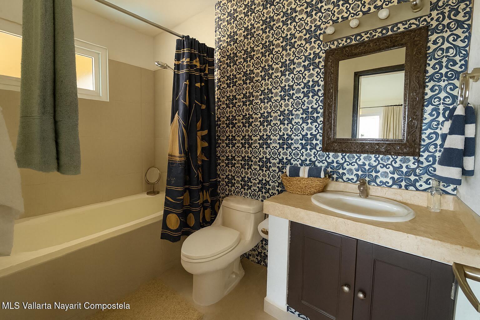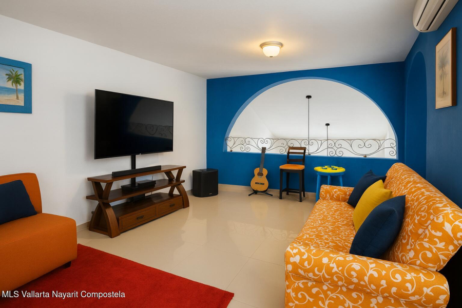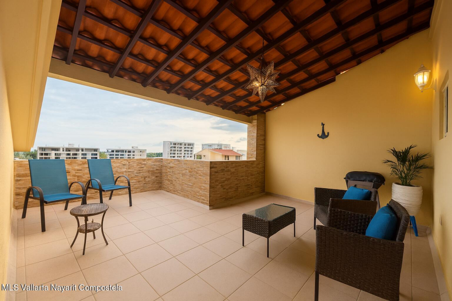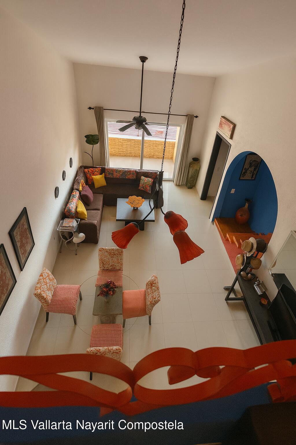 ENGLISH BELOW…Bienvenido al Penthouse 72 en Condominio Orquideas, parte del exclusivo Coto Los Sauces Flamingos Club Residencial en Bahia de Banderas, Nayarit. Esta vibrante comunidad privada es reconocida por su seguridad 24/7, ambiente familiar y amenidades de estilo resort — todo con sorprendentemente bajas cuotas de mantenimiento (HOA) e impuestos prediales.Distribuido en dos niveles con 214 m de espacio interior + 24 estacionamiento privado, este penthouse se siente mas como una casa que como un condominio.En la planta baja encontraras un diseno abierto y luminoso con amplia sala y comedor, cocina moderna, cuarto de lavado y una terraza soleada perfecta para el cafe de la manana. Este nivel tambien incluye una recamara con visitas.