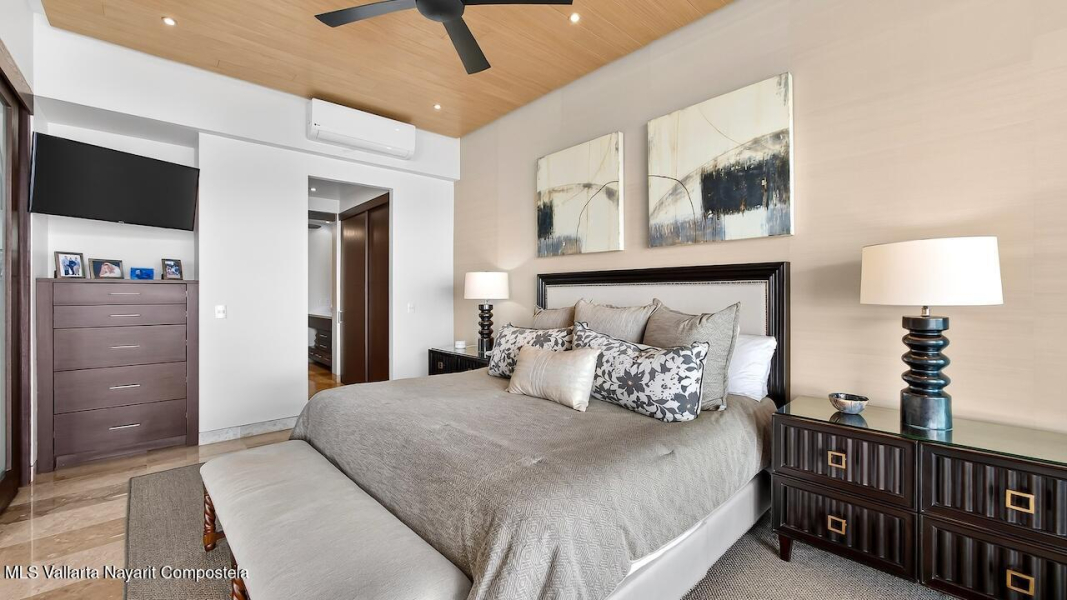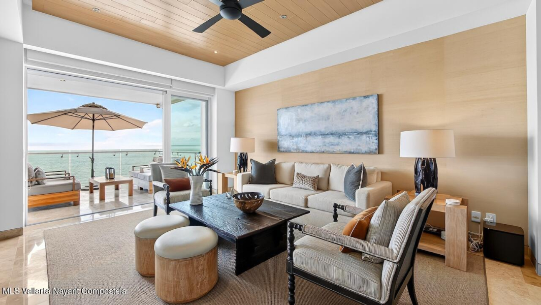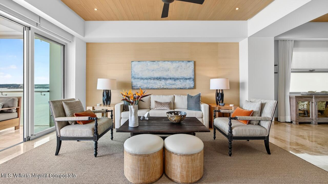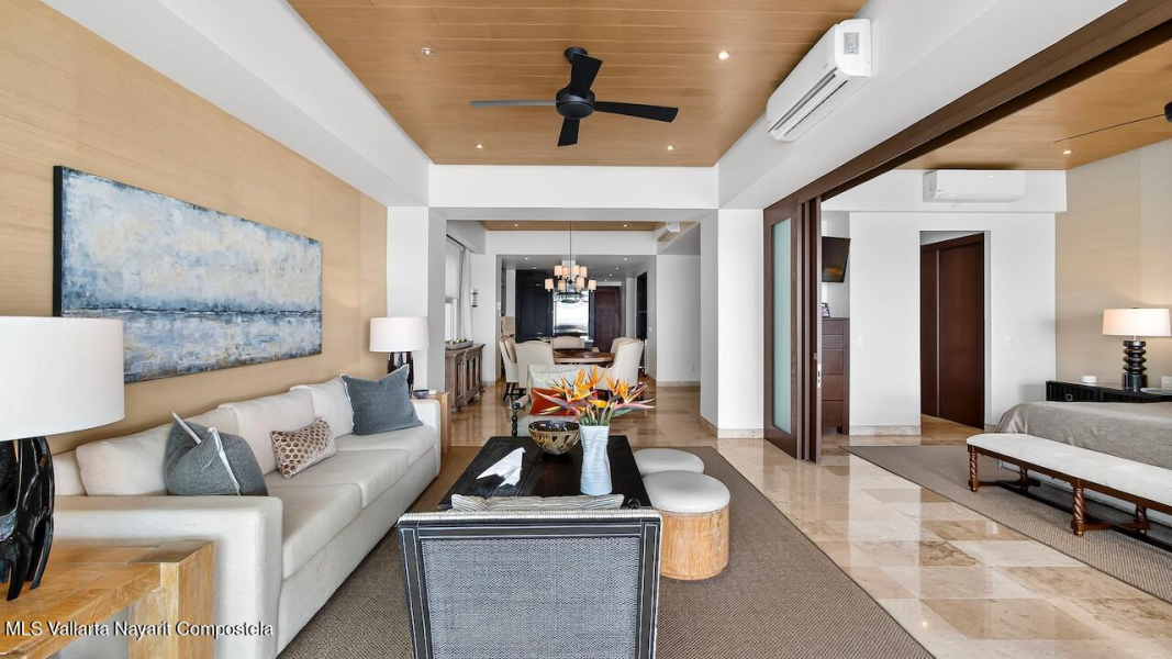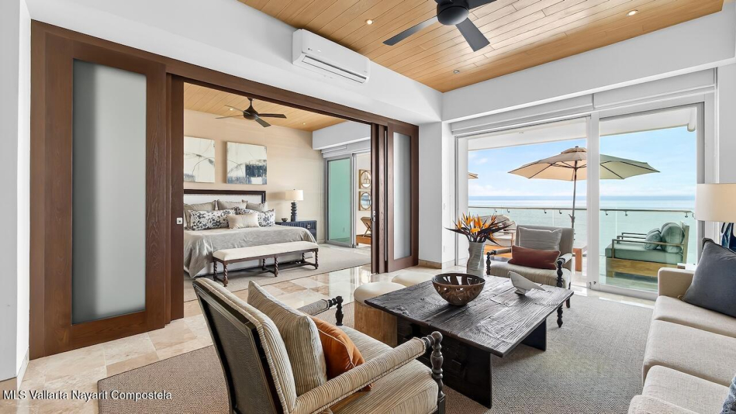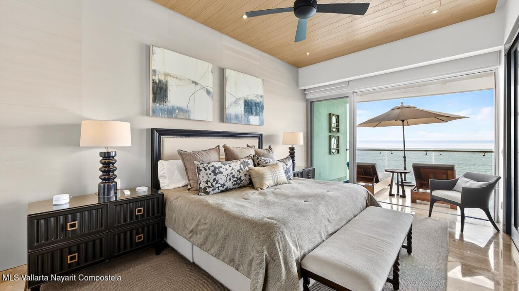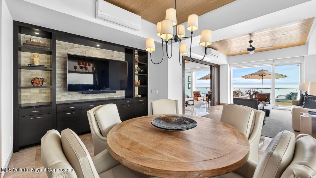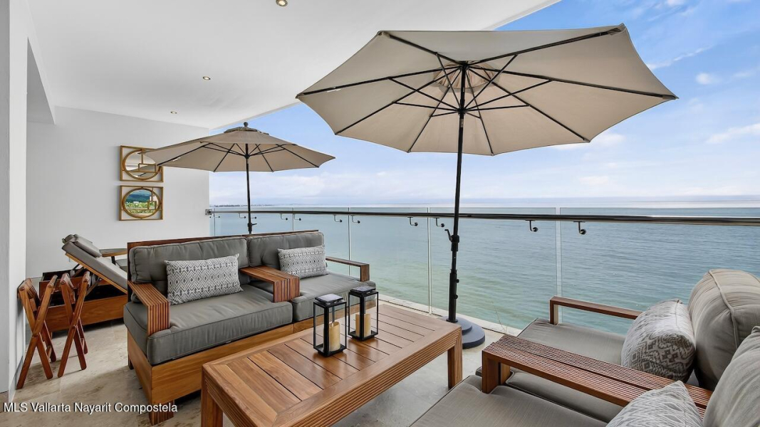 Excepcional condo frente al mar, remodelado y amueblado con mas de $140,000 MXN en muebles Pucte Wood personalizados. Acabados en marmol, cuarzo y madera. Cocina nueva con electrodomesticos KitchenAid, filtracion de agua, bar, TV 85” con sonido Bose, nuevos A/C. 1 cajon en cochera. Diagonal= desarrollo boutique con alberca, jardines, elevador y ubicacion ideal a 2 cuadras del centro. Exceptional corner beachfront condo, renovated & designer furnished with over $73K USD in custom Pucte Wood furniture. Features marble, quartz, & wood finishes, New kitchen with KitchenAid appliances, water filtration, custom bar, 85” TV with Bose surround sound, new A/C units. 1 garage space. Diagonal boutique 12-unit Condos offers pool, gardens, elevator, & prime location near downtown.