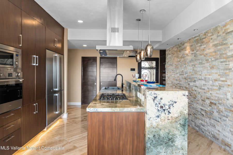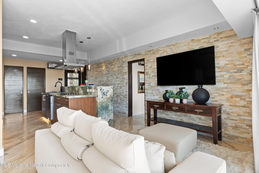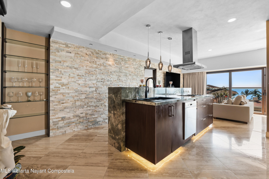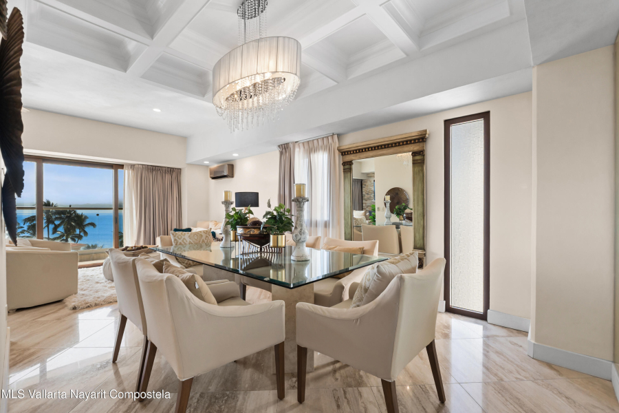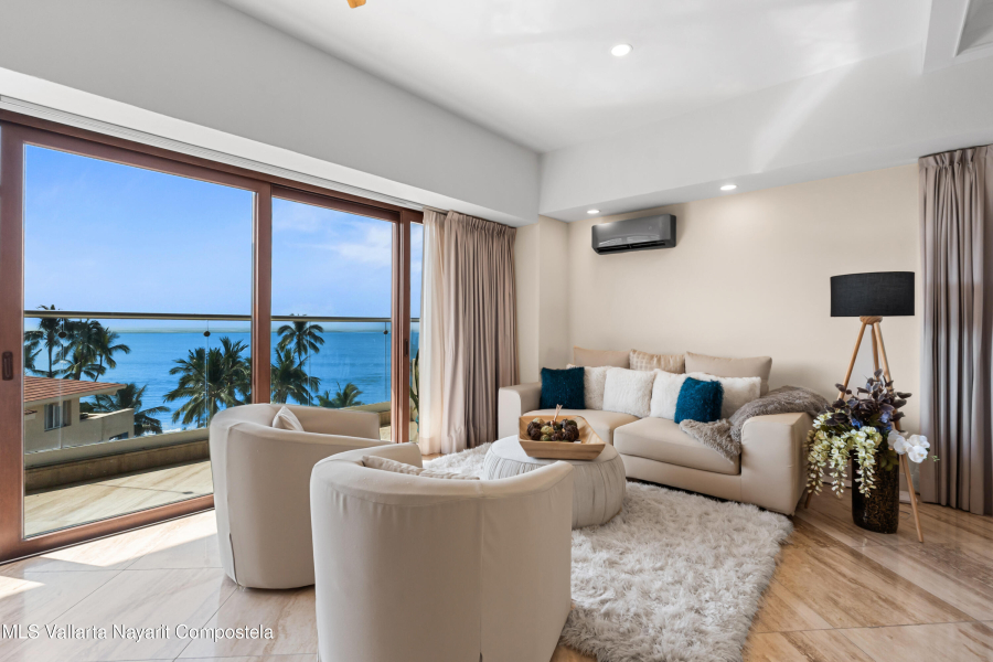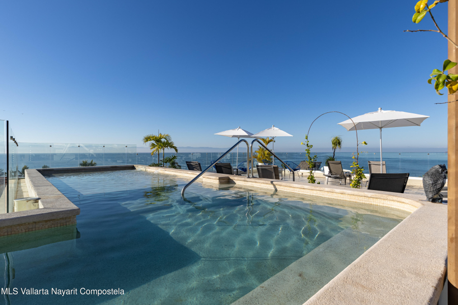 SPECTACULAR CONDO FOR SALE IN EL DIVINO DEVELOPMENT: This home can easily be converted to its original 3 bedroom floorplan by adding 1 wall, separating the living room & dining area, turning the formal dining room into the 3rd bedroom. El Divino has one of the most privilege locations in Bucerias golden Zone Exclusivity, functionality and design come together to create his charming small complex with only 13 units to get the best Mexican Lifestyle. The building’s design and orientation creates a fresh atmosphere in & out of the Condo with spectacular Ocean Views. This luxurious Ocean Views Condominium is custom throughout with all modern amenities, including a gth floor rooftop deck with flowing infinity style pool/jacuzzi with a 360-degree view of the surrounding beach.