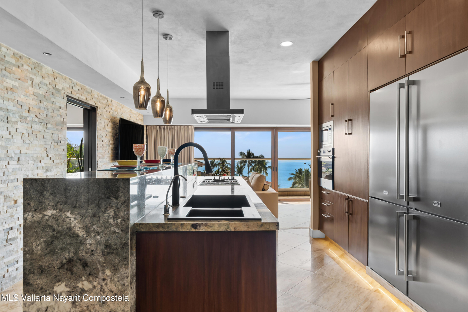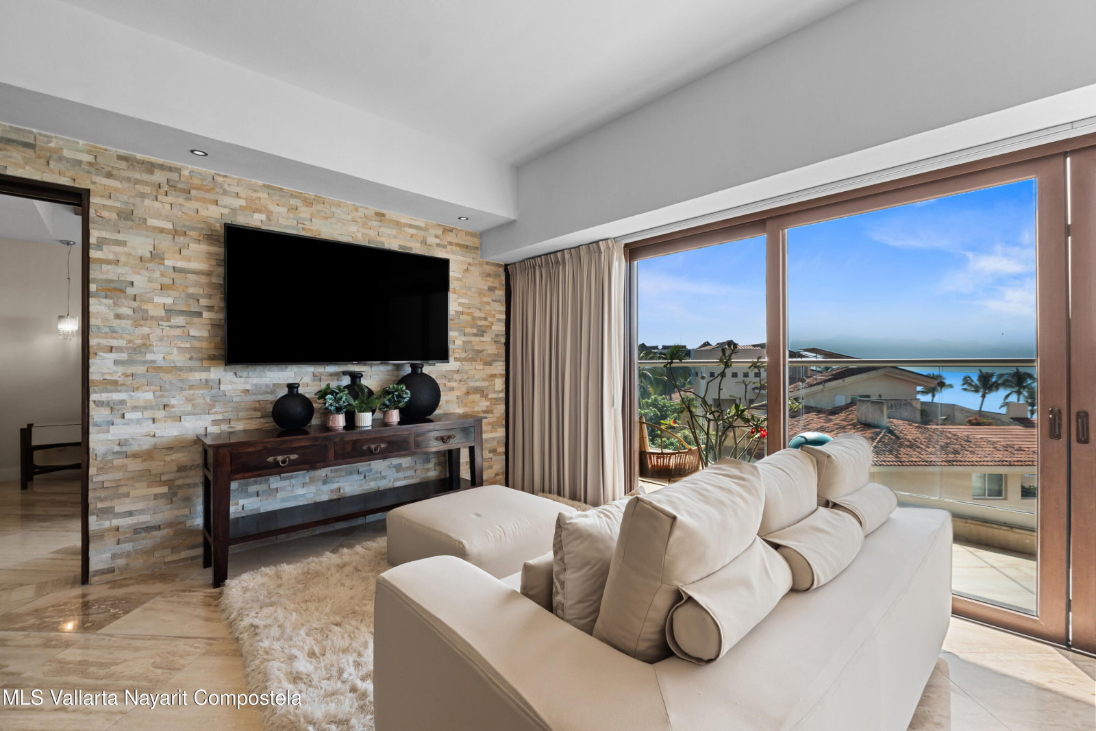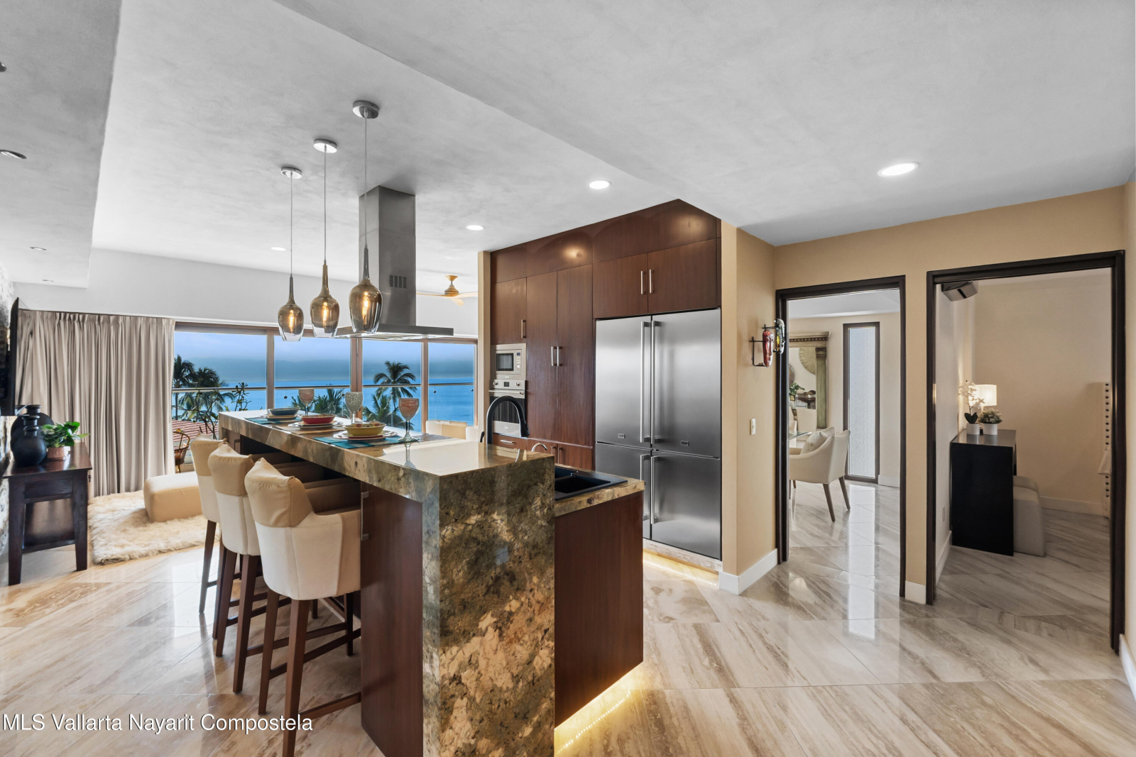 SPECTACULAR CONDO FOR SALE IN EL DIVINO DEVELOPMENT: This home can easily be converted to its original 3 bedroom floorplan by adding 1 wall, separating the living room & dining area, turning the formal dining room into the 3rd bedroom. El Divino has one of the most privilege locations in Bucerias golden Zone Exclusivity, functionality and design come together to create his charming small complex with only 13 units to get the best Mexican Lifestyle. The building’s design and orientation creates a fresh atmosphere in & out of the Condo with spectacular Ocean Views. This luxurious Ocean Views Condominium is custom throughout with all modern amenities, including a gth floor rooftop deck with flowing infinity style pool/jacuzzi with a 360-degree view of the surrounding beach.