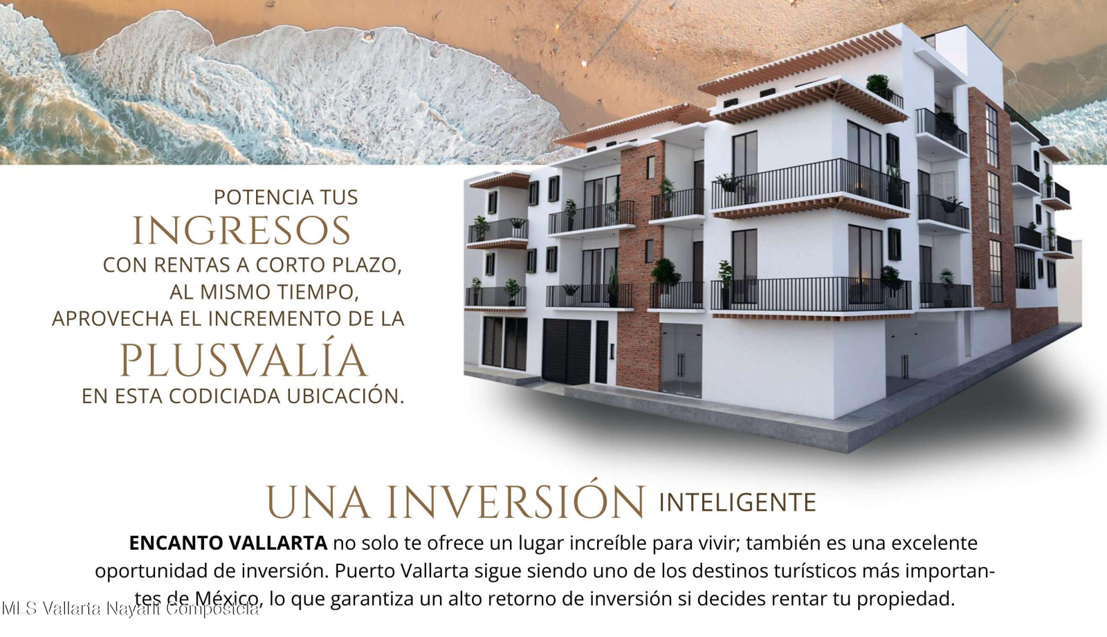Prime location in the heart of the city, surrounded by the best restaurants, galleries, entertainment venues, spas, craft shops, and just steps from the beach.Encanto Vallarta is an exclusive project with only 17 units on three levels. It is architecturally designed to enhance the traditional charm of one of Puerto Vallarta’s most desirable neighborhoods, EL CENTRO. Only 7 units left. Take advantage of pre-construction savings.The project is 75% complete and is ideal for to digital nomads, snowbirds or investors who want to generate income given its amazing rental potential.Elevator, indoor parking, storage, common areas with a bar, lounge chairs, and a pool. The developer, Panorama PV, has an excellent track record and several successful projects in the region.