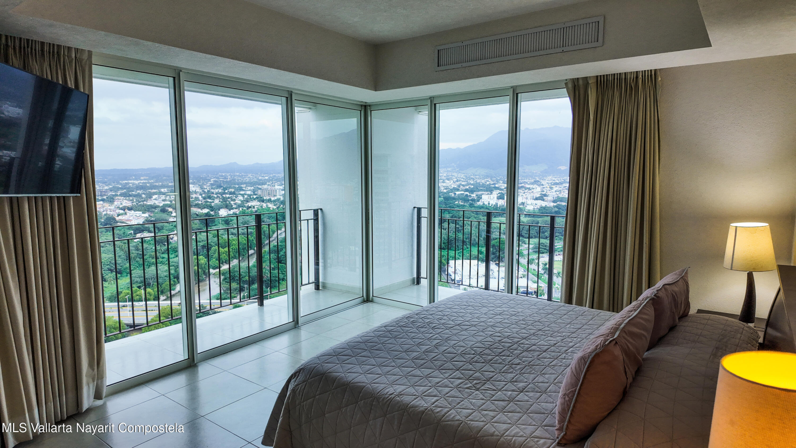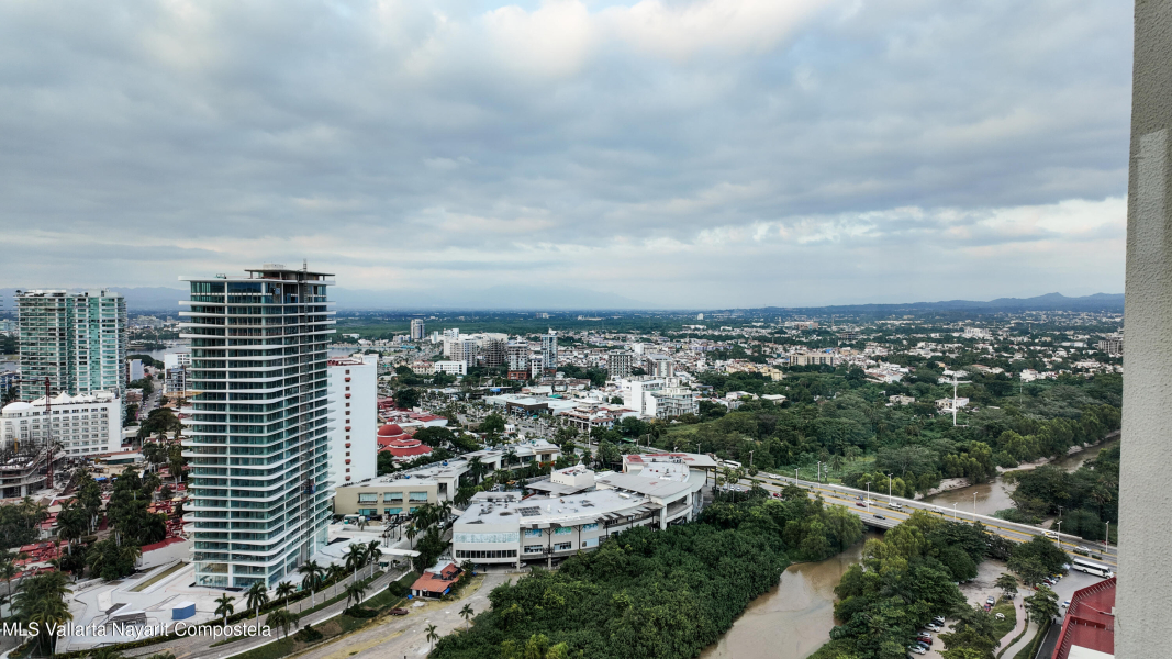 Experience elevated coastal living in this exquisite two-bedroom, two-bathroom residence perched on the 25th floor of the prestigious Grand Venetian. This luxurious oceanfront condo showcases breathtaking views of both the Pacific Ocean and El Pitillal River, beautifully framed by its expansive wraparound terrace–ideal for entertaining or unwinding against the backdrop of vibrant sunsets. The open-concept living area seamlessly integrates indoor and outdoor spaces, creating an inviting ambiance of comfort and sophistication. Each bedroom features its own private balcony, offering sweeping vistas of the city skyline and the majestic Sierra Madre mountains. Residents enjoy access to world-class, resort-style amenities, including three beachfront infinity pools, beautifully landscaped garden