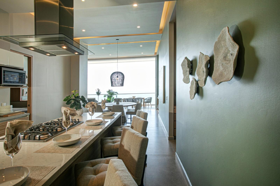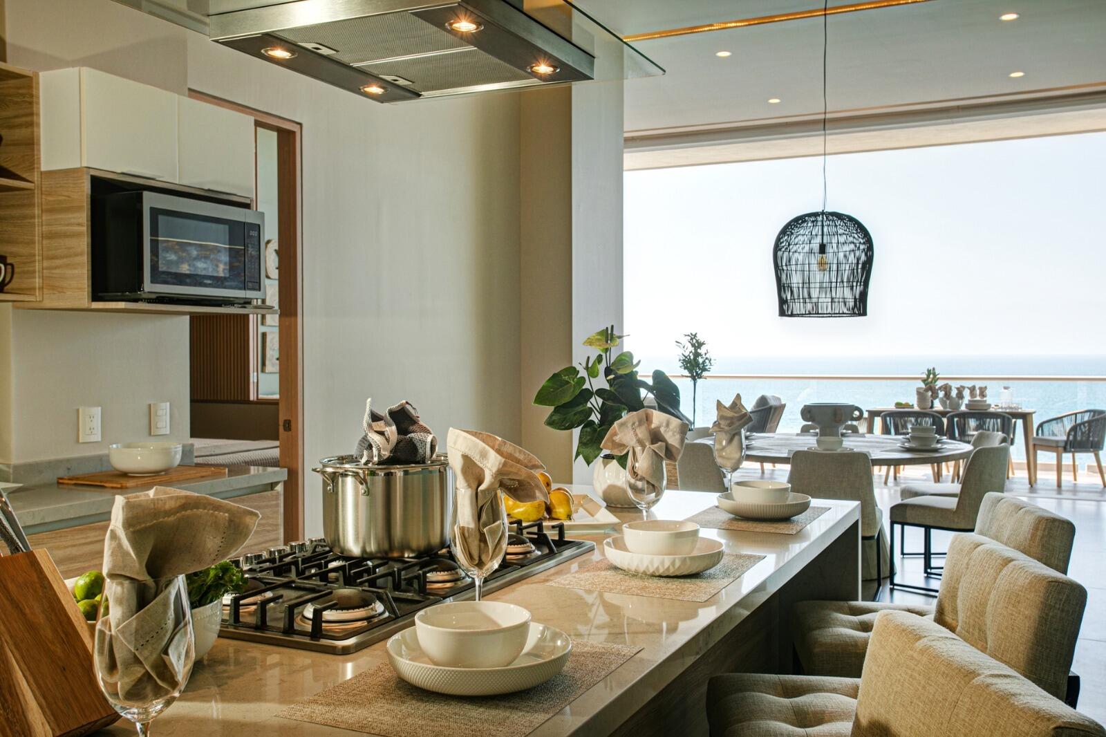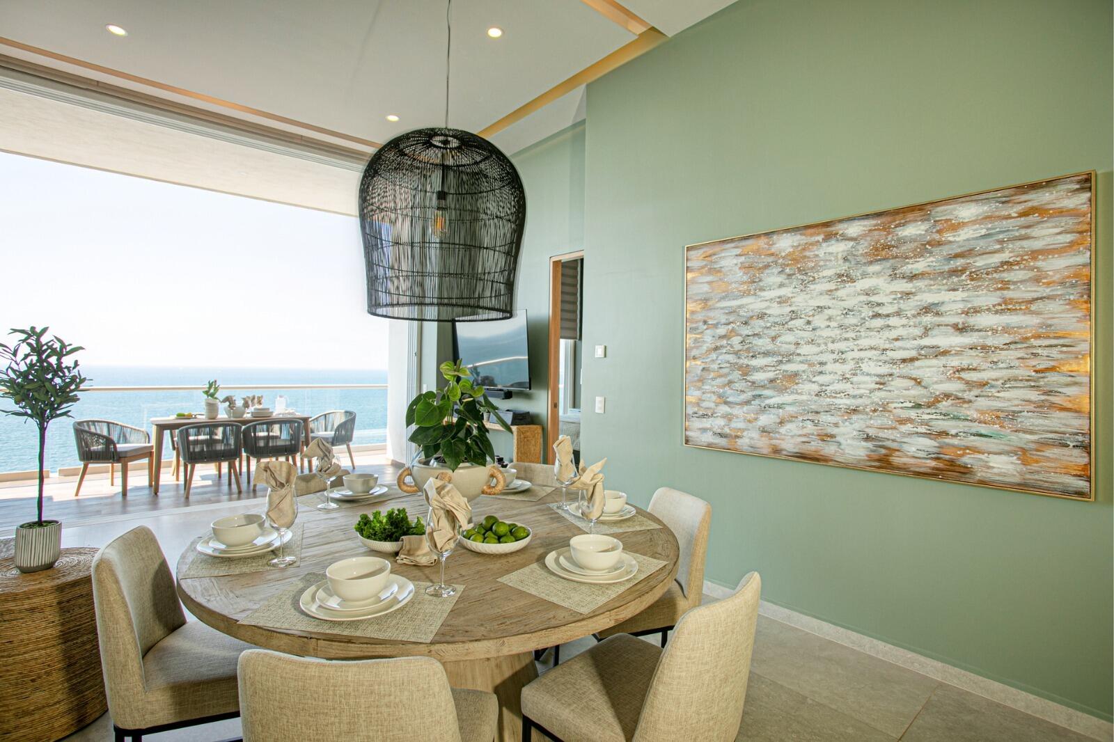 This lovely PH Beachfront 3 bedroom 3 bathroom boasts high ceiling, wide panoramic views so much so that you could almost reach out and touch the migrating whales and dolphins displaying their navigational abilities right in front of you. Whether you’re looking to the downtown area or at the sunset you’ll have some of the best beachfront views in the entire Bay of Banderas. The unit has over 100 K of upgrades and was original owned by the developer of Harbor himself. Crate Interiors did the professional name-brand furniture package worth well over 100 K as well. The Harbor community itself is located beachfront, only a 20-25 minute walk to the famous downtown Malecon and just minutes away from many 5 star restaurants, Costco, Walmart, Soriana, La Comer, etc. Sit back & enjoy luxury!