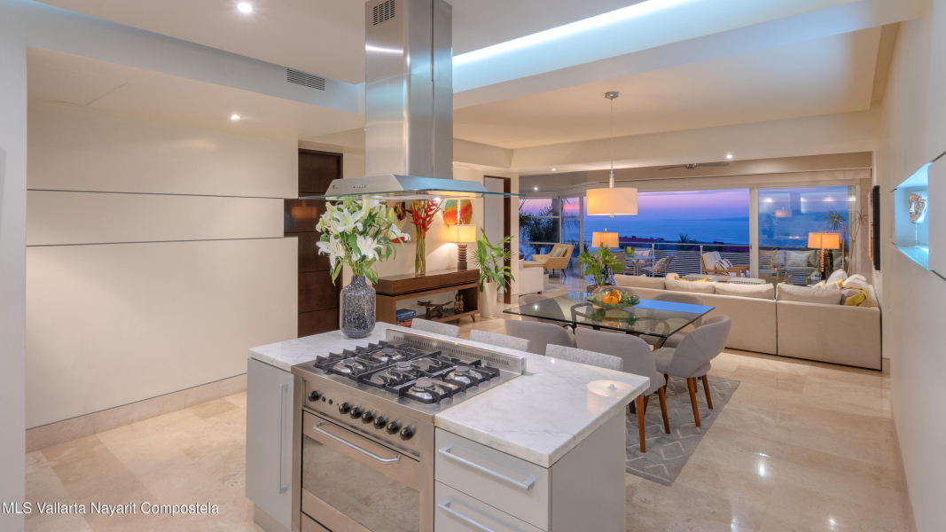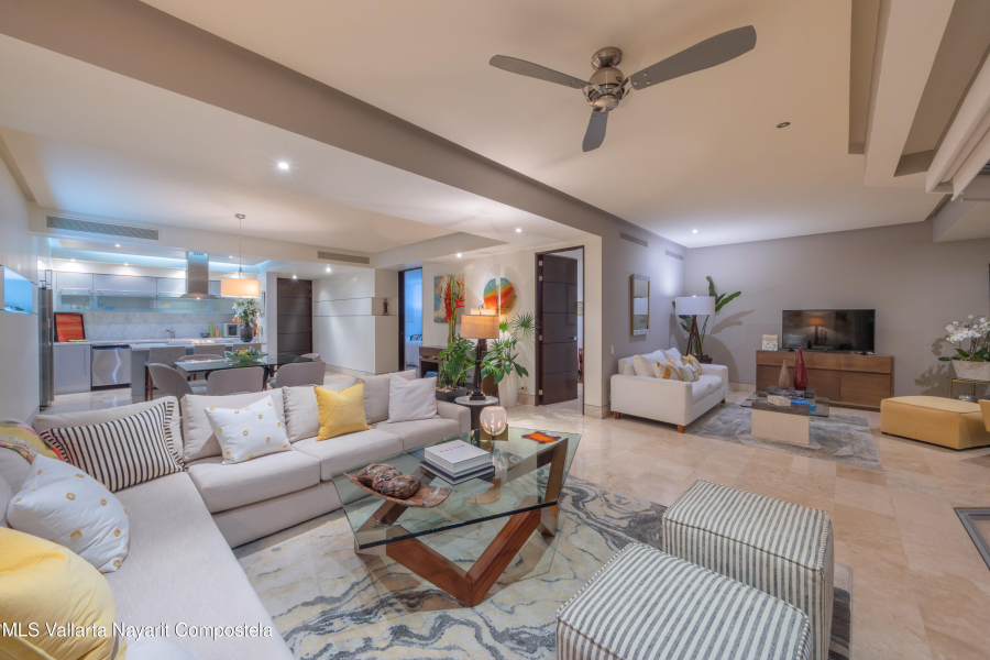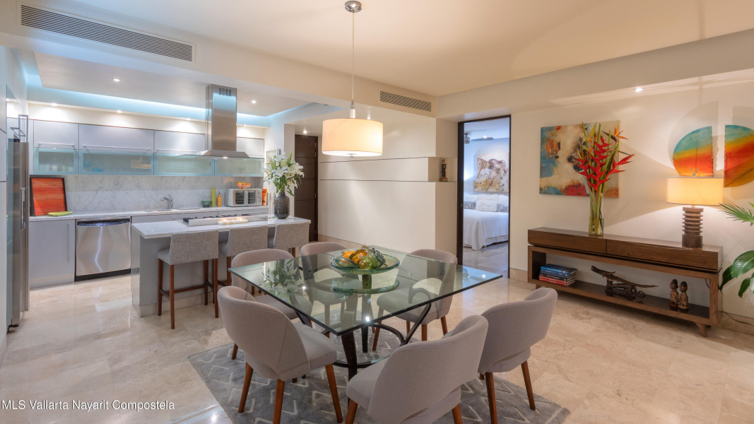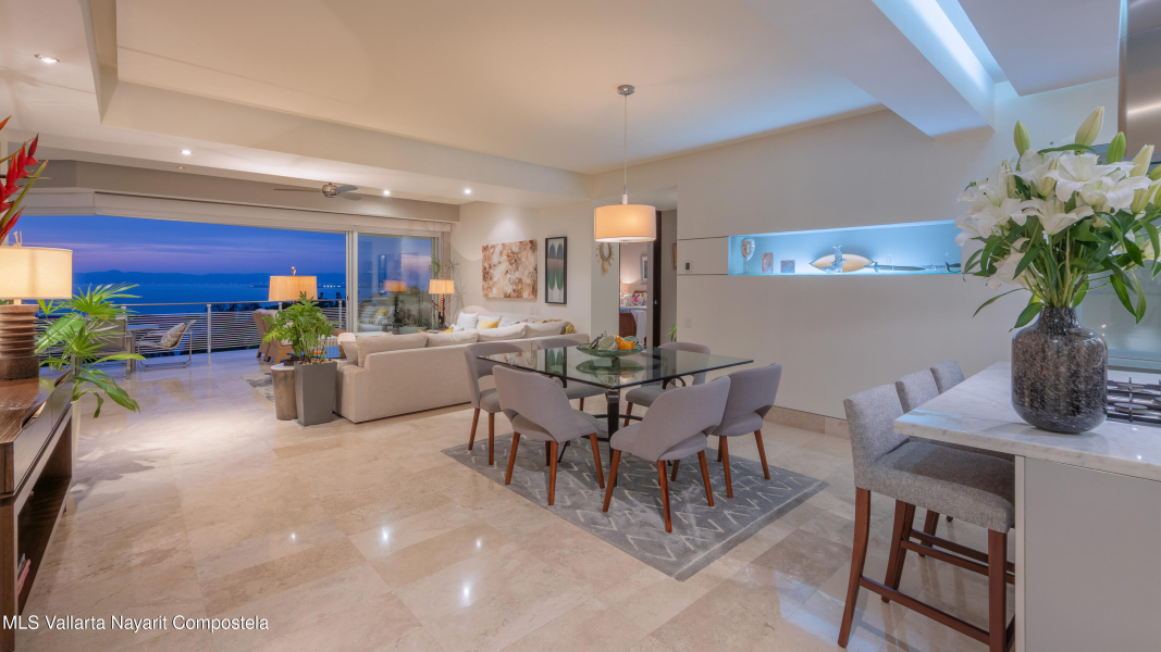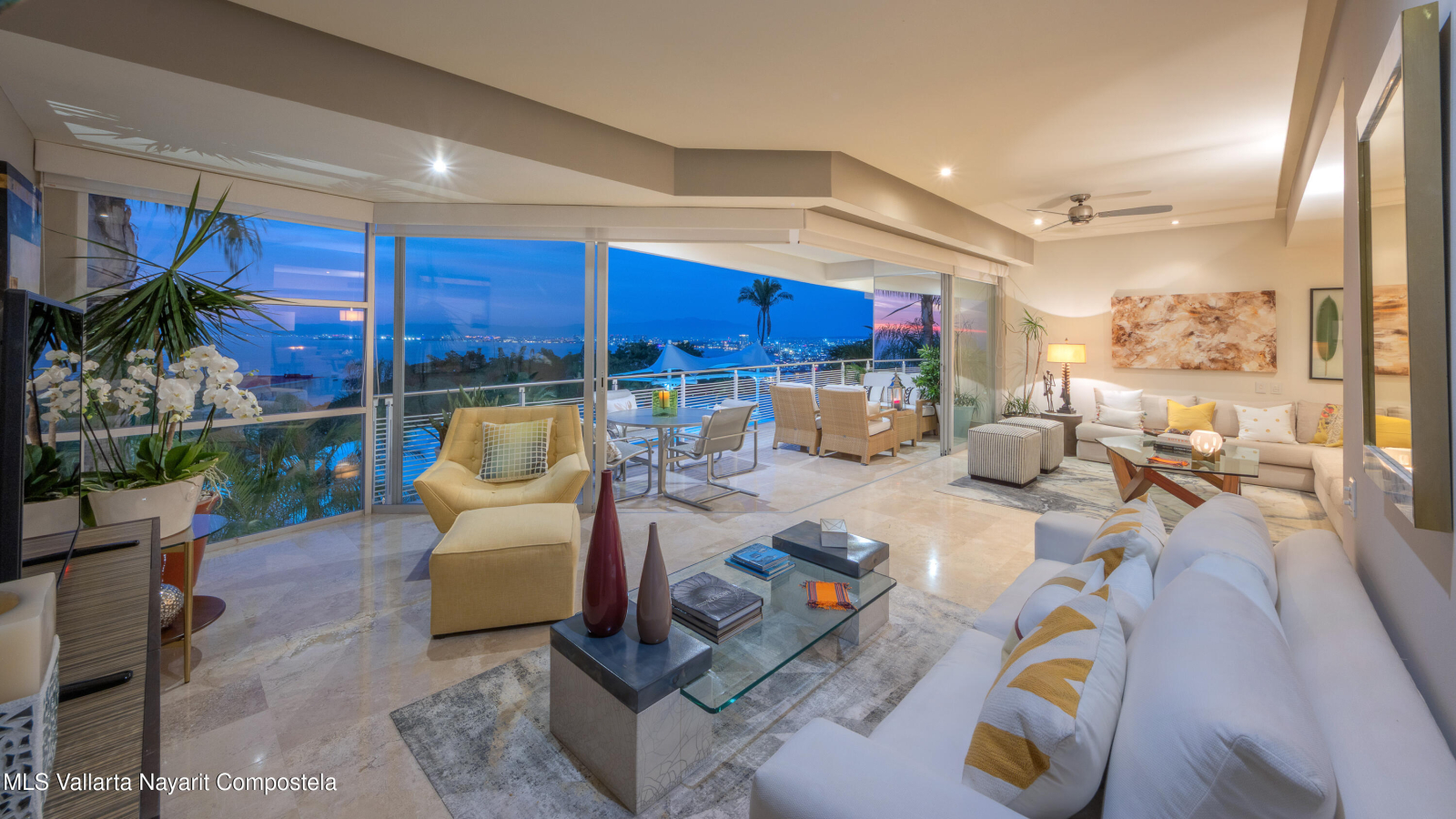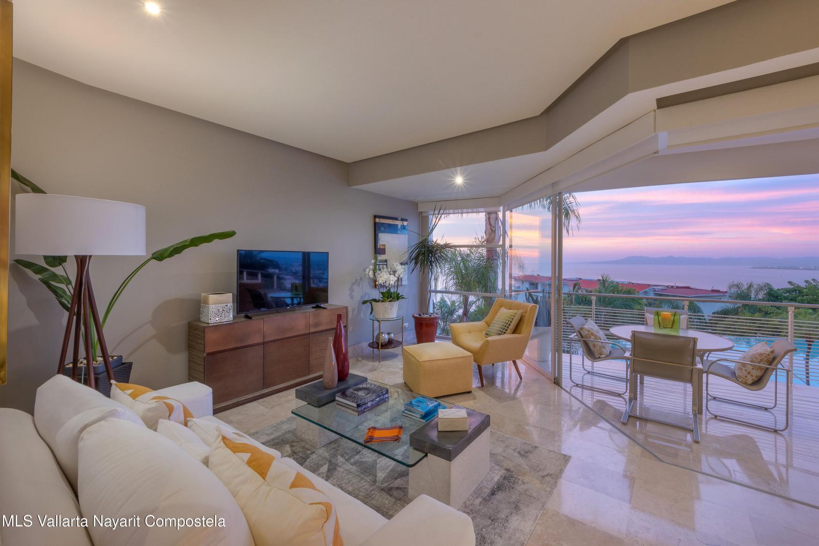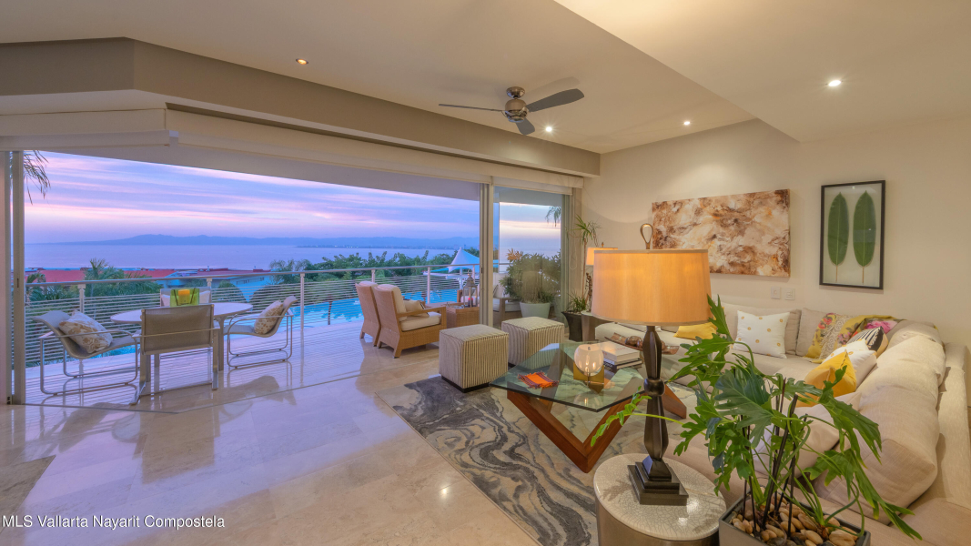 Bienvenido a Horizon 204Esta maravillosa unidad de planta abierta en el segundo piso cuenta con 2 recamaras, 2 banos, una amplia sala de estar y una amplia terraza con maravillosas vistas al mar desde casi todas las habitaciones. Tambien cuenta con un amplio cuarto de servicio (que podria ser una enorme bodega, una oficina o incluso un cuarto de servicio), algo poco comun en Horizon. La unidad esta amueblada con buen gusto y seria una excelente vivienda, casa de vacaciones o incluso podria alquilarse. Incluye estacionamiento.Horizon es un impresionante edificio ubicado en las colinas de Amapas, a unos 5 minutos en auto de la Zona Romantica. Ademas de seguridad las 24 horas, el edificio cuenta con una gran alberca (y varias albercas mas pequenas) y un gimnasio