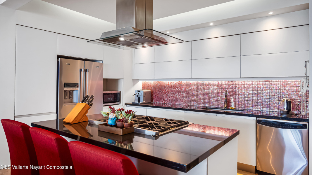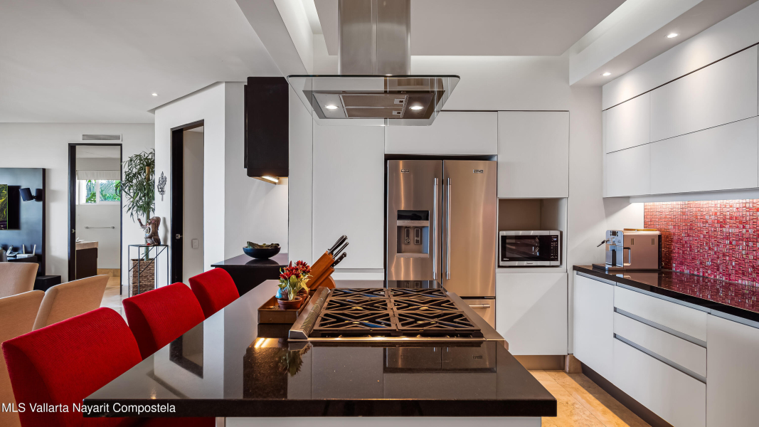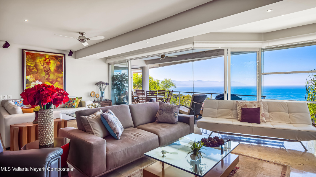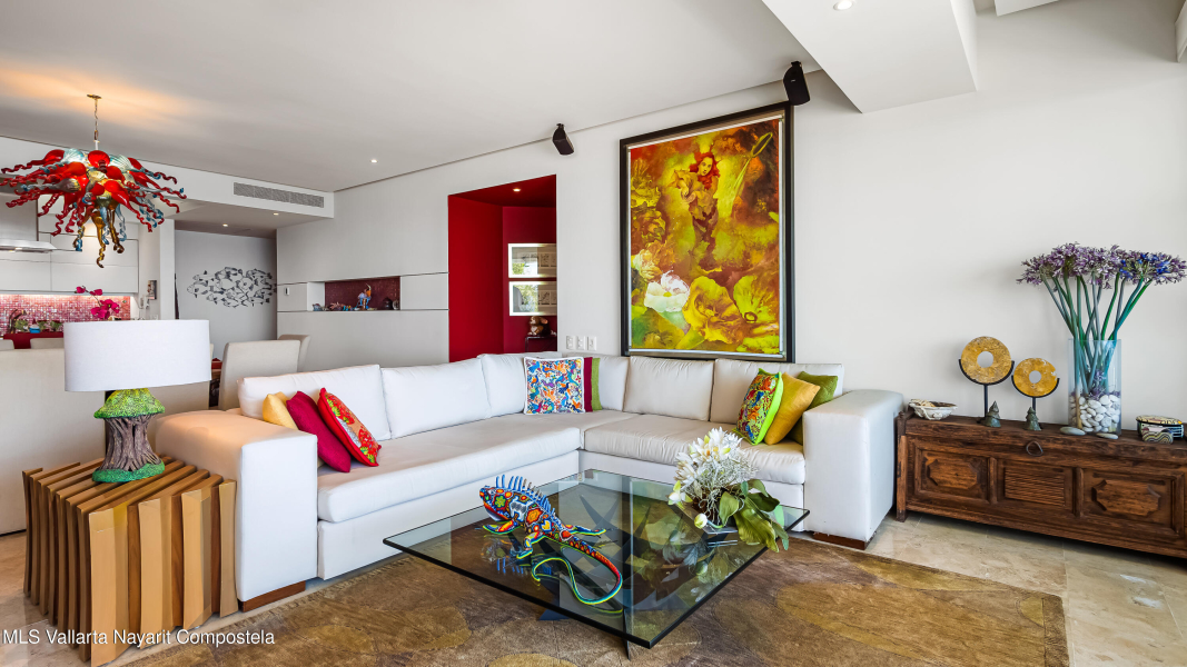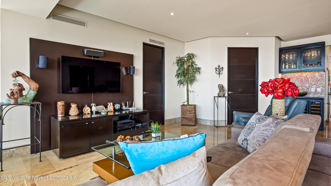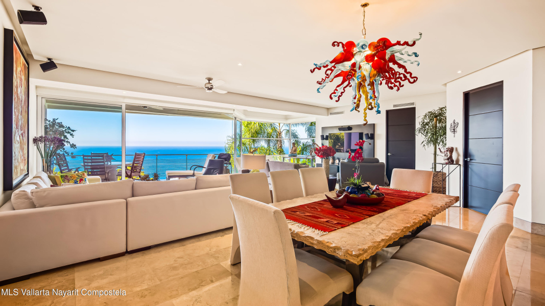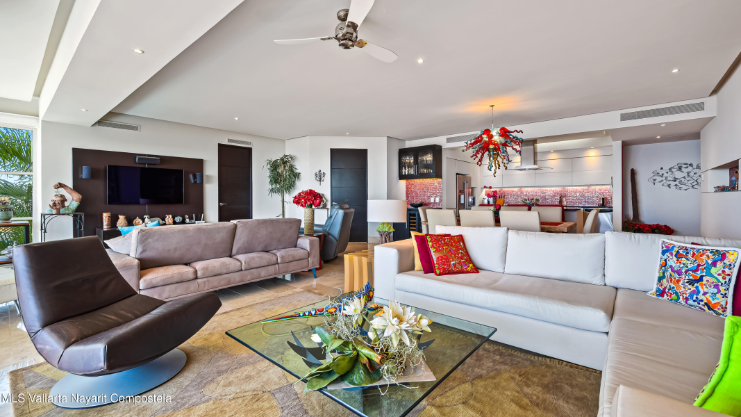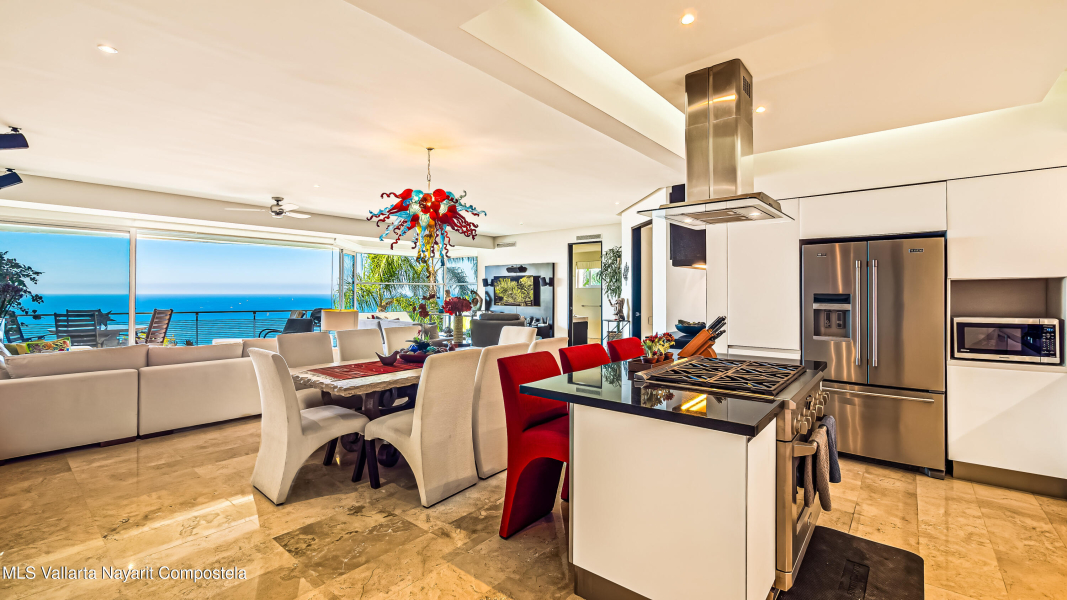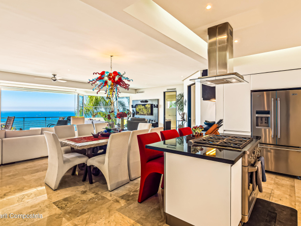 Enclavado en las serenas colinas de Amapas, a pocos minutos de la vibrante Zona Romantica y la iconica Playa de Los Muertos, Horizon 206 ofrece una mezcla perfecta de privacidad, lujo y comodidad. Esta unidad de esquina norte en la Torre Sur cuenta con vistas panoramicas del oceano, la ciudad y la exuberante selva, con su ubicacion a pocos pasos de las piscinas climatizadas del edificio.Con una cuidada distribucion de 2 dormitorios y 2 banos, este departamento destaca por su amplio diseno, que ofrece la maxima privacidad entre el dormitorio principal y el de invitados, situados en extremos opuestos de la unidad. En el corazon del espacio, la cocina totalmente equipada, completa con un refrigerador de vino y zona de bar, se conecta a la perfeccion a la amplia