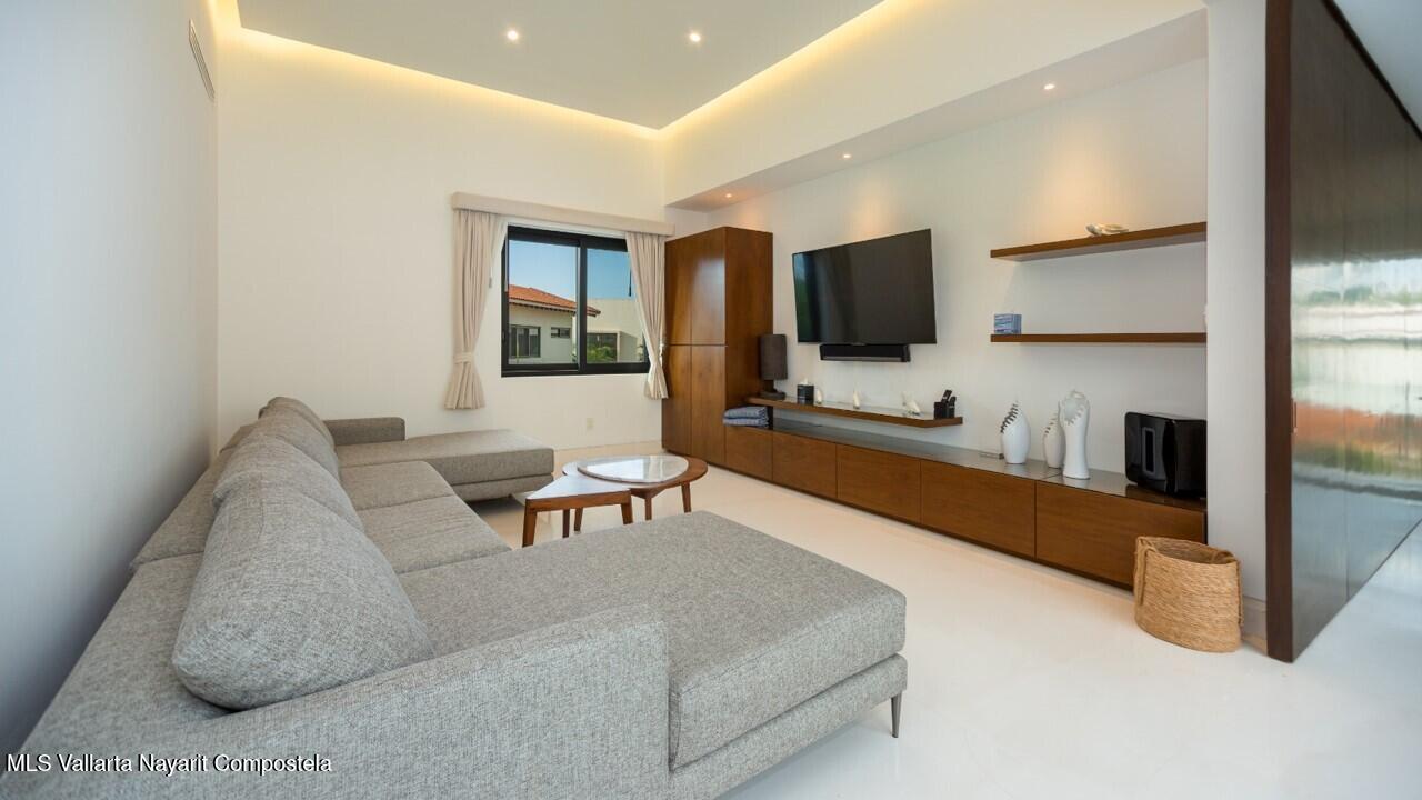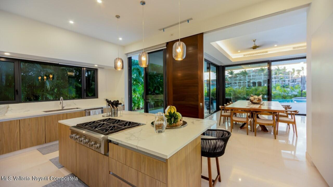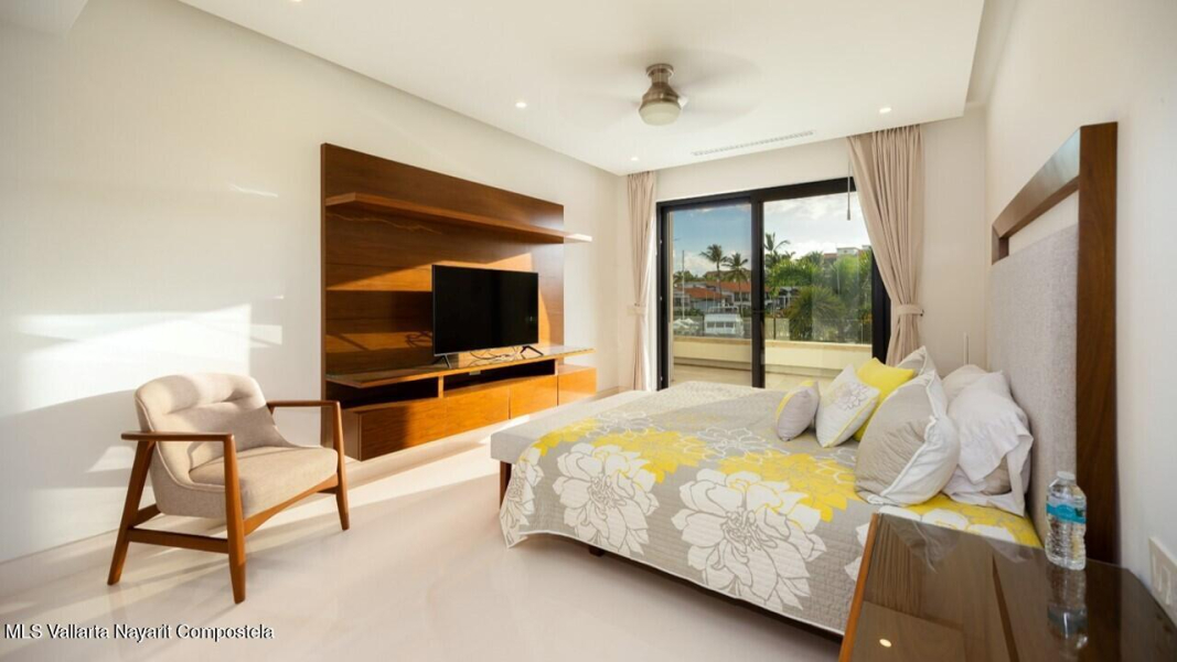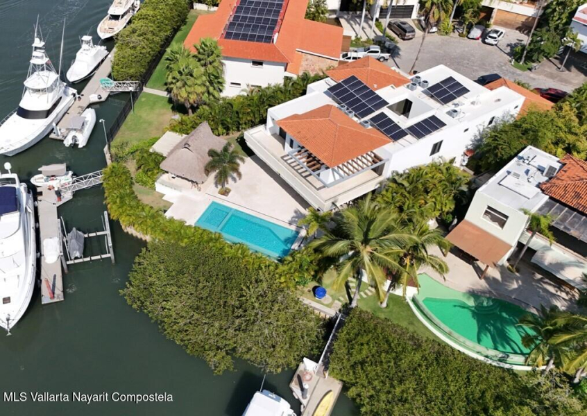 Vive el lujo absoluto en Isla Capitan, la zona mas exclusiva de Nuevo Vallarta.Esta magnifica residencia de dos niveles se encuentra en el canal principal con salida directa al mar, ideal para los amantes de la navegacion. La propiedad combina elegancia, comodidad y sostenibilidad, equipada con celdas solares que abastecen toda la casa y una planta potabilizadora de agua para mayor autonoma.Cuenta con cuatro amplias recamaras, una sala de television, cinco banos, terrazas con vistas espectaculares, una gran palapa, alberca y jacuzzi, ideales para disfrutar del clima tropical. Ademas, incluye un cuarto de servicio para mayor funcionalidad.Para los entusiastas de la vida nautica, la casa dispone de un muelle de aproximadamente cincuenta pies y una grua para lanchas y