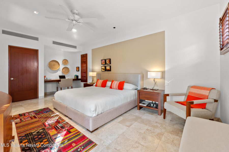 Discover the charm of El Tigre with this elegant one-bedroom apartment in Isla Palmares. Fully furnished with high-quality pieces, cathedral ceiling, ample storage, and refined design by an interior decorator, it offers comfort and sophistication. The complex features lush gardens, indoor parking, and two pools integrated into nature. Located in Nuevo Vallarta’s prestigious community, it ensures 24/7 security and access to a sports club with tennis, pickleball, padel, gym, training areas, children’s pools, and a semi-Olympic pool. Residents also enjoy a world-class golf course, vast green spaces, and a private beach club with restaurant and exclusive services.