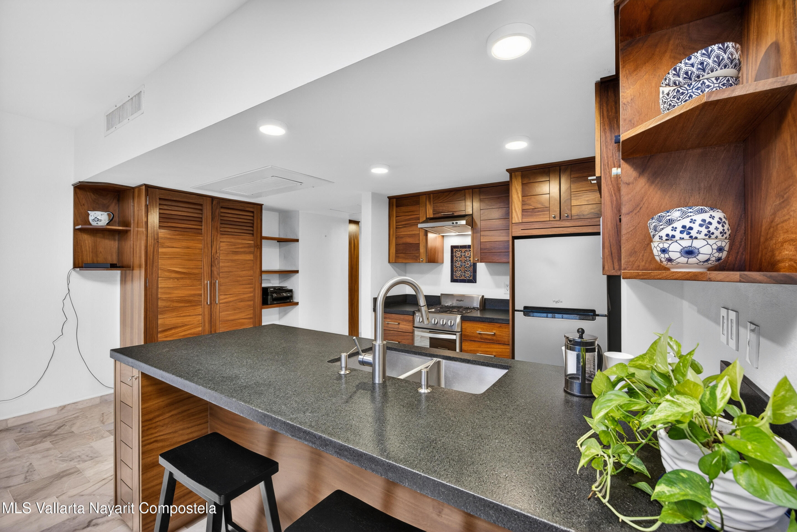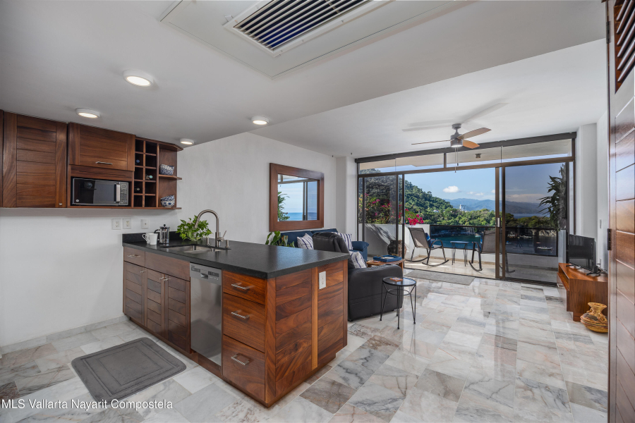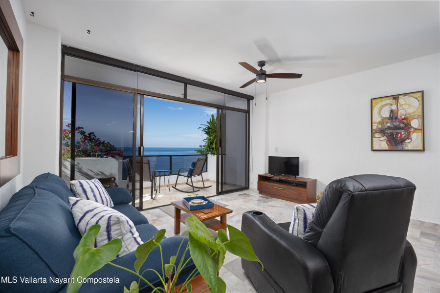 Experience the tropical Puerto Vallarta lifestyle in this inviting oceanfront 1BD / 1BA condo, located within the remarkable La Jolla de Mismaloya complex. Perched on the South Shore, this unit offers an authentic connection to the natural beauty of the jungle-meets-ocean landscape. Enjoy a bright, open-concept layout and breathtaking bay views from your private terrace.Amenities include: Beach access, 24/7 security, reception desk, swimming pool, jacuzzi, Gym, off-street parking, tennis court, pickleball courts, restaurant-bar, and laundry service.Your South Shore oasis awaits!