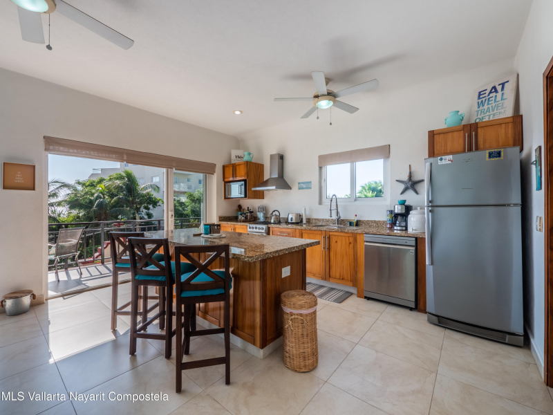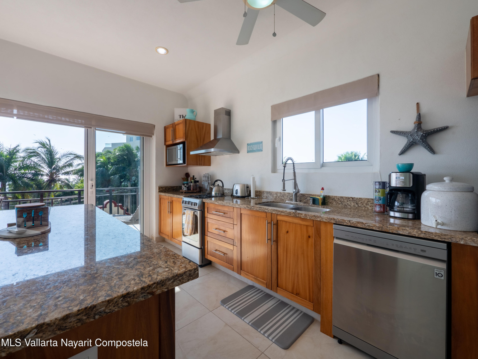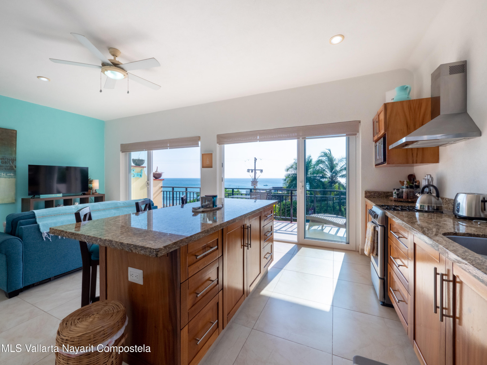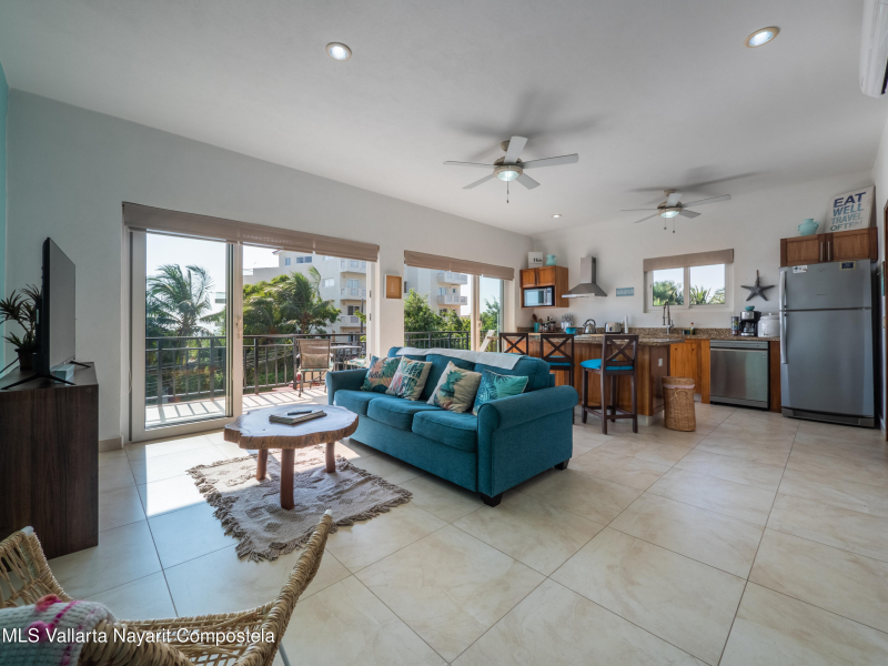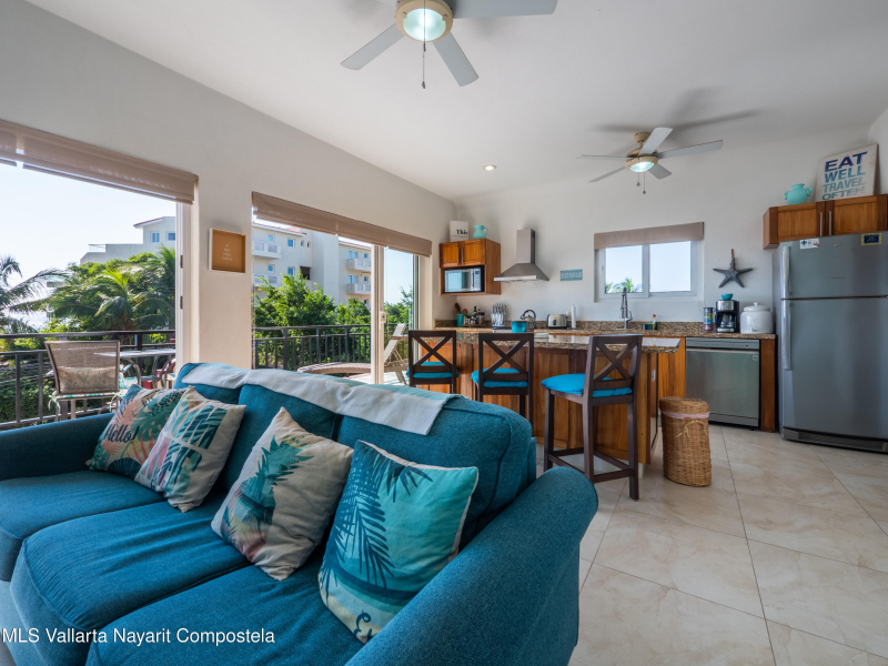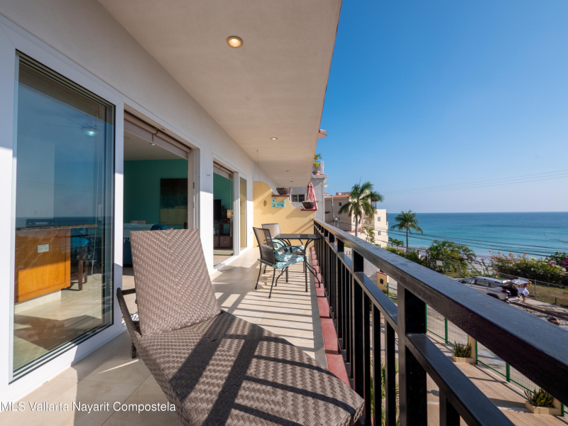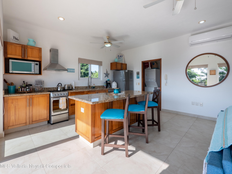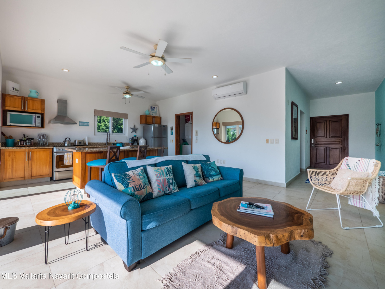 Paradise awaits!!! One bedroom one bath oceanfront condo with spectacular views in the highly sought after La Mision de Mita development in Punta de Mita. This unit includes a patio with 180 degree ocean views, full kitchen, laundry room and onsite parking. Everything in this 1100 square foot turnkey home is brand new and unit has an excellent rental history. Common areas include a large pool, hot tub, grilling area, grassy areas, hammocks and a rooftop sundeck. Step across the street to the surf break and white sandy beach, lay by the pool in the shady courtyard, or walk to the shops and 5 star restaurants of Punta de Mita. Su paraiso le espera!!! Condominio de una recamara y un bano, frente al mar con vistas espectaculares en el desarrollo popular La Mision de Mita en Punta de Mita