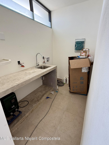 Newly built custom 3 bedroom and 3.5 bath house in Fluvial. This architect designed soft modern home will be ready for a new owner soon. First level is the living, dining, laundry and a full bath. The house opens to a large terrace in the back and has expansive glass doors. The second level is three bedrooms, two guest rooms with a shared bath and a master with walk in closet and bath. Also on the second level is an office, TV or play area. The third level is a large rooftop area that is partly covered and can be used as an outdoor kitchen and area to entertain. The house also has a large parking area that is gated.