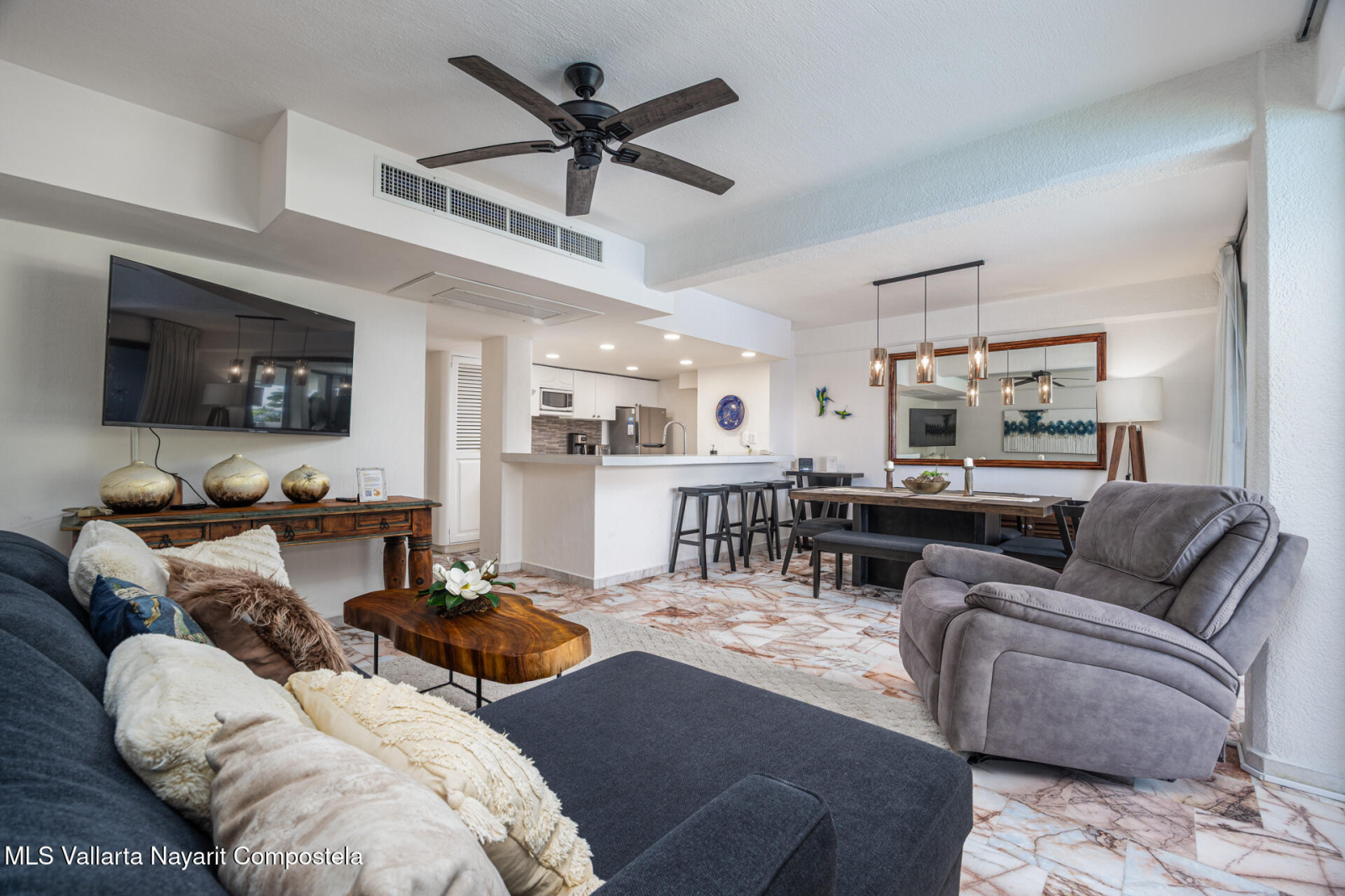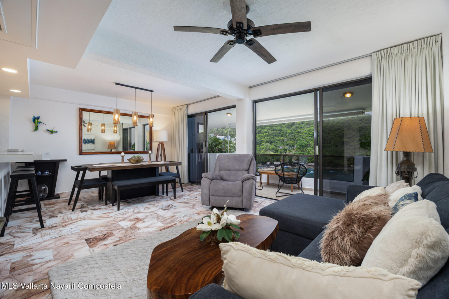 Beautiful oceanfront condo in La Jolla de Mismaloya, located in the South area of Puerto Vallarta. Enjoy the most beautiful sunsets by the ocean and the tropical lash Sierra Madre mountains. Amenities: 24/7 security & reception desk, swimming pool, jacuzzi, off street parking, tennis court, restaurant-bar, maid service, public laundry service. etc. The ideal property for a second home in paradise or a rental investment.