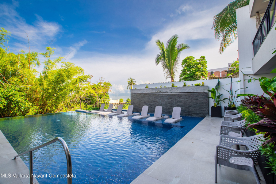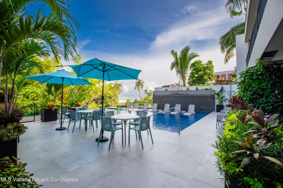 Welcome to your dream retreat in the prestigious Conchas Chinas neighborhood. This elegant unit offers two spacious bedrooms, two and a half bathrooms, a fully equipped kitchen, air conditioning, and an in-unit washer and dryer. Enjoy the large front terrace with a beautiful view of the infinity pool, perfect for relaxing or entertaining. A second rear terrace provides extra outdoor space and direct access to the deeded storage room, which could easily be converted into a private gym. Complete privacy is assured throughout. The building features a pool deck, parking, and secure storage, making this serene haven a rare opportunity to own a slice of paradise in highly sought-after Conchas Chinas.