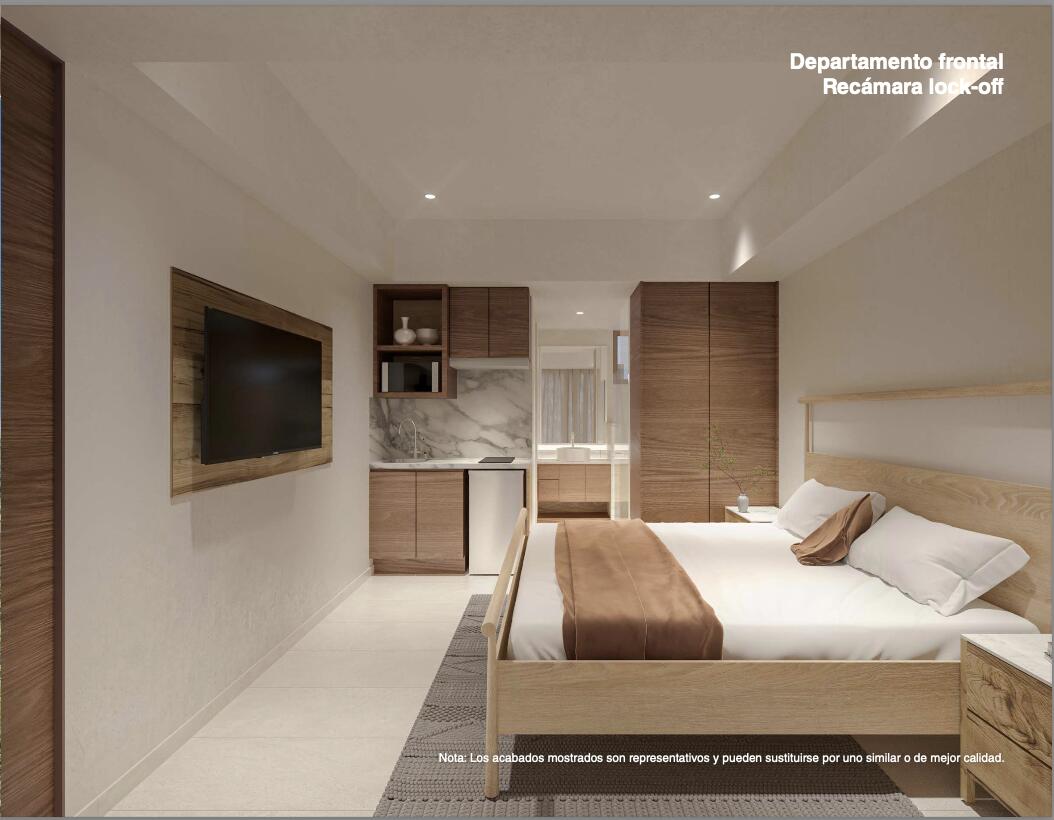Precioso condominio nuevo en esquina con grande terraza, y plano lockoff! Alquile como 2 condominios independientes o disfrute como 1! Opcional jacuzzi. 20 condominios, piscina infinita climatizada en la azotea, vistas, gimnasio, elevador. Bodegas y estacionamiento costo adicional ($). Ubicacion perfecto 1/2 cuadra a la playa, 2.5 cuadras del centro, o plaza Los Amores. A 20 minutos del aeropuerto. Listo Dec. 2025!Gorgeous corner condo, large deck, + lockoff floorplan. Use as 2 self contained condos or enjoy as 1! Optional jacuzzi. 20 condos, rooftop heated infinity pool with views, gym, fire pit, BBQ area, elevator. Storage + parking are extra $. Perfect location 1/2 block to beach, 2.5 blocks to downtown or Los Amores Plaza. Estimated deliver Dec 2025.