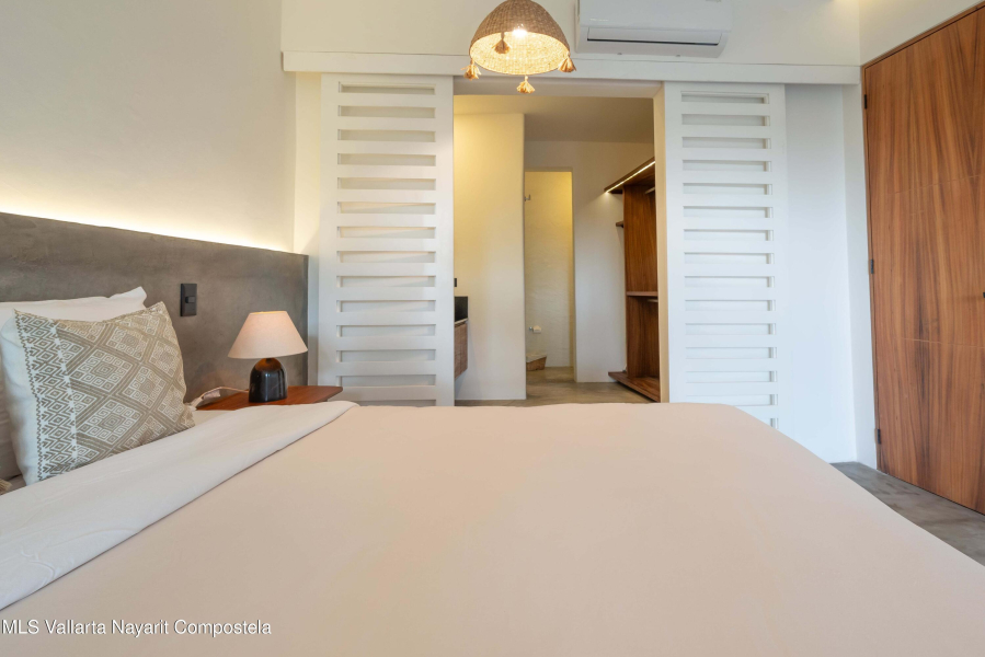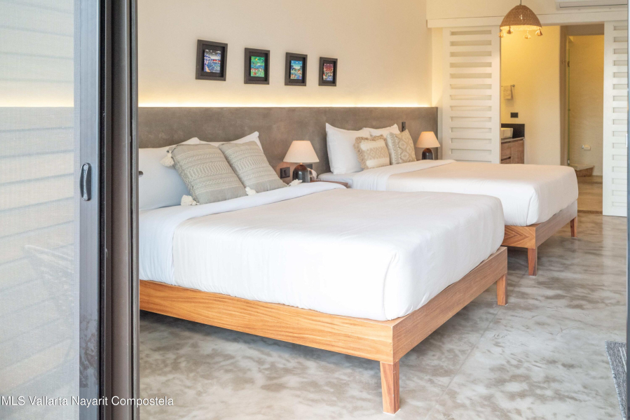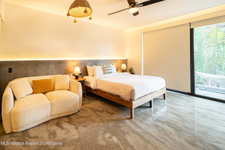 This beautiful condo is located in Attalea, a condo residence just a 7-minute walk to Sayulita’s best beach area on the north side. This brand-new, thoughtfully designed and modern condo on Sayulita’s peaceful north side offers the perfect balance: close enough to walk to the vibrant center, yet far enough to unwind in nature and quiet.The condo has some amazing features: Expansive Bedrooms & Living Area – Bright, comfortable spaces with modern furnishings and thoughtful touches throughout. Oversized Private Balcony – Lush jungle views and generous seating for morning coffee or sunset cocktails. Fully Equipped Kitchen – High-end appliances, quality cookware, and a stunning parota wood dining table on the private deck. Reverse Osmosis Filtered Water