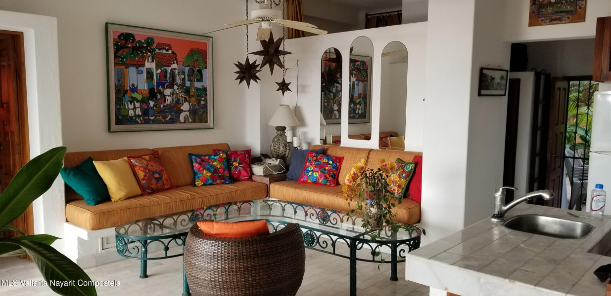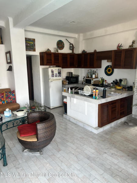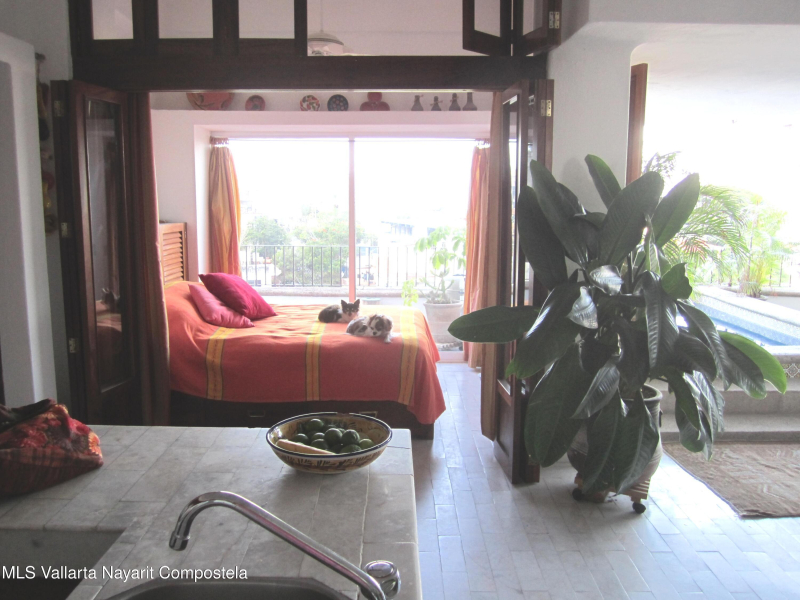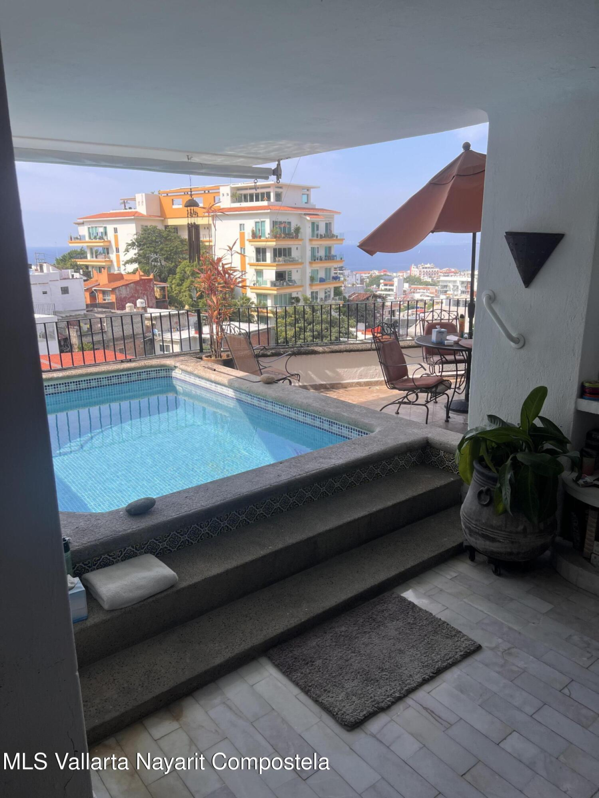 Disfrute de la autentica vida vallartense a solo minutos de la Zona Romantica. Este condominio renovado de 2 recamaras y 2 banos ofrece impresionantes vistas al mar y a la ciudad, ademas de una inusual alberca privada en la terraza. El propietario aprovecho inteligentemente el plano existente, sin necesidad de nuevas construcciones, para crear una hermosa segunda recamara con puerta corredera y balcon privado. A solo 5-6 minutos del centro y a 9-10 minutos de la playa, estara cerca de restaurantes y vida nocturna, pero lo suficientemente lejos como para evitar el ruido. Ubicado en una calida comunidad mexicana donde Jacarandas organiza celebraciones callejeras locales, tambien ofrece una de las cuotas de mantenimiento mas bajas de la zona. Una visita obligada.