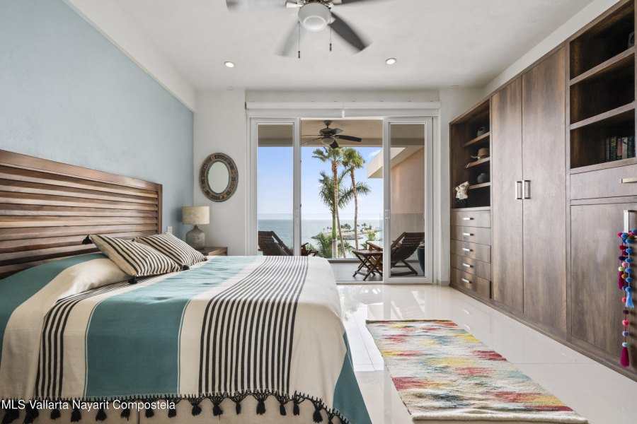 Beautiful fully furnished 2-bedroom, 2-bath beachfront condo with truly spectacular ocean views. Set in an exclusive boutique building of only six units in La Cruz de Huanacaxtle, this residence sits just steps from the beach and a short walk to the marina. As a corner unit, it features windows on the front and both sides, filling every space with natural light and panoramic views. The property includes underground parking and a storage unit, and is located in one of the town’s most peaceful areas.Common areas offer a pool, a palapa-covered grilling area, and direct beach access–perfect for enjoying the coastal lifestyle to the fullest.CLICK MORE FOR SPANISH