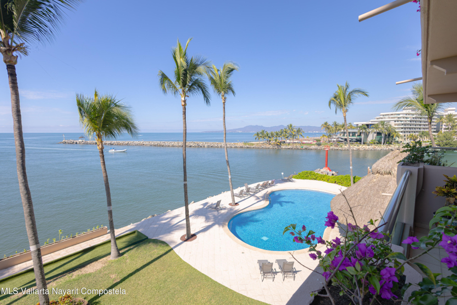Unobstructed marina and ocean views from the moment you enter. This elegant 1-bed, 2-bath furnished condo delivers true coastal living with a bright open layout and refined finishes. Enjoy a secure, oceanfront building featuring a heated oceanview pool, jacuzzi, BBQ area, impeccably maintained grounds, and new solar panels for resident efficiency and comfort. Sophisticated seaside living at its best.Vistas abiertas al mar y marina desde el primer paso. Este elegante condo 1 recamara y 2 banos, totalmente amueblado, ofrece un estilo de vida costero con luz natural y distribucion abierta. Edificio frente al mar, seguro y de alta calidad, con alberca climatizada con vista al oceano, jacuzzi, area de BBQ, areas comunes impecables y nuevos paneles solares para mayor eficiencia y comodidad