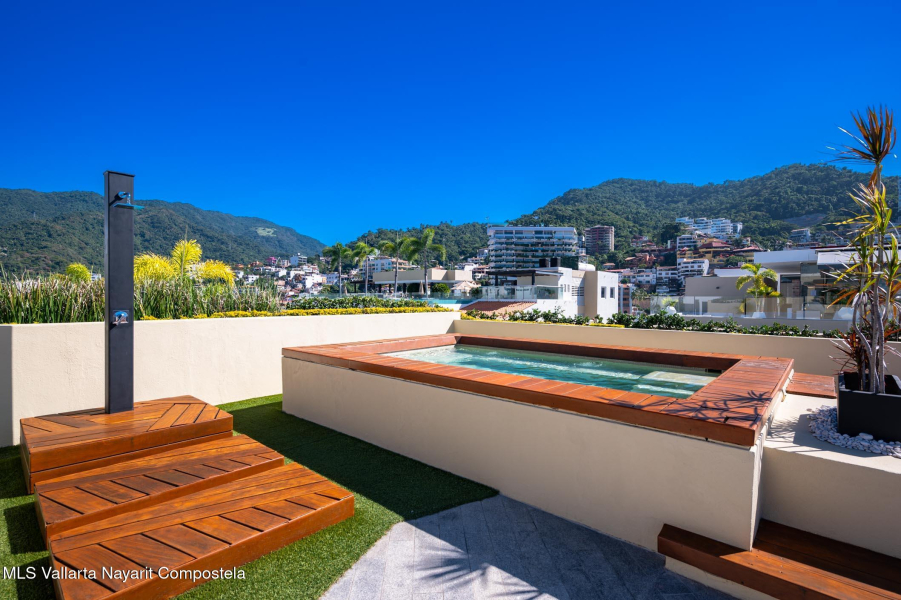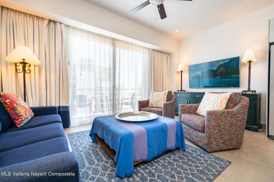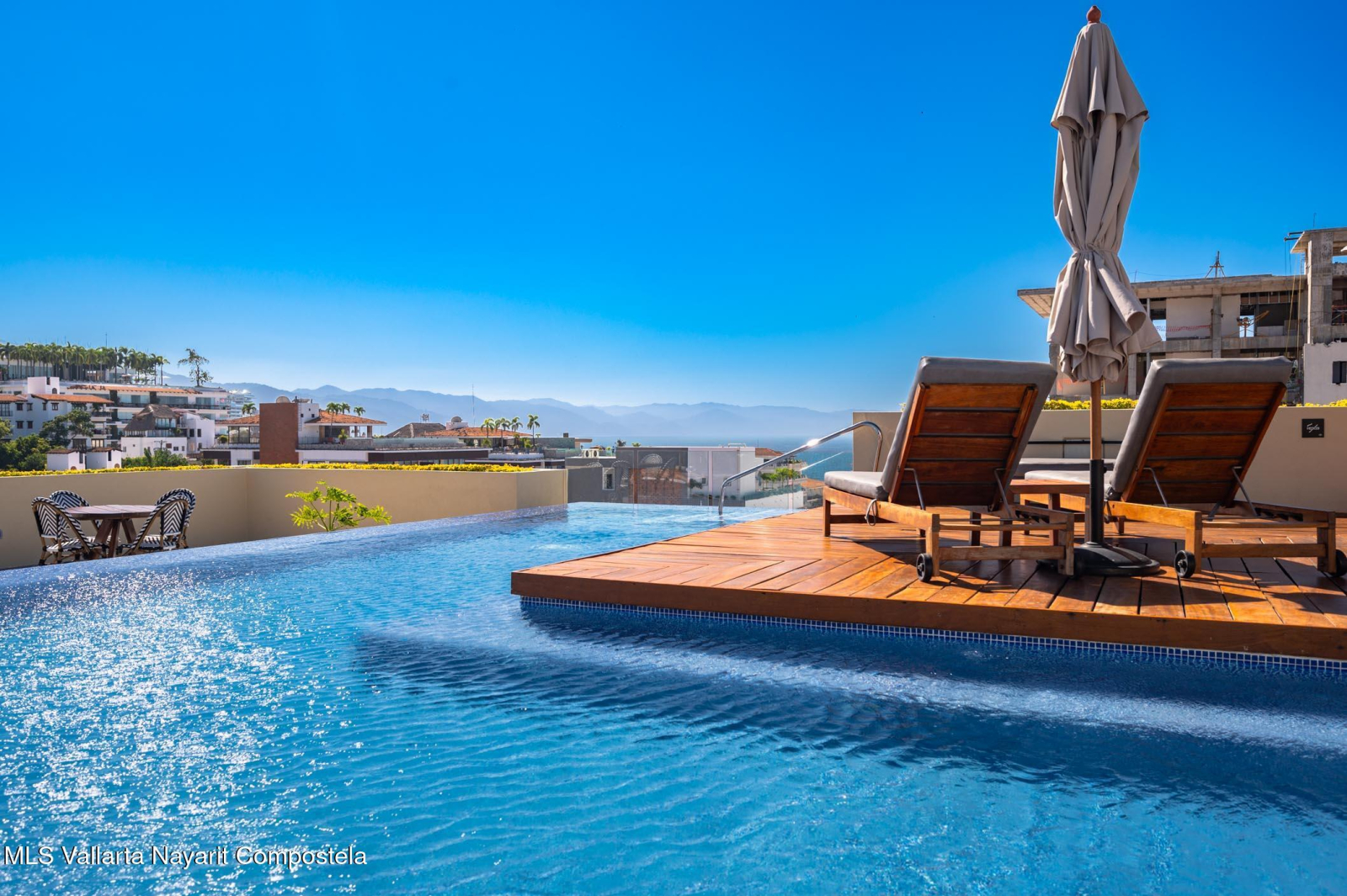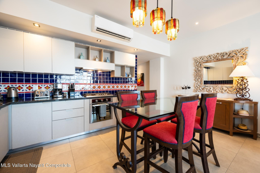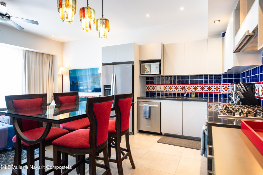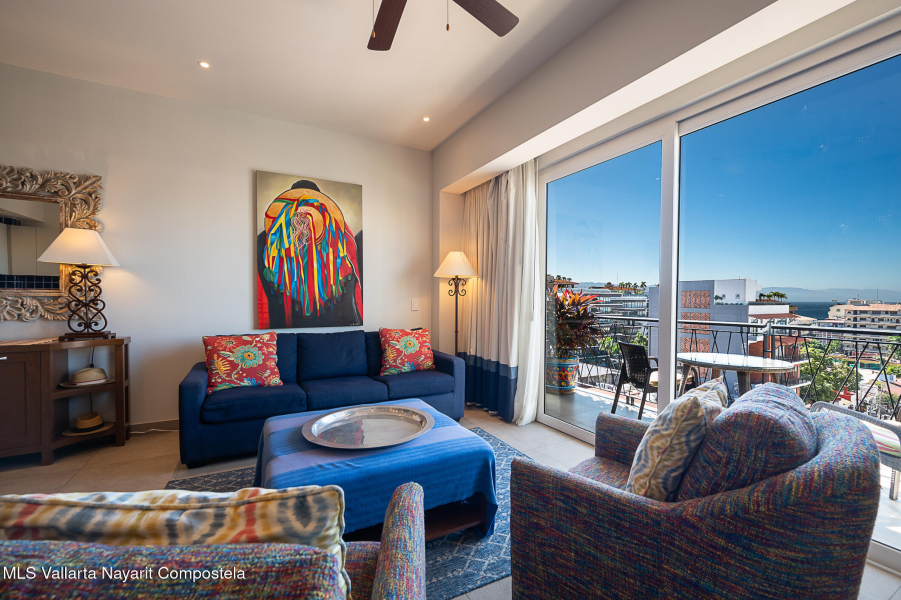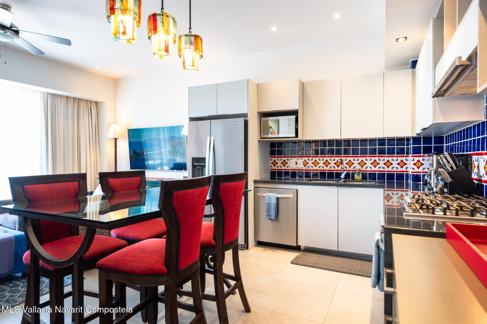 Located on the 7th floor of The Pavilion, this 882 sq.ft. condo offers modern, comfortable living in Puerto Vallarta’s vibrant Zona Romantica. The fully equipped kitchen features stainless steel appliances, including a gas cooktop, dishwasher, microwave, and more. The unit also includes an en-suite washer/dryer for added convenience.Relax in the stylish living room with a large flat screen TV, or step out onto the balcony to enjoy the lively neighborhood views. The spacious bedroom boasts a king-size bed, a second flat screen TV, and an ensuite bathroom.The Pavilion is just a short flat walk to Los Muertos Beach, the Malecon, and Puerto Vallarta’s best dining, shopping, and nightlife.