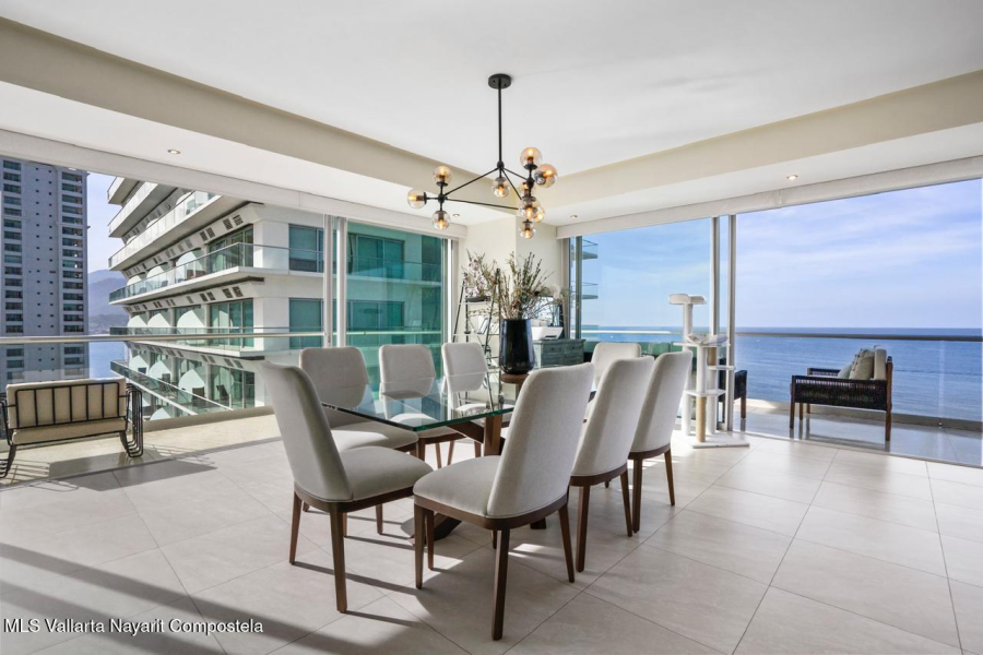 Spectacular Oceanfront Corner Unit – Designer-Furnished Luxury at Peninsula VallartaThis exquisite 4-bedroom, 4-bathroom corner unit in the iconic Peninsula Vallarta offers a rare opportunity to own one of the most beautifully designed residences in the Hotel Zone. Spanning over 3,500 sq ft, this home is sold fully furnished with high-end designer pieces curated by the unit’s interior designer/owner and it shows in every elegant detail.