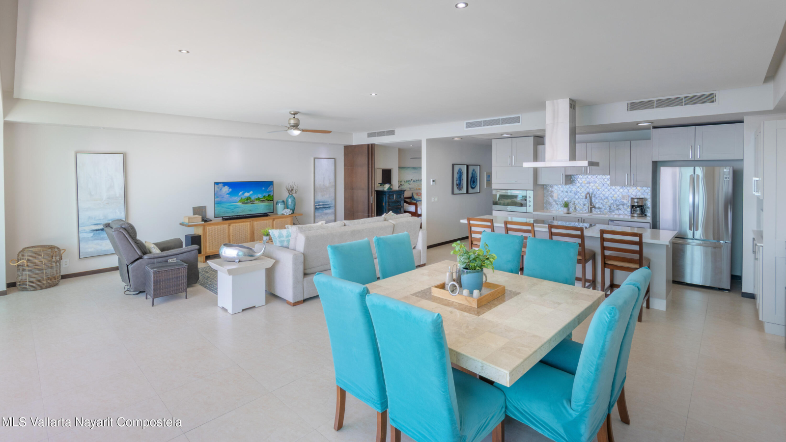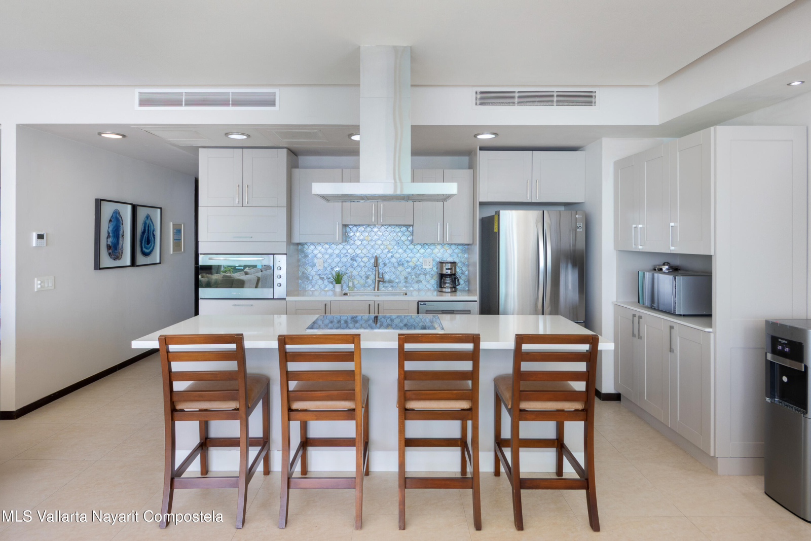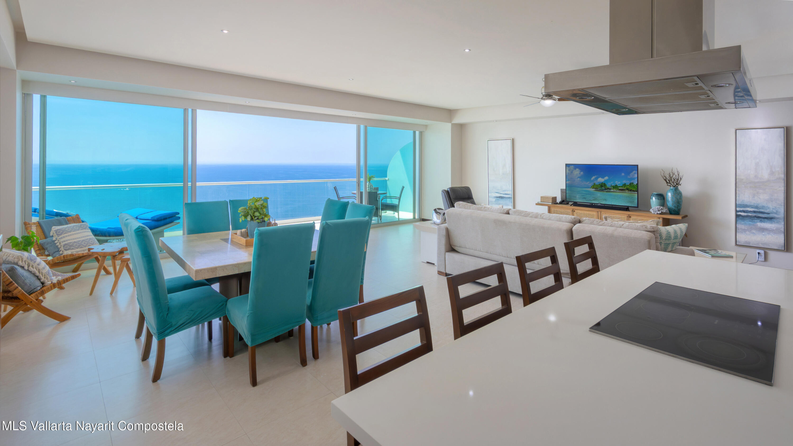 Bienvenidos a Casa Bay Breeze – Peninsula I 23B Esta espaciosa unidad, recientemente renovada y bellamente amueblada, se encuentra en el piso 23 de la torre 1 (la torre mas al norte). Esta unidad cuenta con una sala de estar y comedor de concepto abierto que se abre a una gran terraza frontal con impresionantes vistas panoramicas de la Bahia de Banderas. La terraza es un excelente lugar para disfrutar de las puestas de sol, avistar ballenas en la bahia y observar los cruceros que llegan y parten de la ciudad. Esta unidad de 3 habitaciones, 3 banos y 2303 pies cuadrados cuenta con muebles personalizados, nuevas unidades de aire acondicionado y electrodomesticos nuevos. Dos de las habitaciones incluyen terrazas que miran hacia el este y ofrecen hermosas vistas de las monta