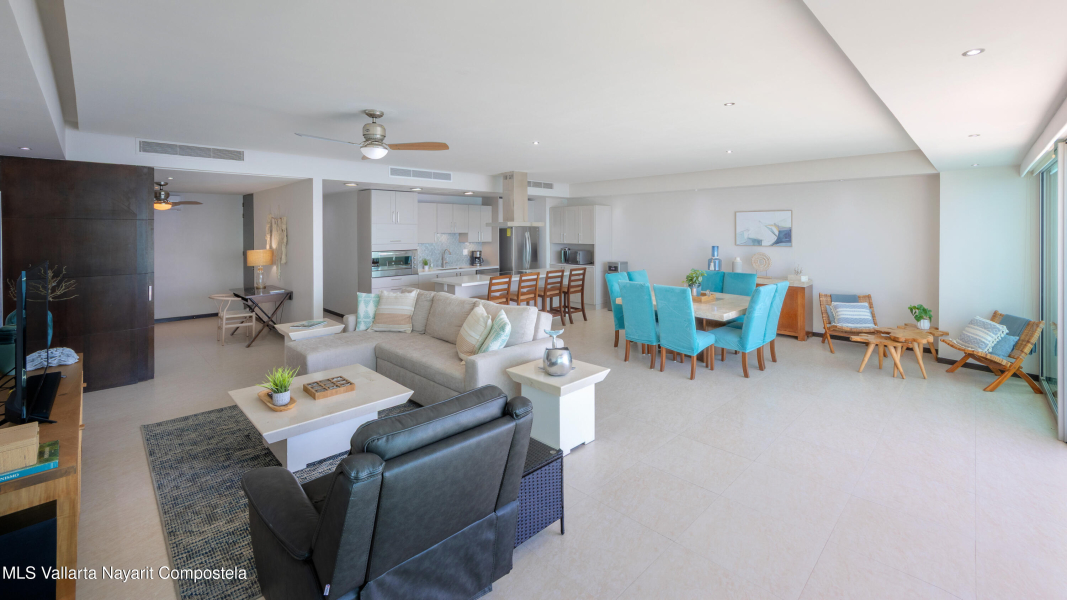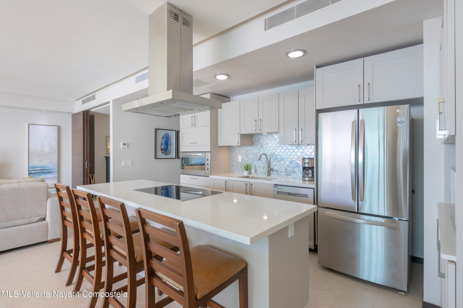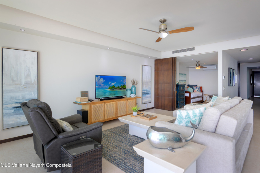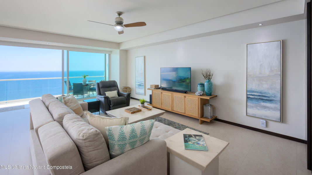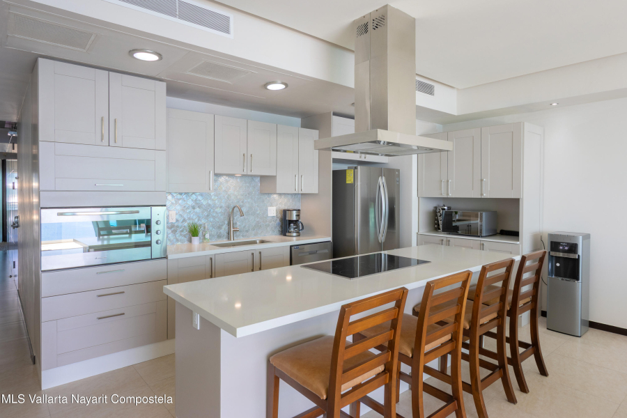 Bienvenidos a Casa Bay Breeze – Peninsula I 23B Esta espaciosa unidad, recientemente renovada y bellamente amueblada, se encuentra en el piso 23 de la torre 1 (la torre mas al norte). Esta unidad cuenta con una sala de estar y comedor de concepto abierto que se abre a una gran terraza frontal con impresionantes vistas panoramicas de la Bahia de Banderas. La terraza es un excelente lugar para disfrutar de las puestas de sol, avistar ballenas en la bahia y observar los cruceros que llegan y parten de la ciudad. Esta unidad de 3 habitaciones, 3 banos y 2303 pies cuadrados cuenta con muebles personalizados, nuevas unidades de aire acondicionado y electrodomesticos nuevos. Dos de las habitaciones incluyen terrazas que miran hacia el este y ofrecen hermosas vistas de las monta