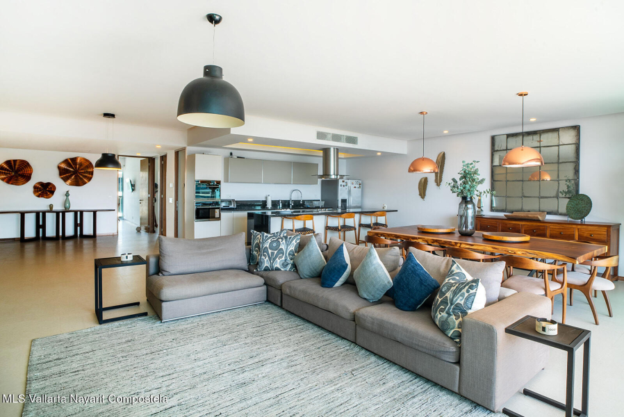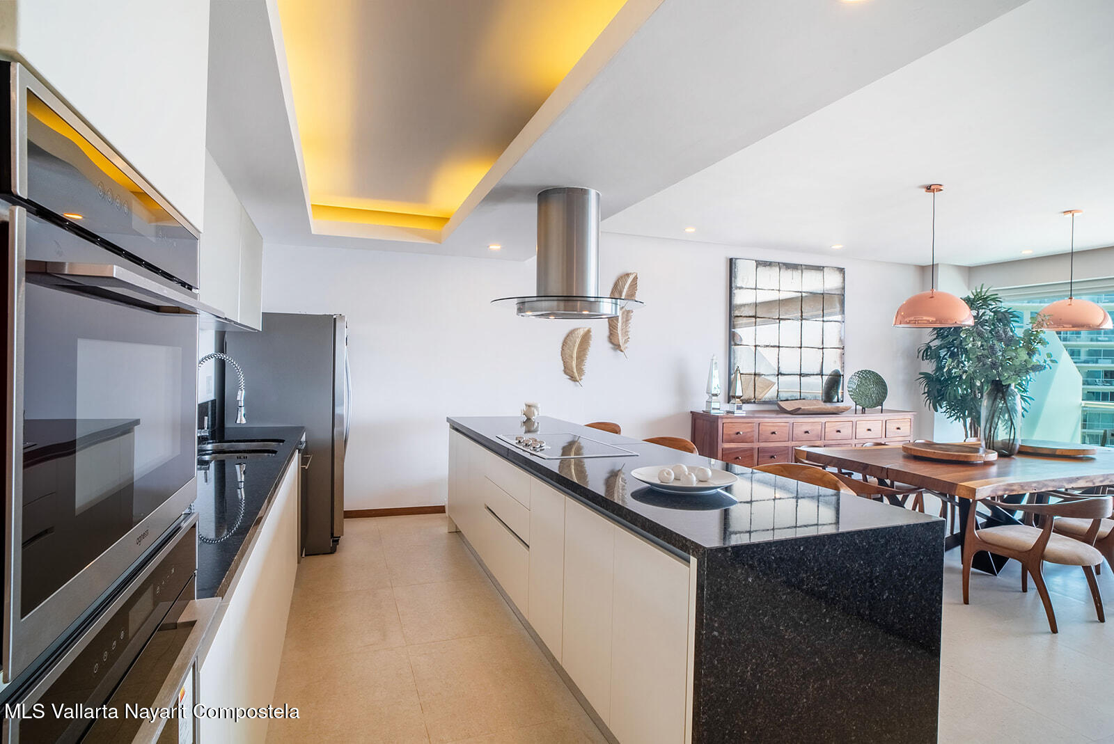 Experience the tropical living at its finest with this stunning 4-bedroom condo in Peninsula Nuevo Vallarta, one of the most exclusive beachfront developments in the Riviera Nayarit. Fully remodelled and exquisitely furnished, this 3,272 sq ft luxury residence offers sophistication, space, and breathtaking ocean views.The open-concept layout seamlessly connects the gourmet kitchen with central island, living and dining areas to a spacious private terrace overlooking the bay and resort pools.Each of the 4 bedrooms features an en-suite bathroom, private terrace access, and abundant natural light. The property also includes 2 parking spaces and access to world-class resort-style amenities:Oceanfront infinity pool, Fully equipped gym, Spa and massage area, Paddle tennis courts
