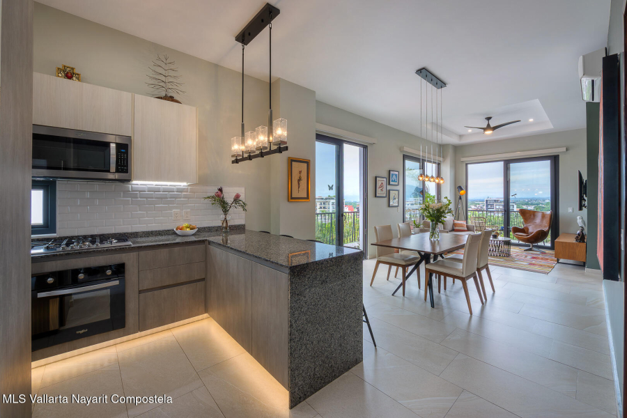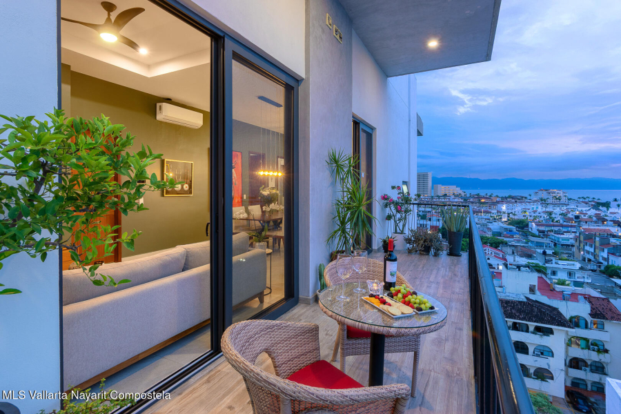 English description below Spanish:Descubra lo ultimo en vida de lujo con este impresionante penthouse esquinero en el codiciado desarrollo Punto Madeira en Versalles. Con 2 amplios recamaras, 2 banos y un balcon envolvente de 312 pies cuadrados, esta residencia completamente amueblada esta lista para mudarse, perfecta para vivir a tiempo completo, una escapada de vacaciones o una propiedad de inversion inteligente. No hay condominios comparables en Versalles. Vistas incomparables: Sumerjase en las impresionantes vistas de la zona hotelera, la marina, las montanas de la Sierra Madre y el oceano, despierte con impresionantes amaneceres y relajese con fascinantes atardeceres cada noche. Espacio habitable sofisticado: Techos de 3.2 metros y diseno de concepto abierto,