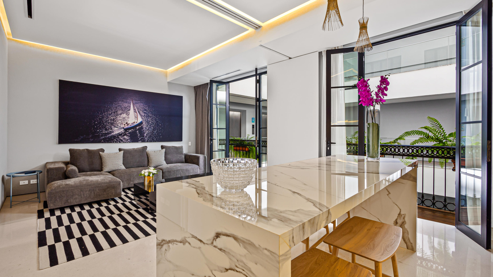 Innovador y adaptable son dos palabras que describen mejor los condominios Pier 57 inteligentemente disenados. El concepto unico de Pier 57 permite que cada hogar de 2 habitaciones y 2 banos se convierta en una gran habitacion con areas de estar mas grandes o en un espacioso apartamento tipo estudio Loft abierto, todo en aproximadamente 1,100 pies cuadrados de espacio habitable. Con al menos media docena de planos diferentes para elegir, las opciones de disposicion y distribucion son abundantes y pueden adaptarse a sus propias necesidades y deseos especificos. La opulencia es el estandar en Pier 57 con comodidades en la azotea que incluyen una piscina de borde estilo infinito, una terraza elevada para mayor privacidad, cabanas privadas con sistemas de entretenimiento,