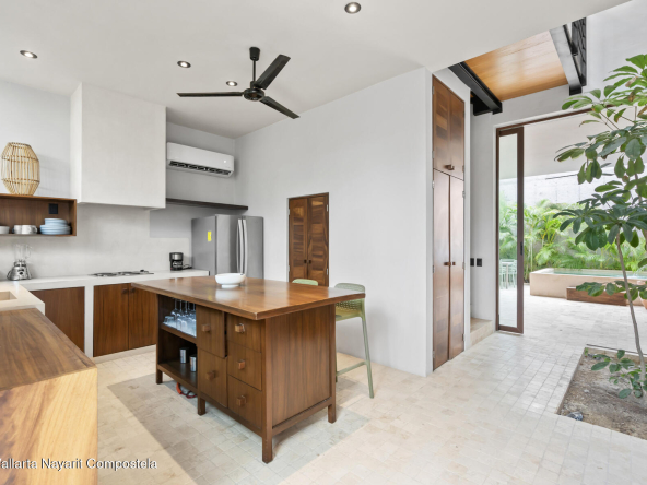 Sunlight welcomes you the moment you step into this penthouse, guiding you into a space that feels like a deep, refreshing breath. The bedroom offers clarity and calm, its soft palette, clean lines, and minimalist touches creating a peaceful space that invites you to unwind. Just beyond, a discreet laundry area keeps daily routines effortlessly organized. The kitchen then draws you in with its gray-lined marble, warm textures, and generous natural light, opening seamlessly into an elegant living room designed for both comfort and connection. Wrapping around the space, a broad covered balcony immerses you in sweeping mountain, city, and ocean views that quietly whisper what life in Puerto Vallarta could truly be.