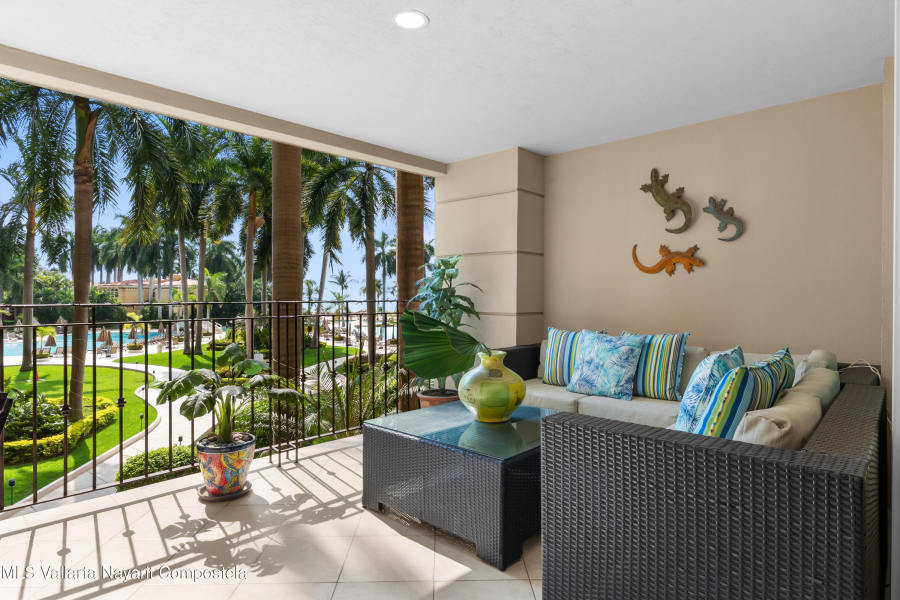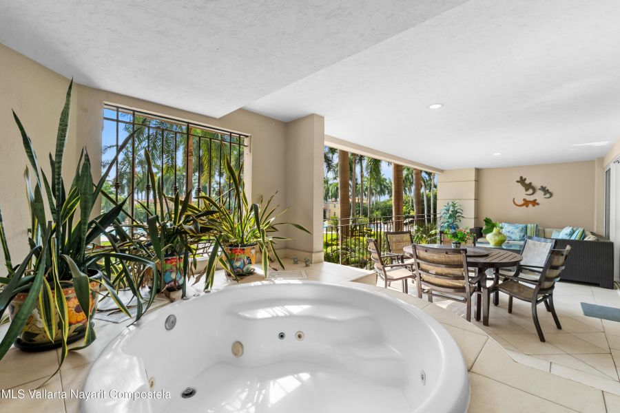 Portofino Marina Vallarta – Luxury Oceanfront LivingYour Private Paradise Awaits. Discover the epitome of coastal living at Portofino, an exquisite oceanfront residence in the heart of Marina Vallarta. This stunning 2-bedroom, 2-bathroom apartment offers the perfect blend of well living, comfort, and beautiful garden, pool and partial Ocean views.Generously proportioned living and dining area, flooded with natural light, Two spacious bedrooms The primary with ocean breezes, Two full bathrooms, separate laundry area, Open-concept layout designed for modern livingYour Private Oasis: Expansive covered terrace–your personal sanctuary Private hot tub (jacuzzi) for evening relaxation Ideal for entertaining or quiet sunset moments.
