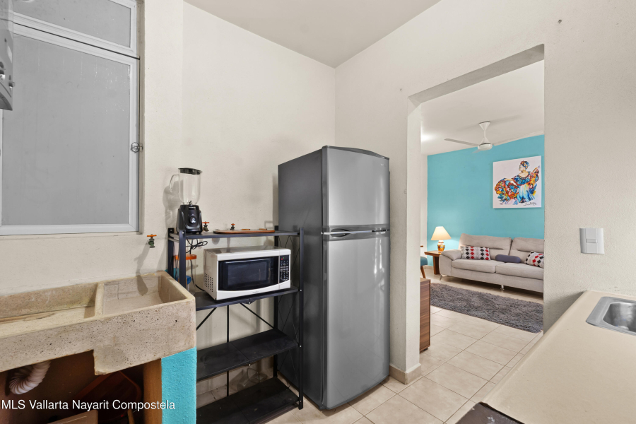Well-built, apartment-style buildings, lush tropical landscaping create a sense of privacy and a softer separation between neighbors. This comfortable 2-bedroom, 1-bath condominium offers an easy walk-up to the third floor, where gentle breezes and pleasant mountain views await. The unit is sold unfurnished, except for a refrigerator. The unit is ready for you to bring in all those favorite pieces that make a home truly yours. Attractive ceramic tile flooring throughout adds warmth and durability. Conveniently located with easy access to public transportation, just 10 minutes to the Hotel Zone and 15-20 minutes to Old Town Puerto Vallarta, this home offers both comfort and convenience for everyday living or as a practical investment property.
