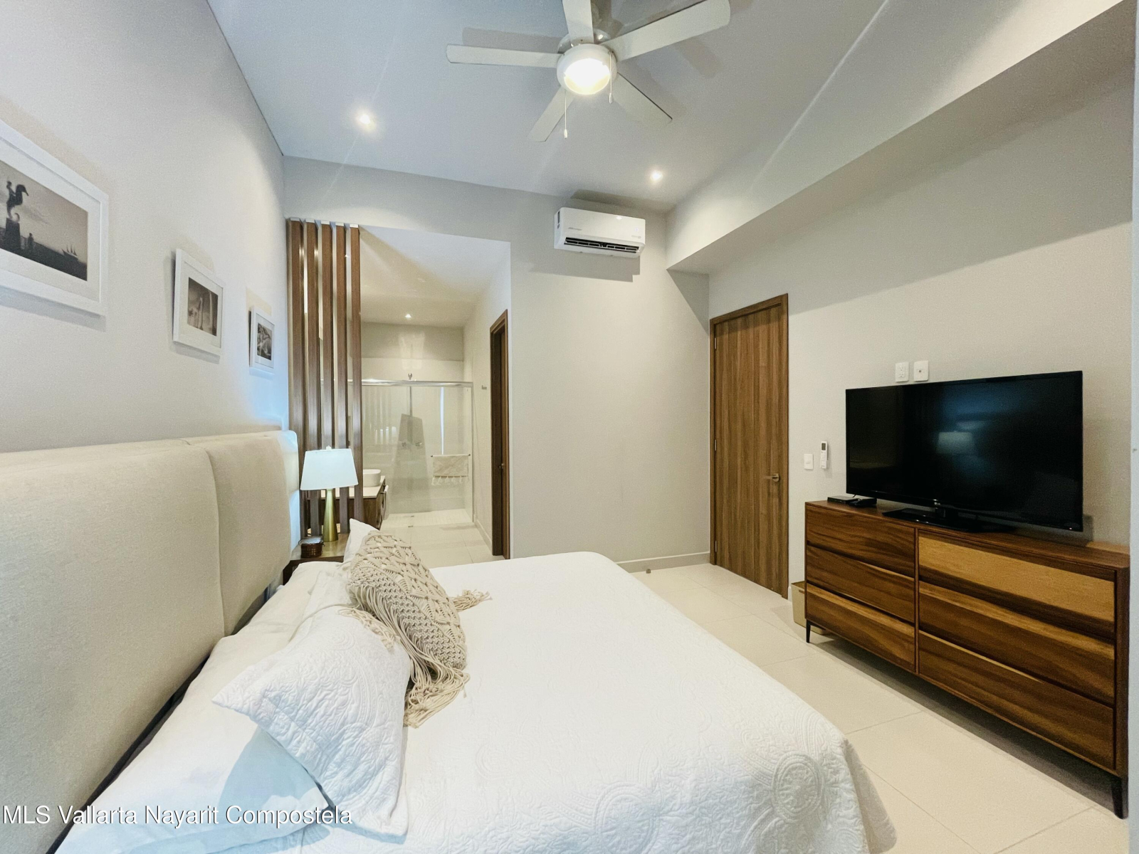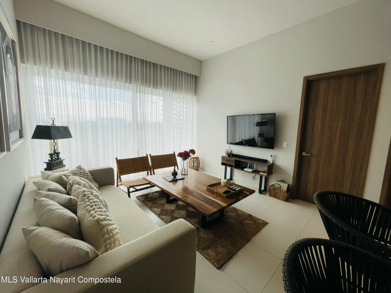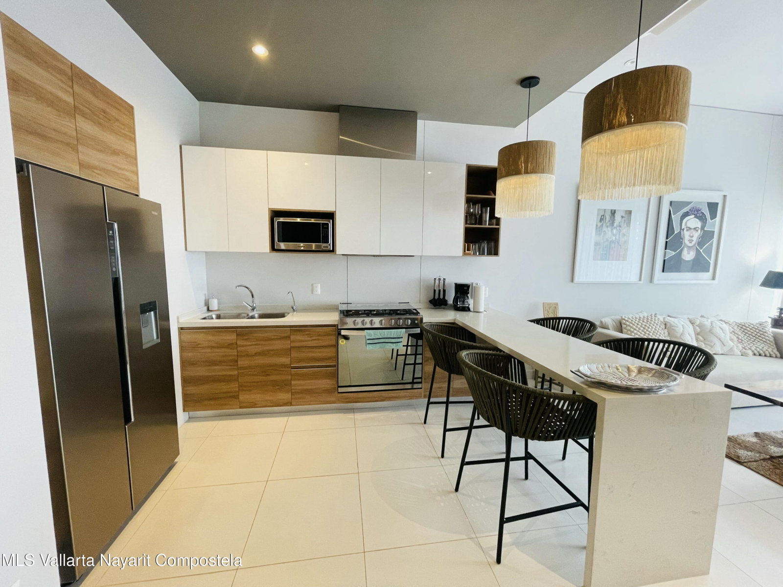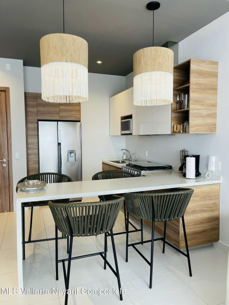 Turn key – Fully Furnished 1-Bedroom Condo in Punto Novo – Nuevo Vallarta. This spacious one-bedroom condominium is located on the fourth floor of the modern Punto Novo development in Nuevo Vallarta. The apartment is for sale; fully furnished and tastefully decorated with high-quality furniture, making it completely move In ready. The open concept living space features a contemporary kitchen with elegant finishes, ample storage, and a large breakfast bar, perfect for entertaining or everyday living. The design offers excellent natural light and a comfortable, modern atmosphere throughout. Punto Novo offers a beautiful rooftop area with a swimming pool, ideal for relaxing and enjoying the lifestyle Nuevo Vallarta is known for. An excellent option for those seeking comfort & style.