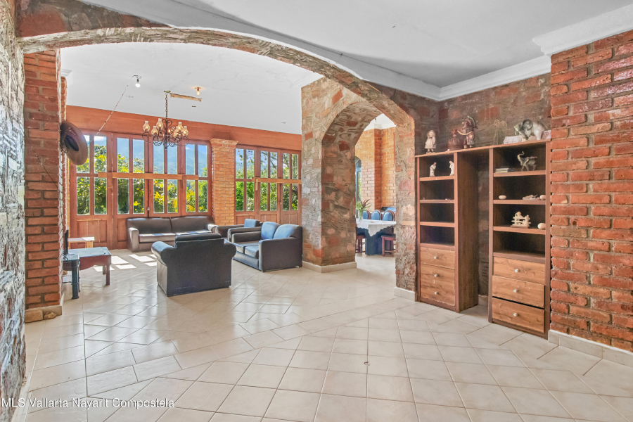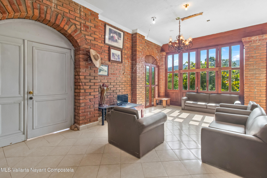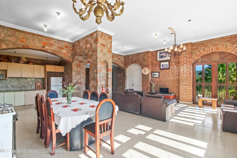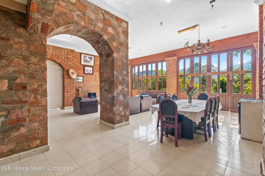 Casa de campo con solida construccion con acabados en ”muro viejo” de piedra y ladrillo, rodeada de vegetacion y arboles frutales, a pocos pasos del rio. Posibilidad de construir uno o dos niveles mas. La casa principal tiene 3 recamaras y 2 banos completos, ademas de una construccion adyacente ideal para trabajadores con 2 recamaras y 1 bano. Disfruta de la tranquilidad y vistas a la montana. Suministro constante de agua de un pozo comun. Dos cocinas: una interior y otra exterior con comal para tortillas recien hechas. [EN] Solidly built country house with mixed stone and brick rustic wall finishes, surrounded by vegetation and fruit trees, just a few steps from the river. Possibility to build up another level or two. The main house has 3 bedrooms and 2 full bathrooms, plus an adjacent