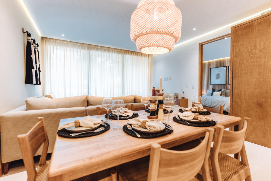Residences By Mio is a modern development located in the most exclusive area of Nuevo Vallarta. It offers 1-bedroom units, and lock-off options. Common areas on the first level, spa, gym, pool, and restaurant on the rooftop. Underground parking available for purchase, gourmet restaurant for general use, multipurpose room, pool, and gardens.